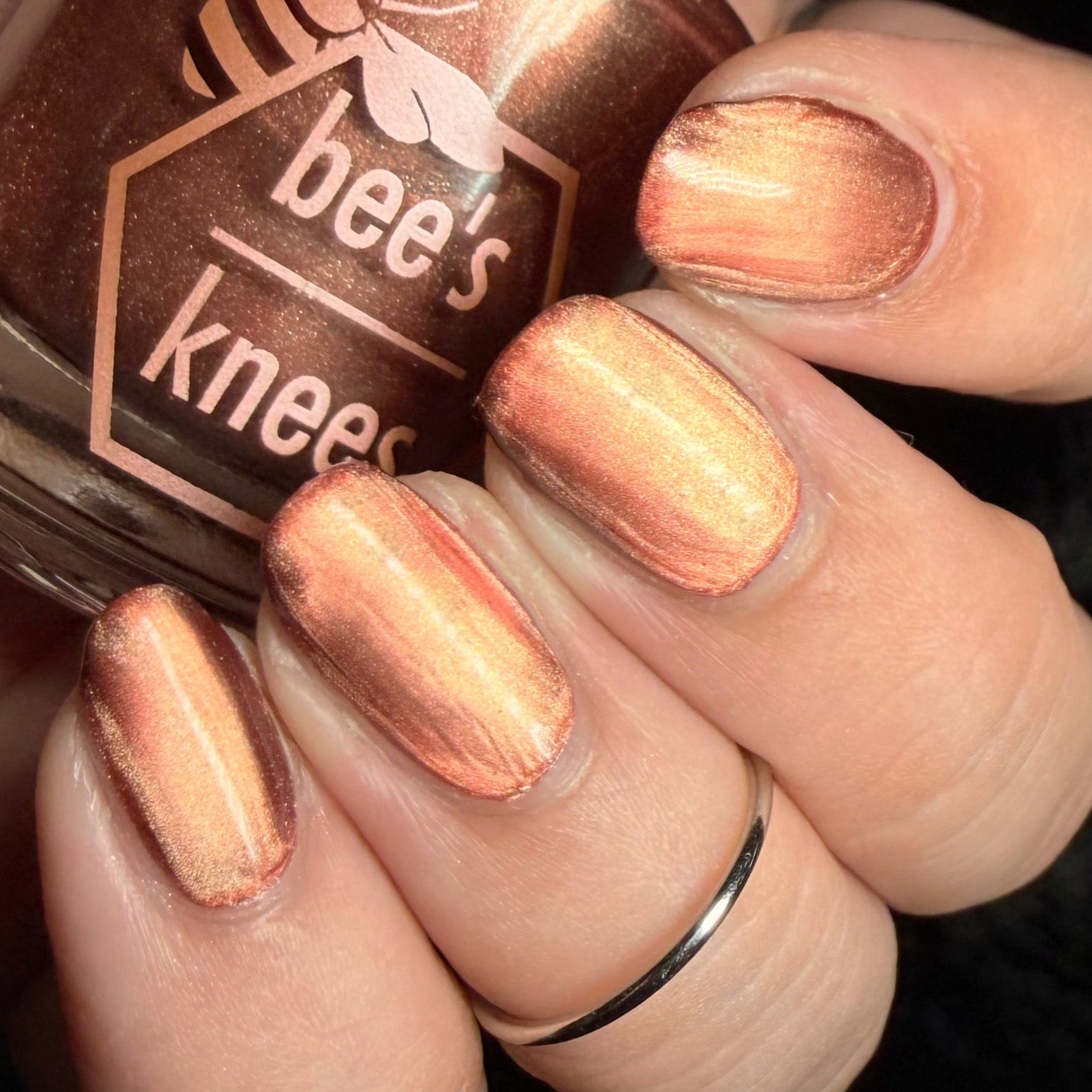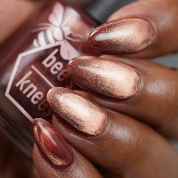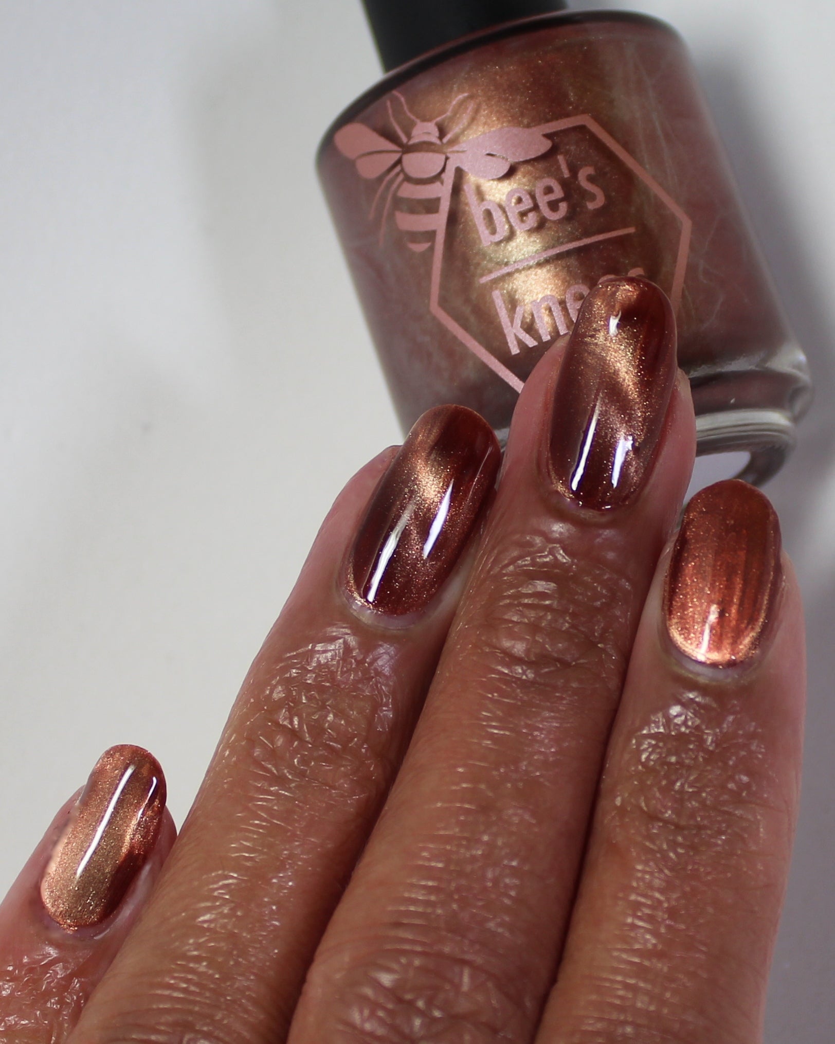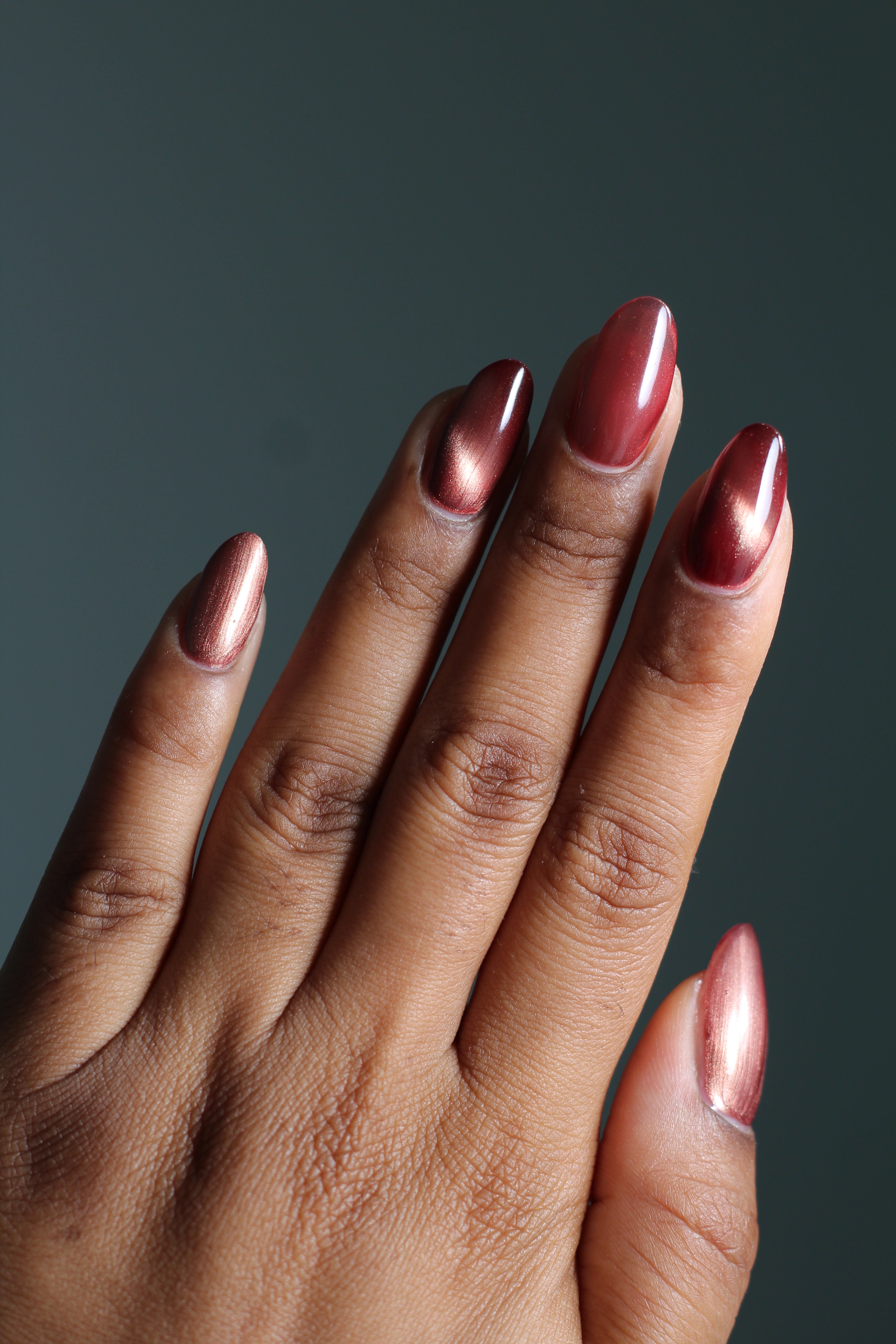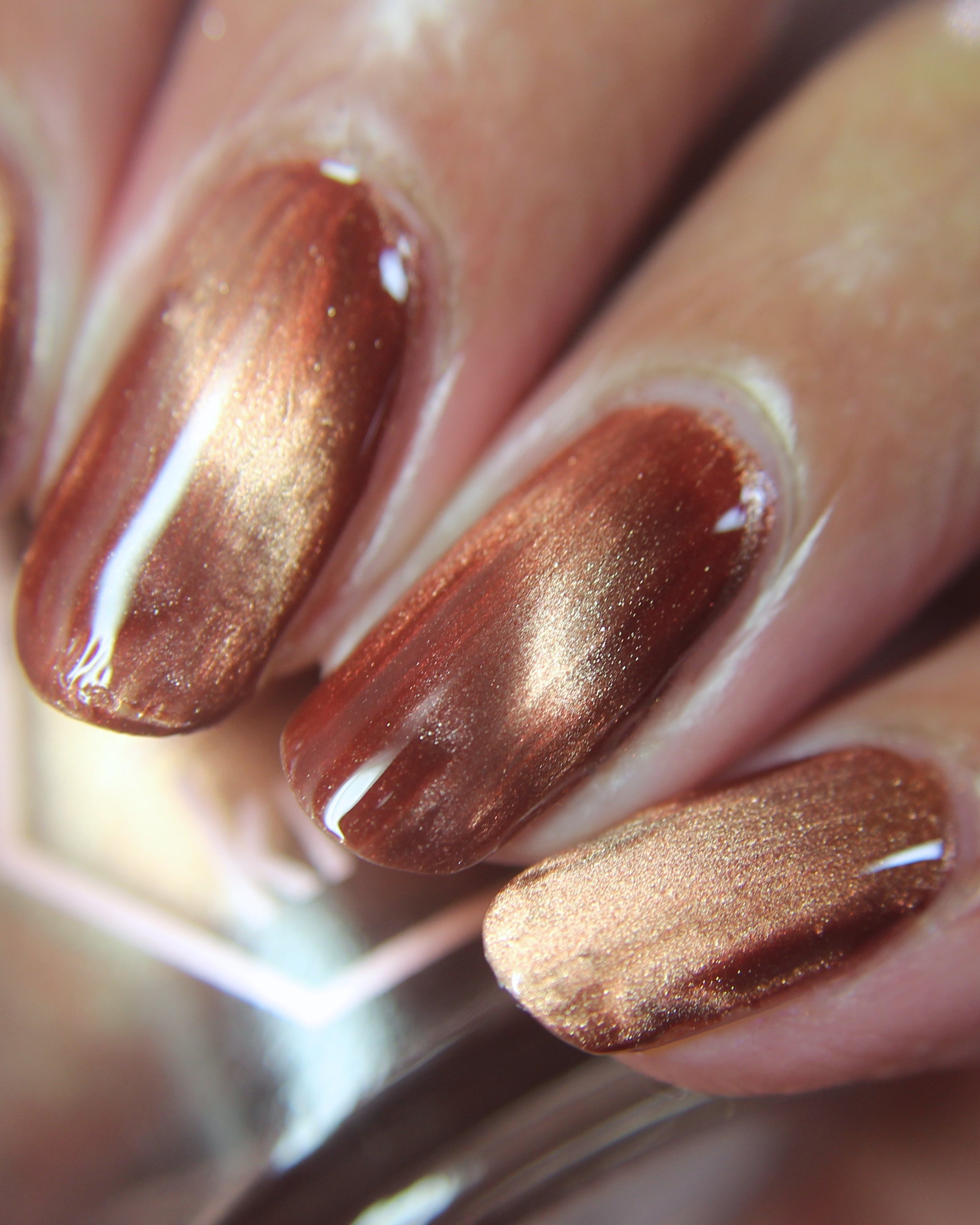 Hex the Patriachy - a burgundy Bog Dweller Sibling with silver magnetic shimmer that turns pale gold in the burgundy base.