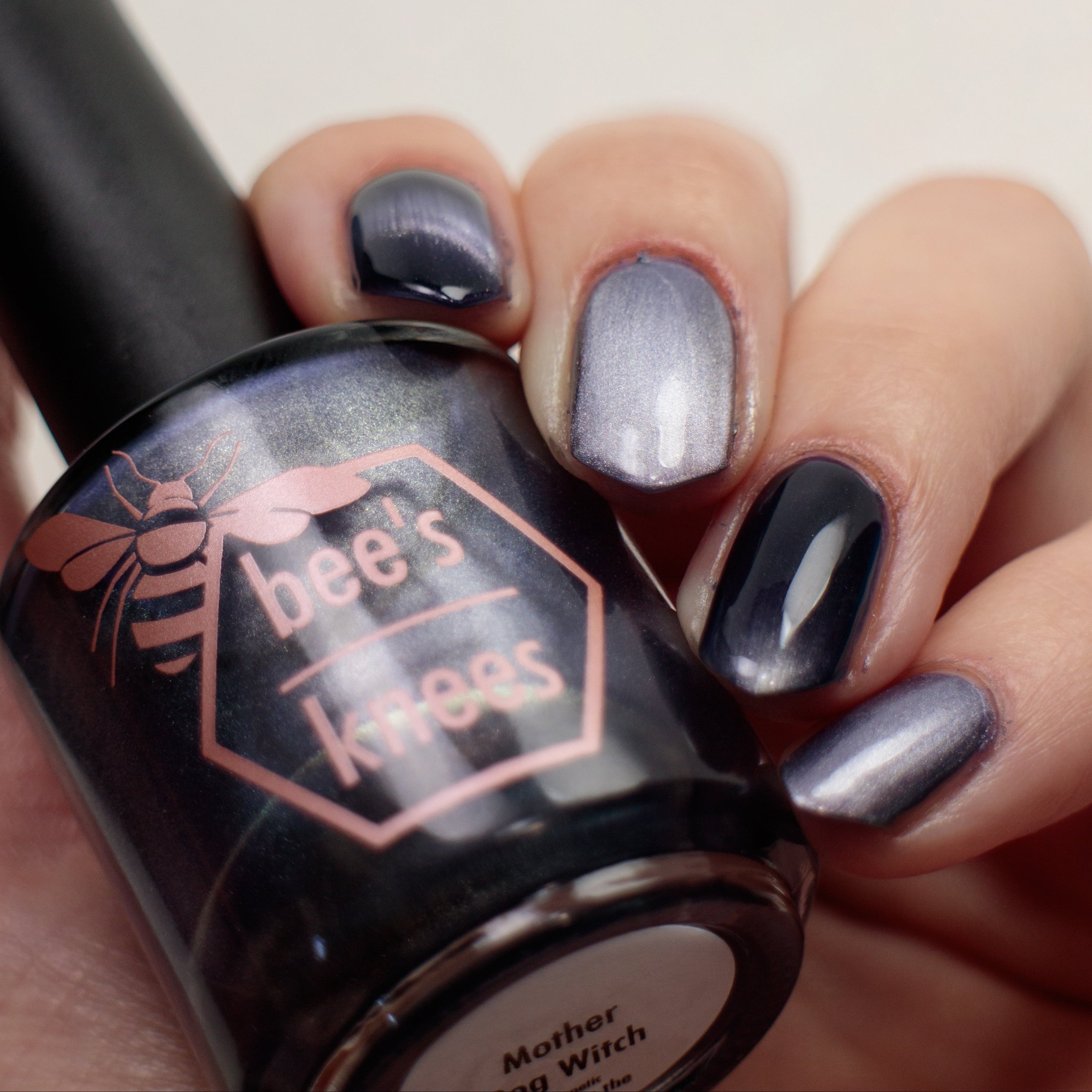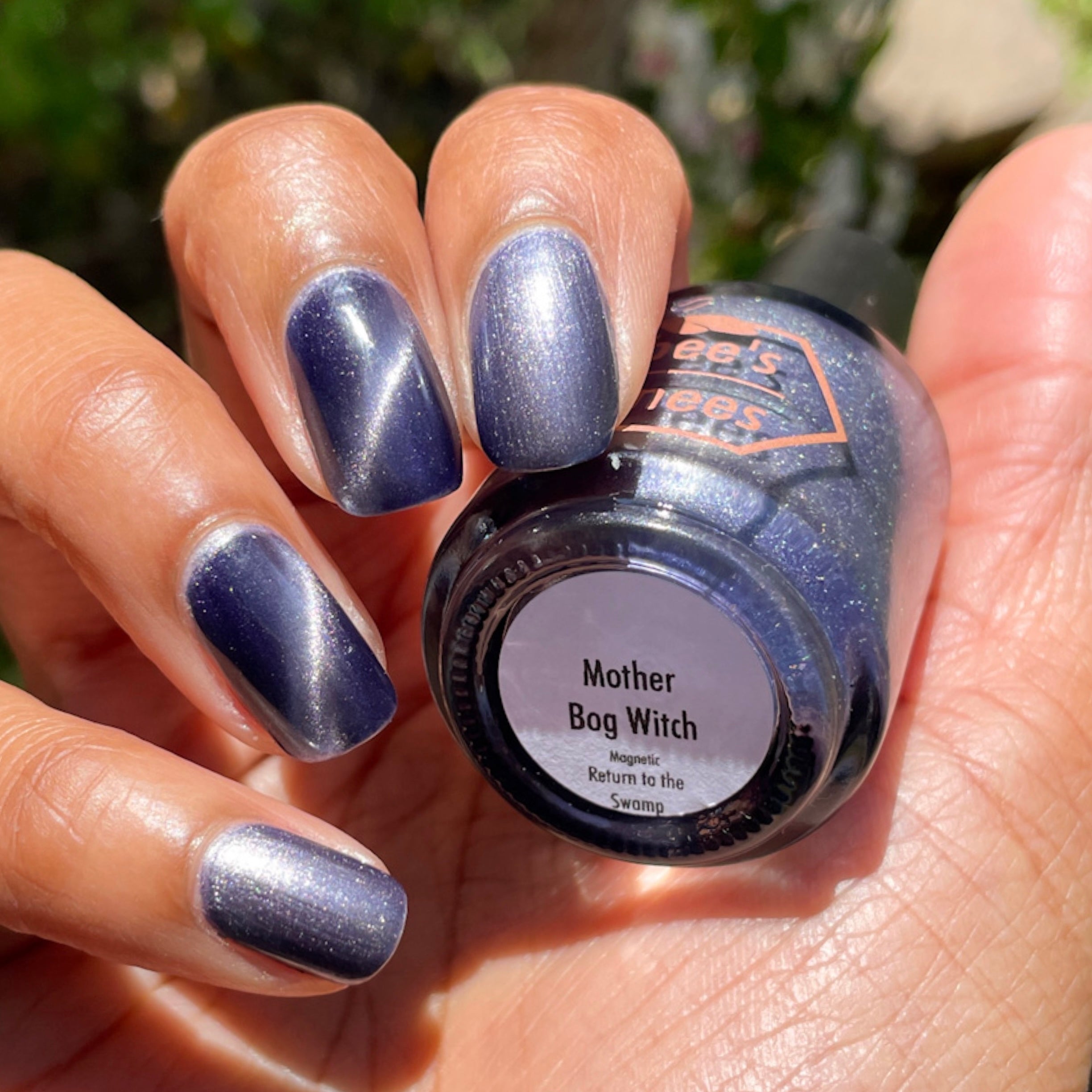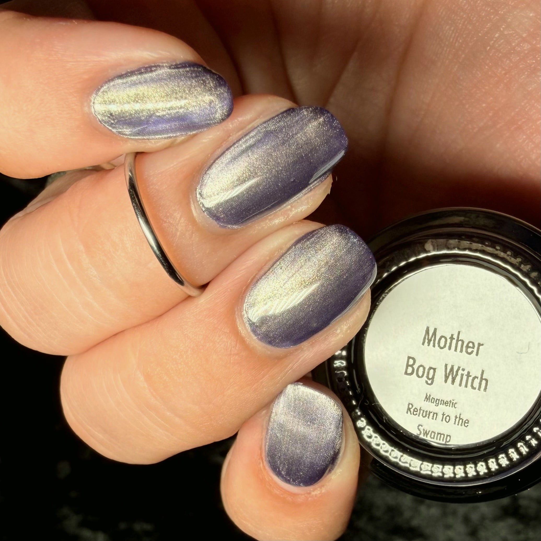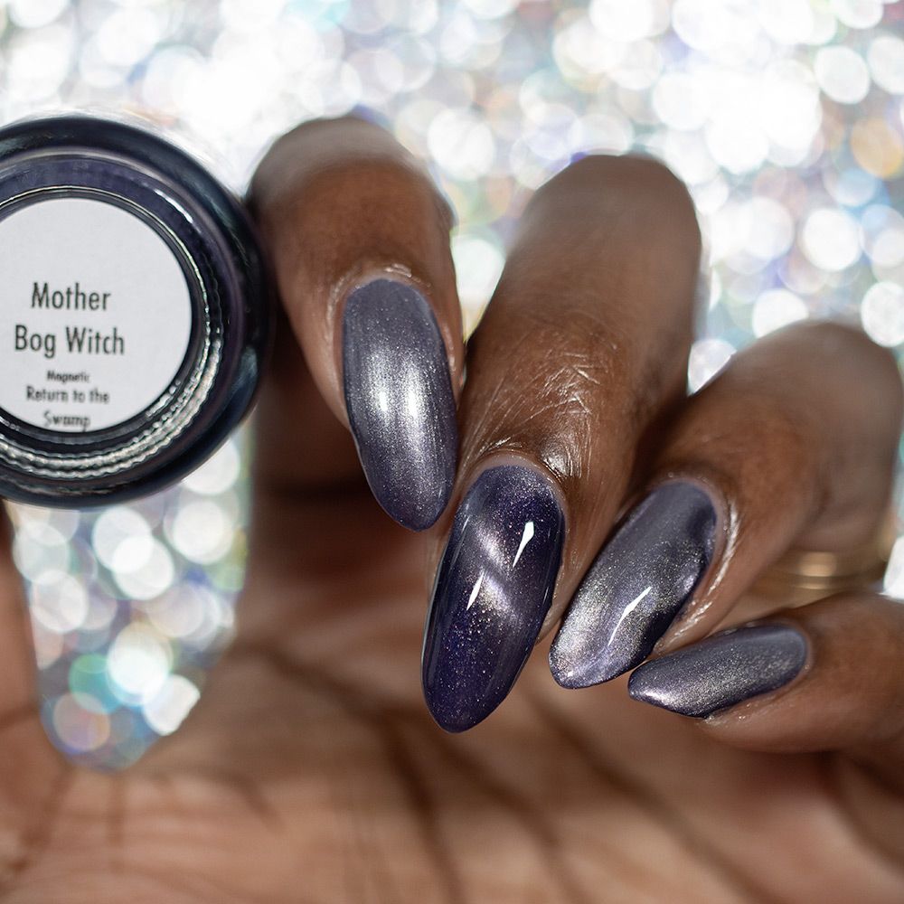 Mother Bog Witch - a deep nightshade purple Bog Dweller Sibling with silver magnetic shimmer.