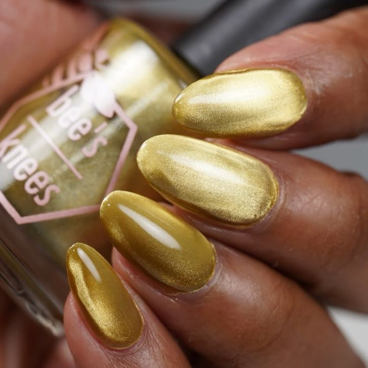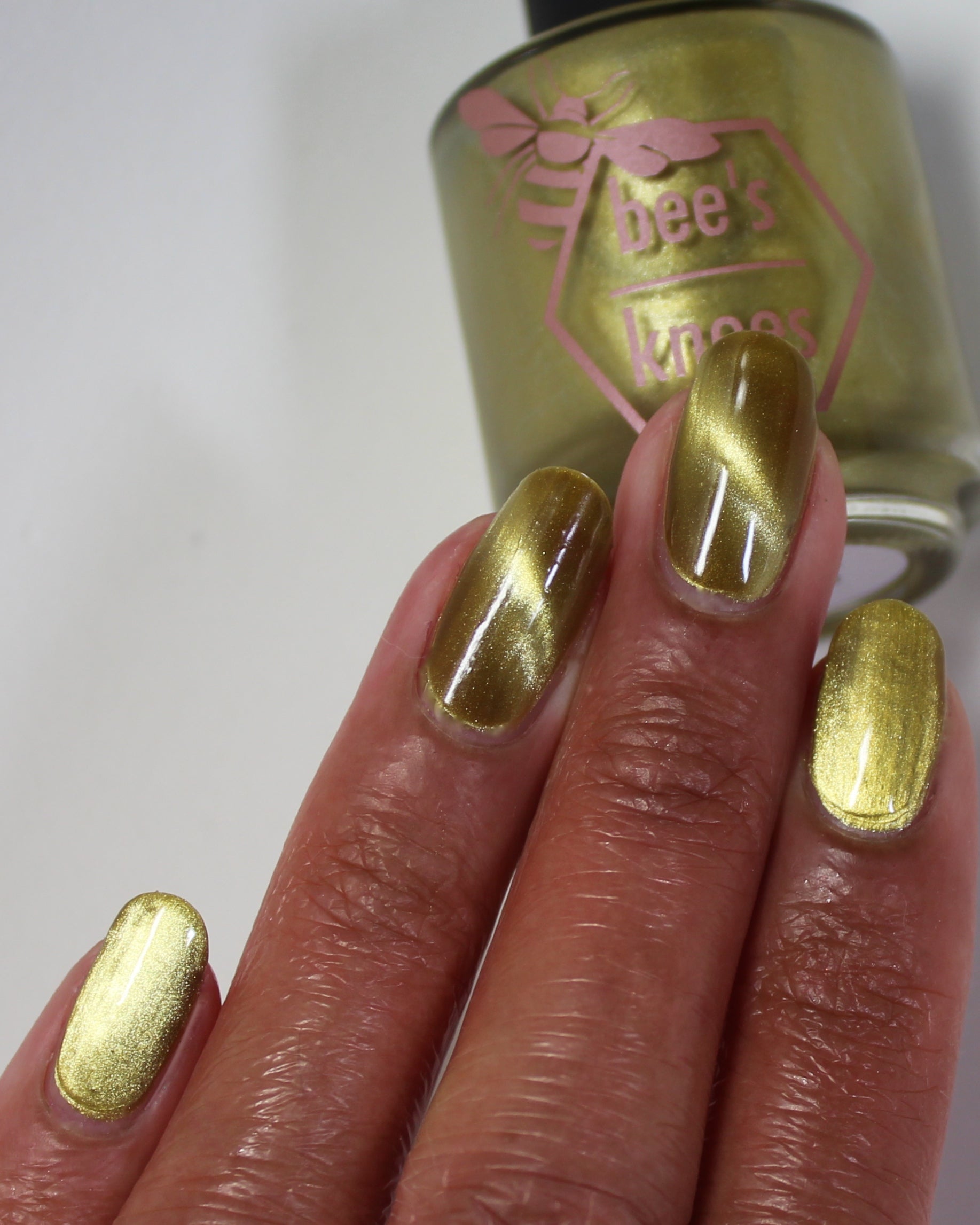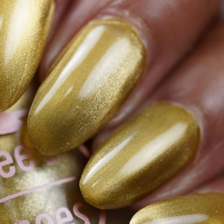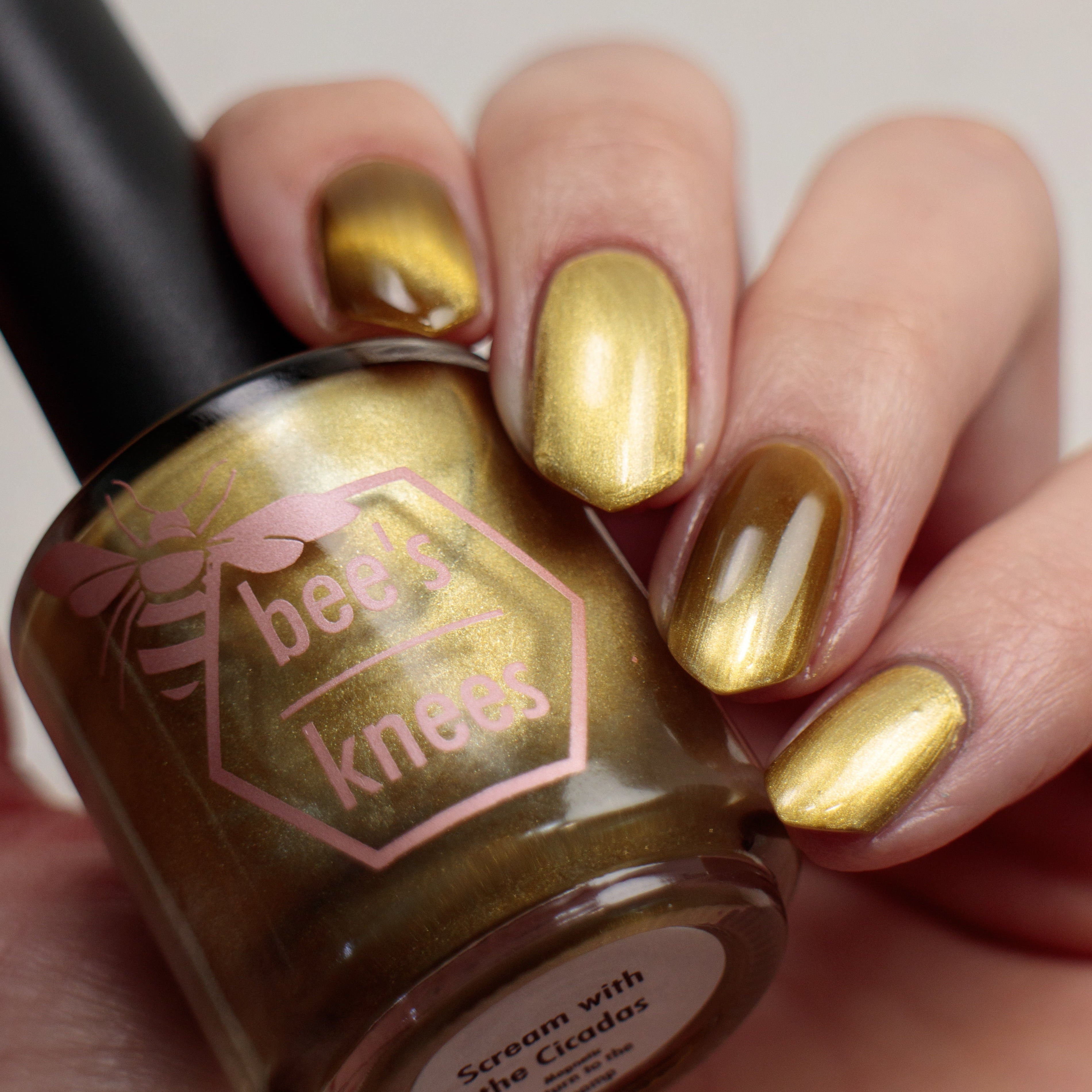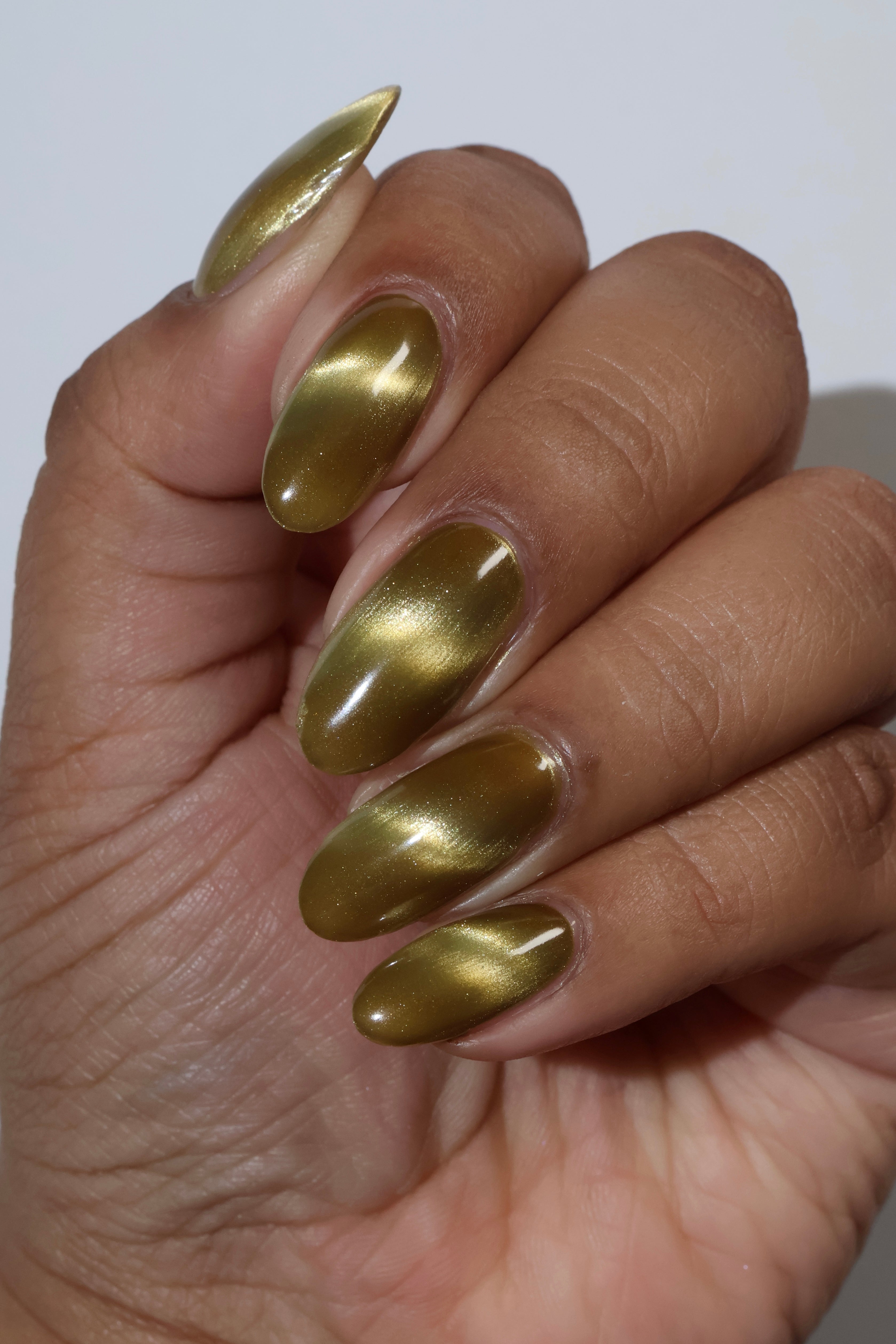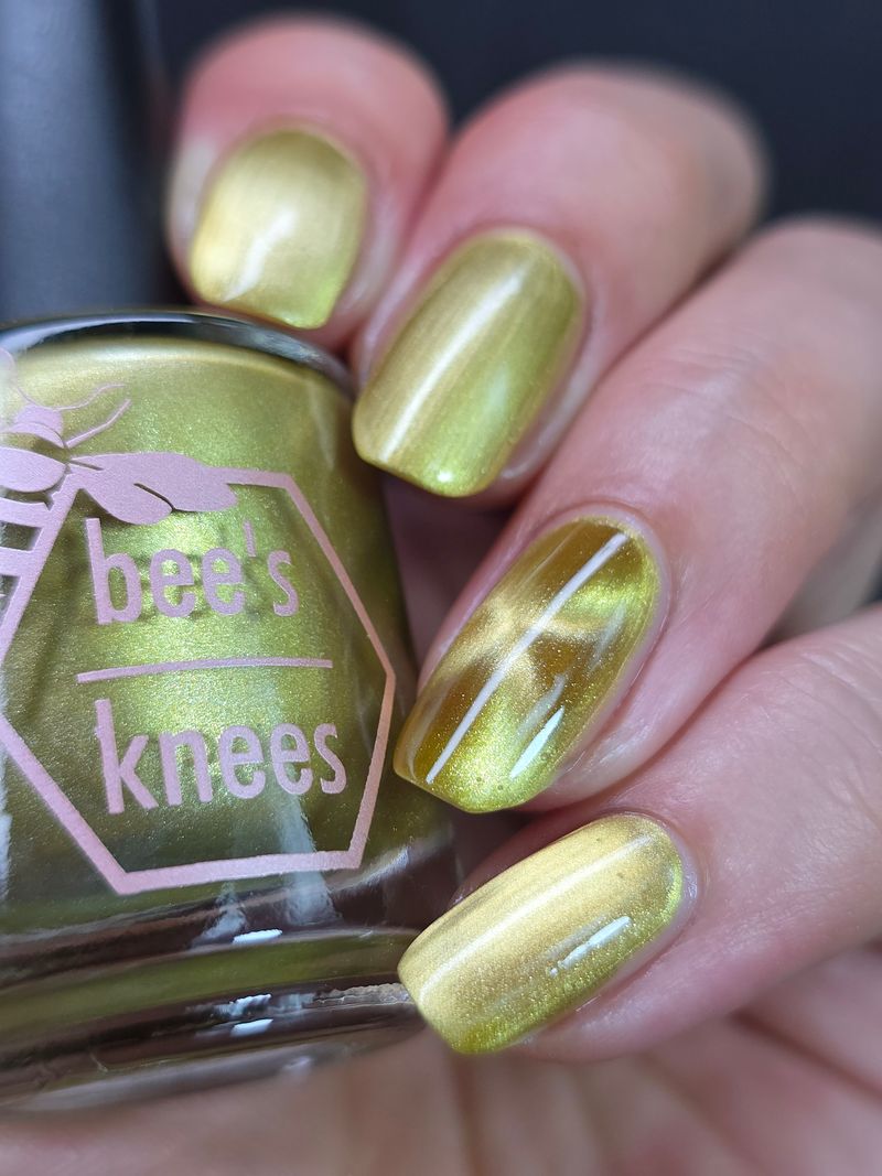 Scream with the Cicadas - a golden mustard Bog Dweller Sibling with silver magnetic shimmer that turns gold in the mustard base.