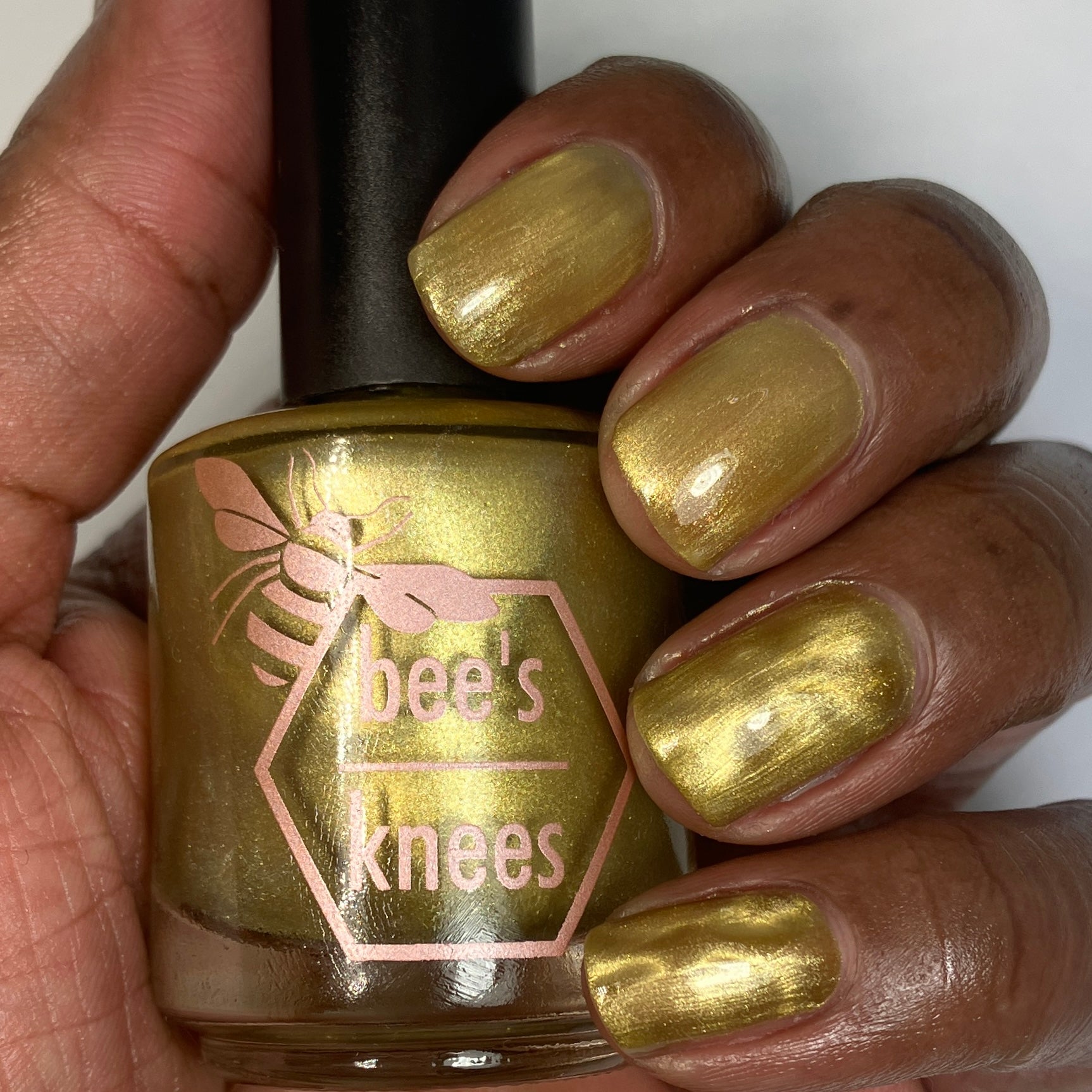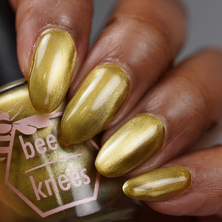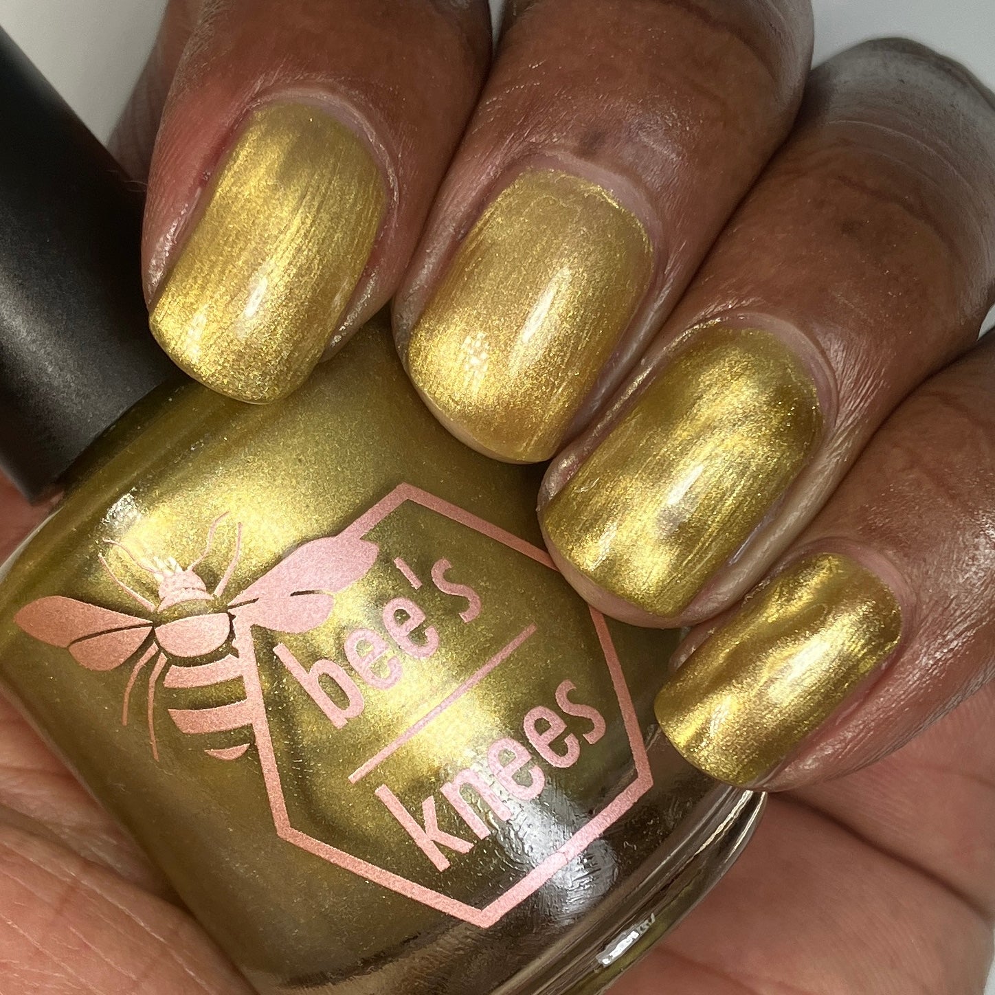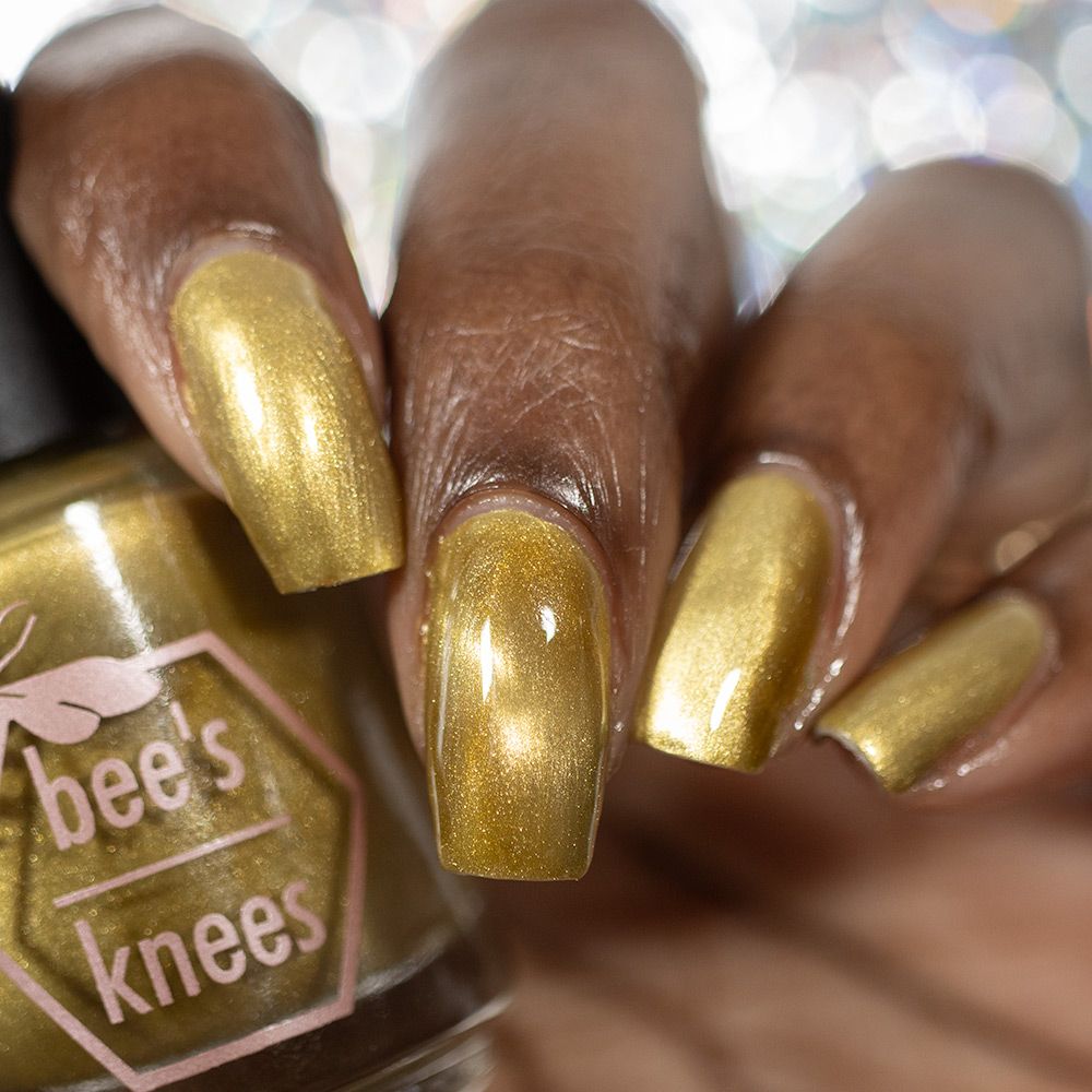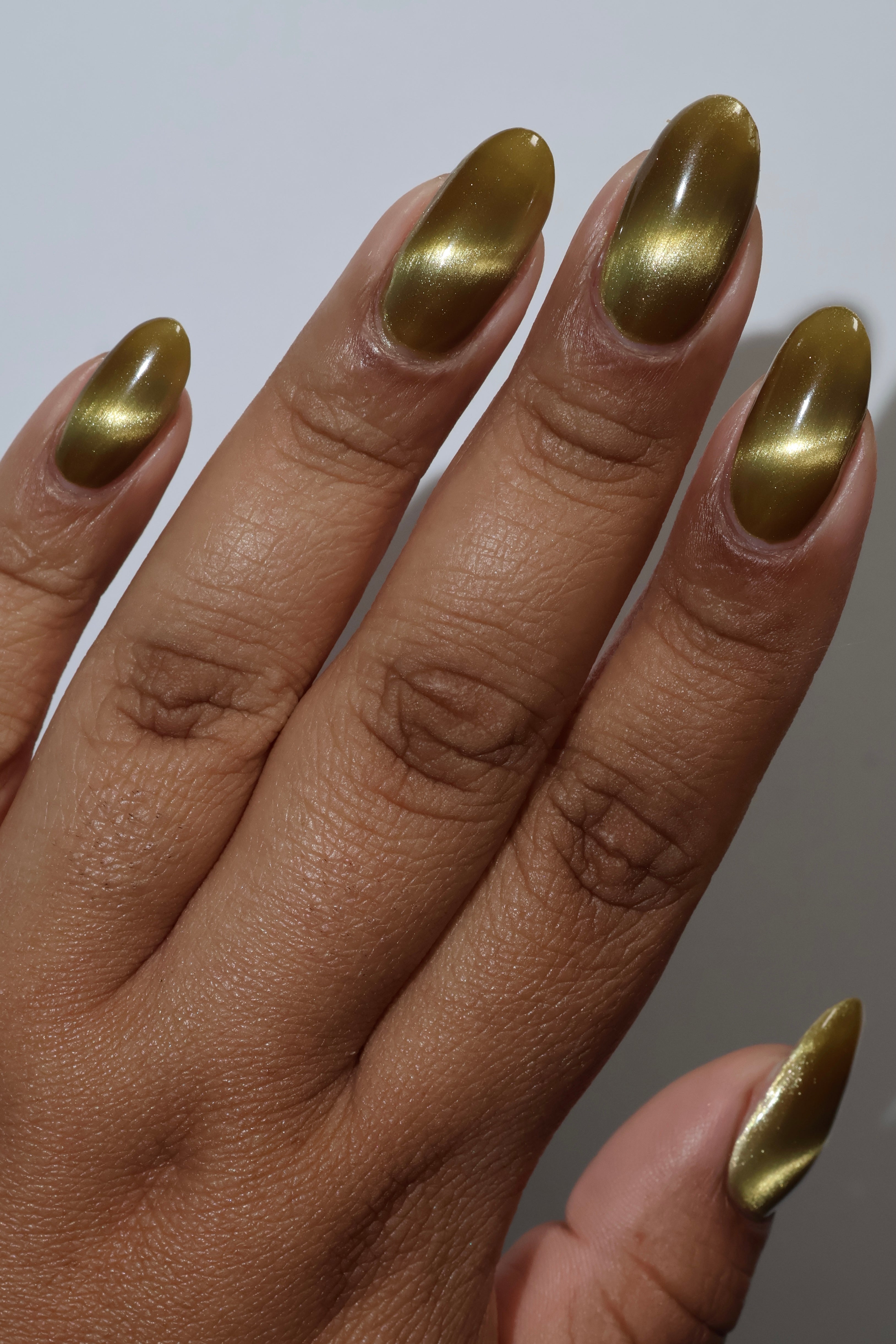 Scream with the Cicadas - a golden mustard Bog Dweller Sibling with silver magnetic shimmer that turns gold in the mustard base.