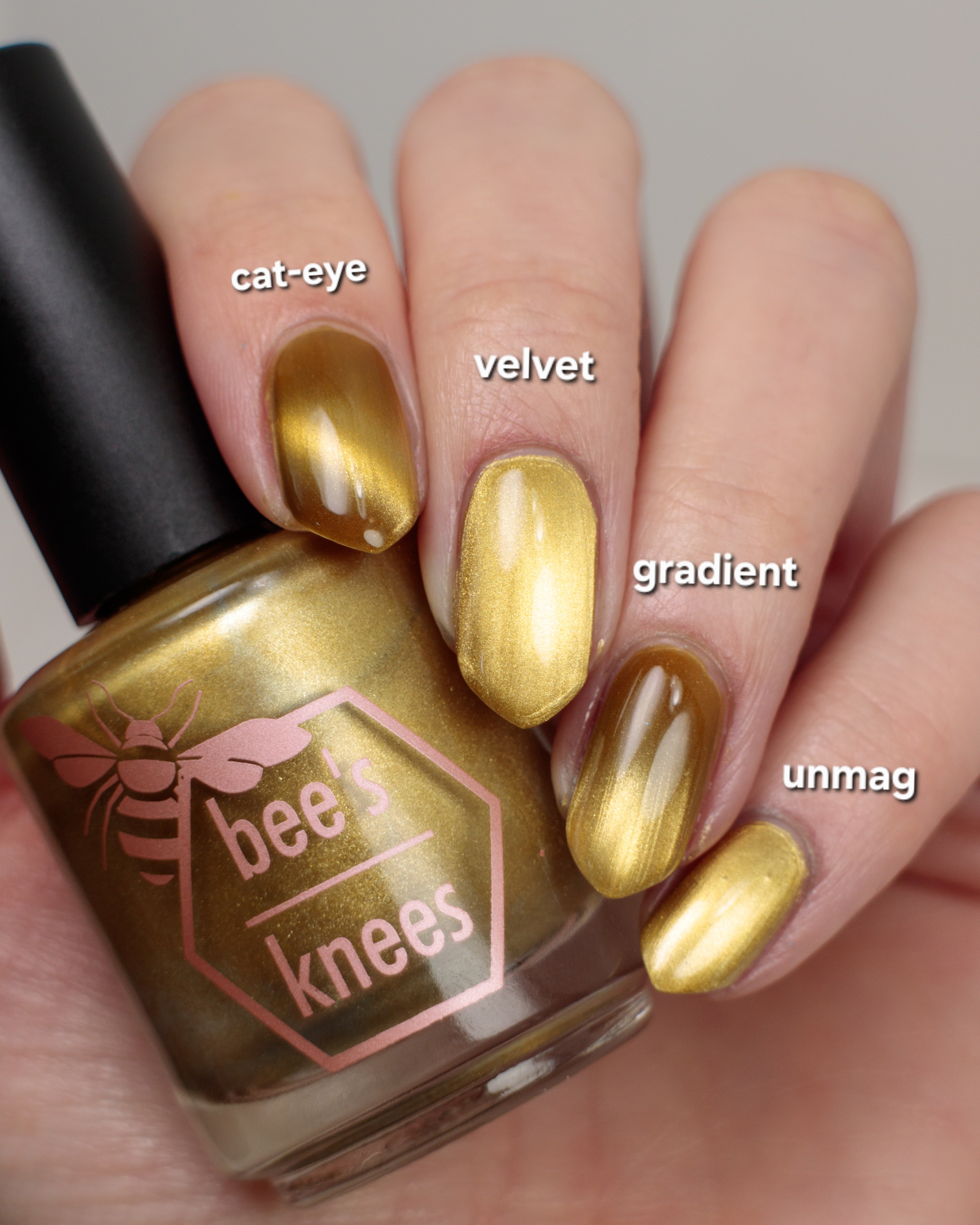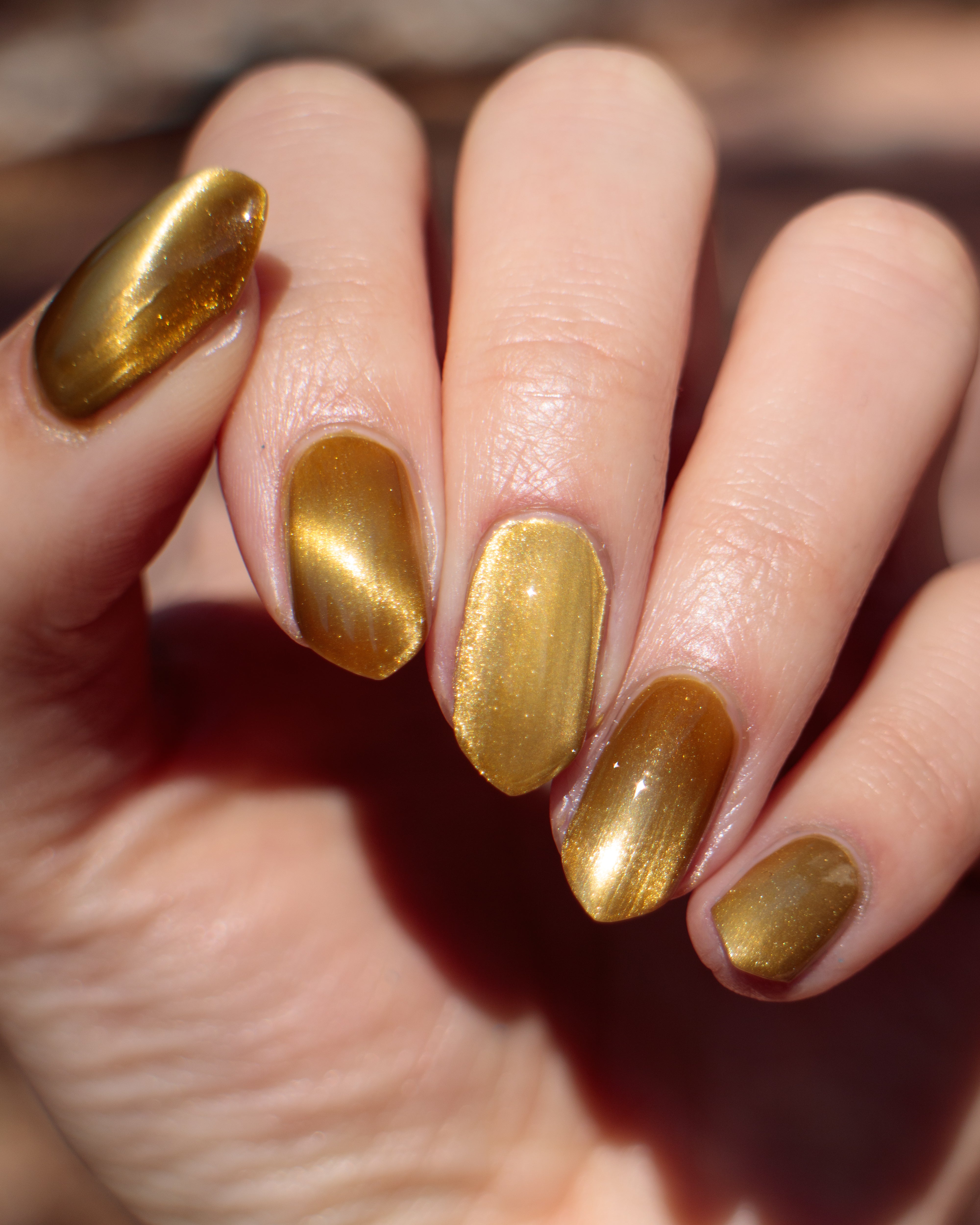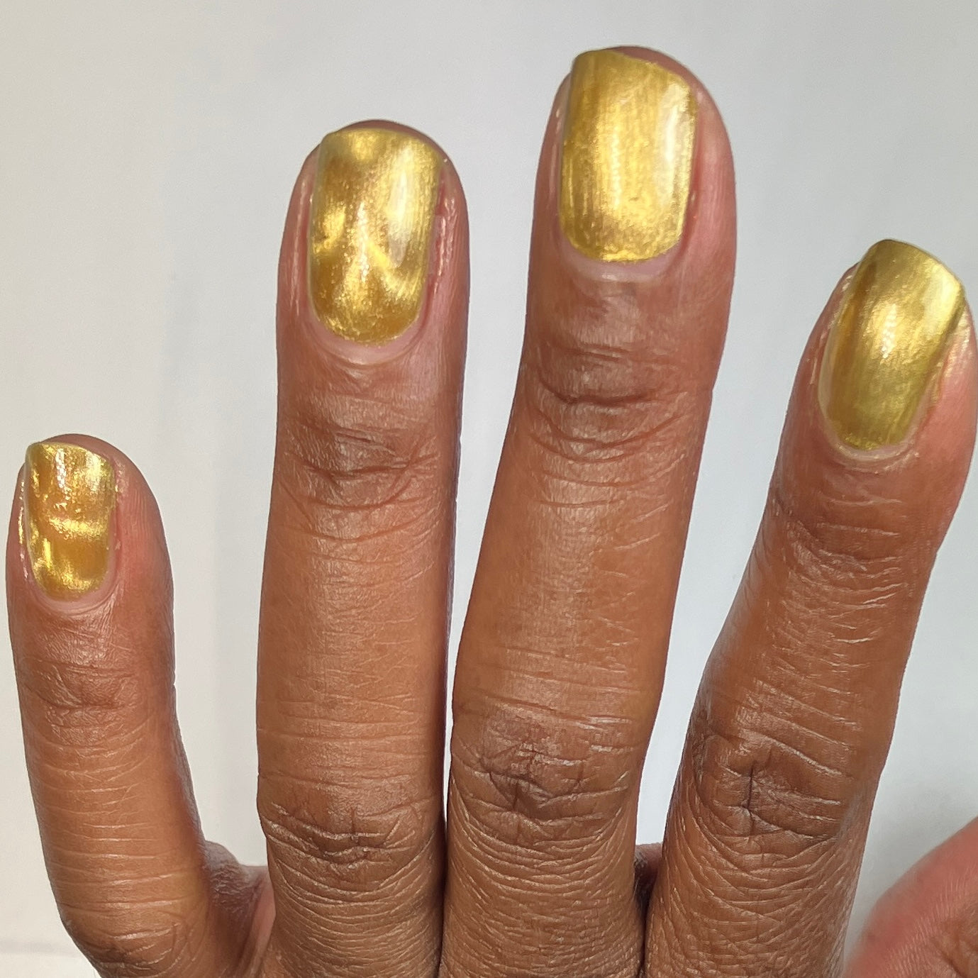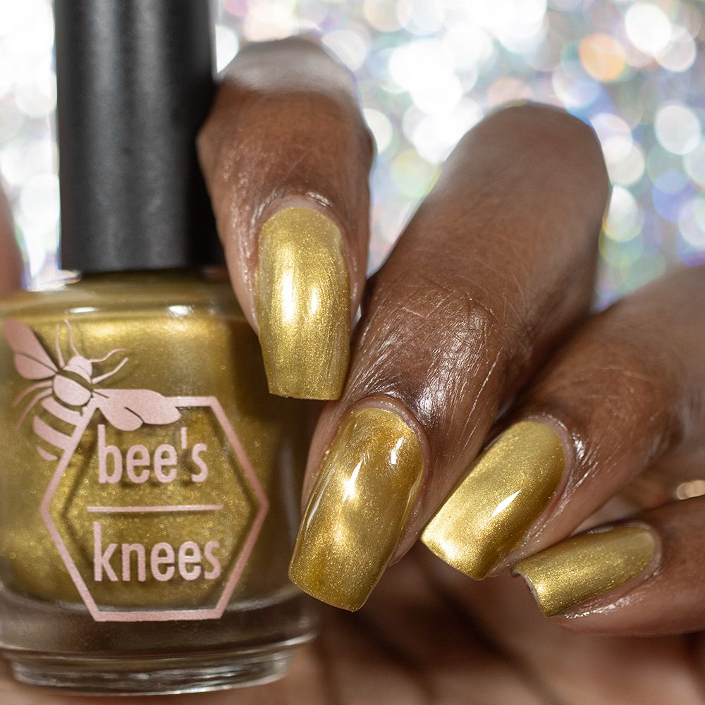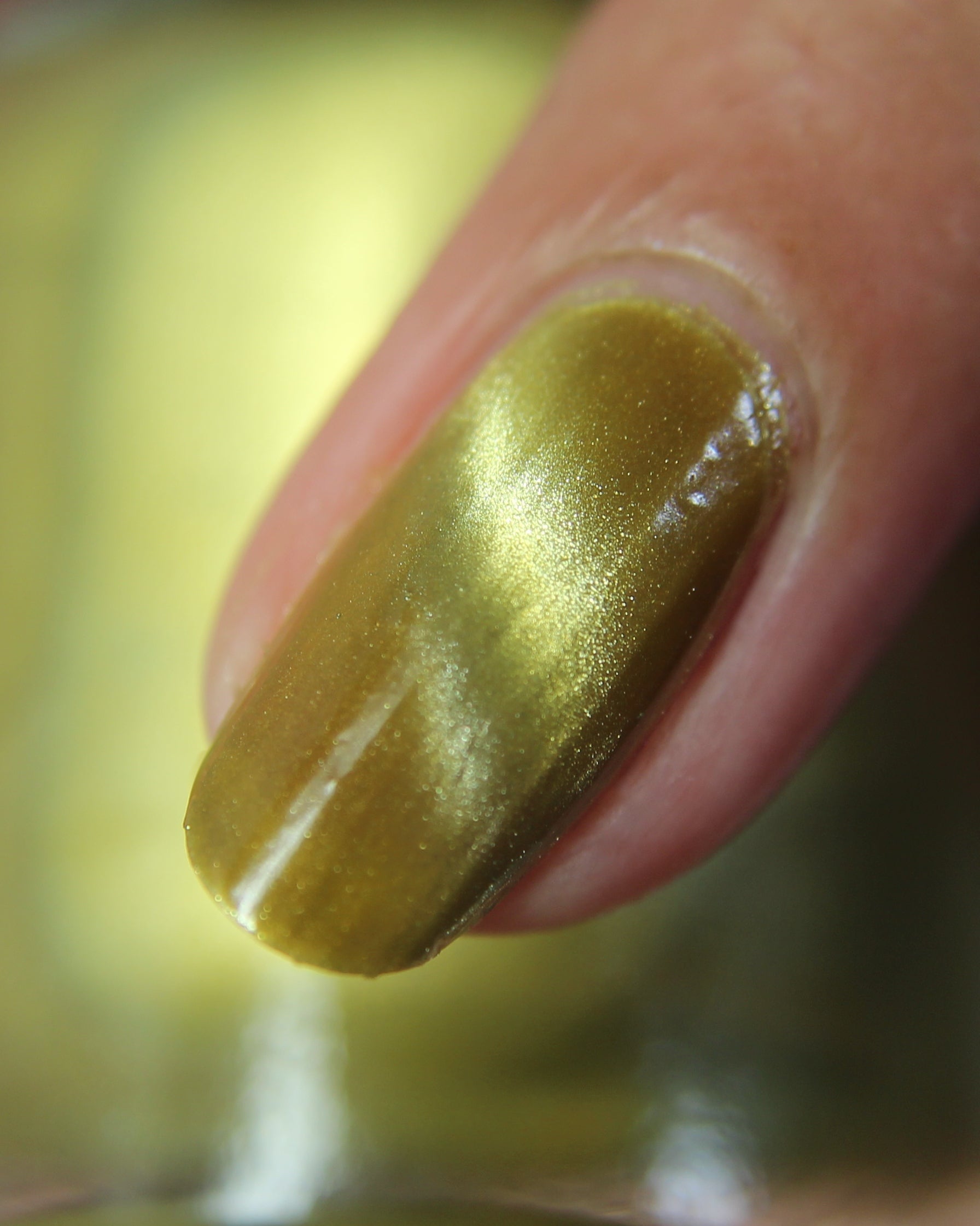 Scream with the Cicadas - a golden mustard Bog Dweller Sibling with silver magnetic shimmer that turns gold in the mustard base.