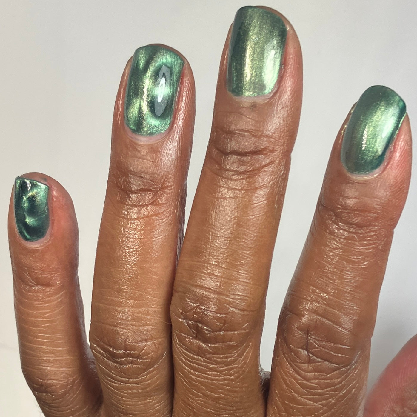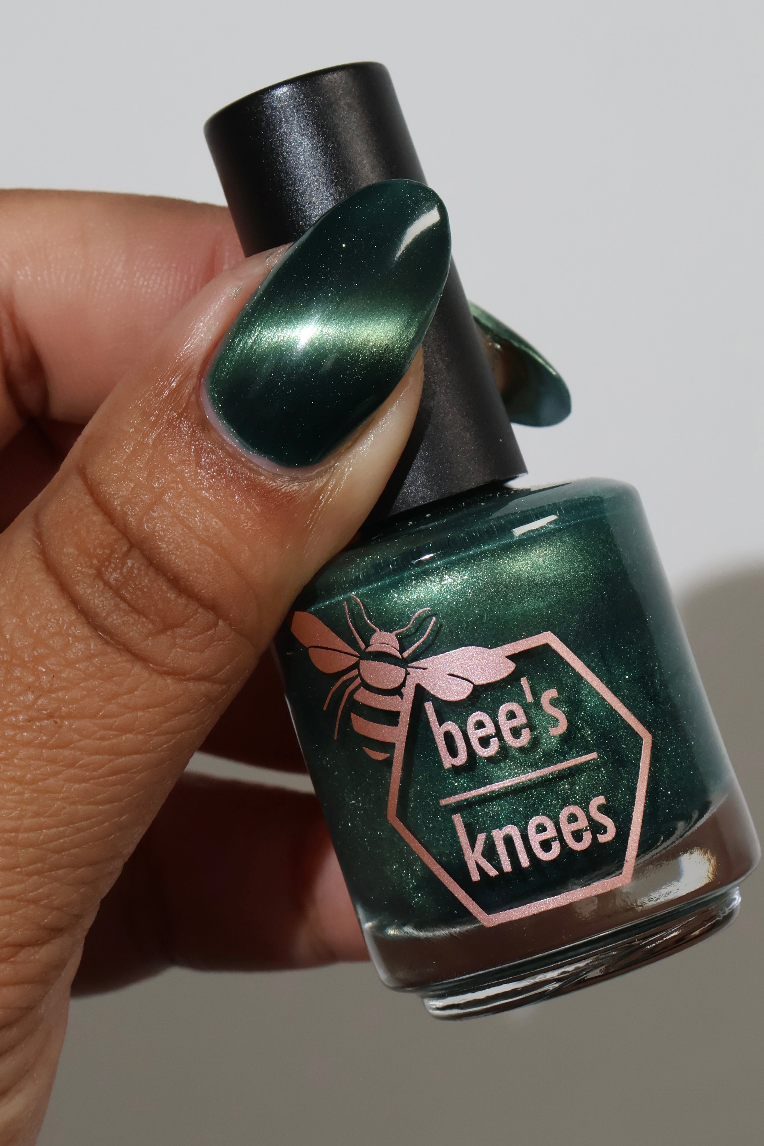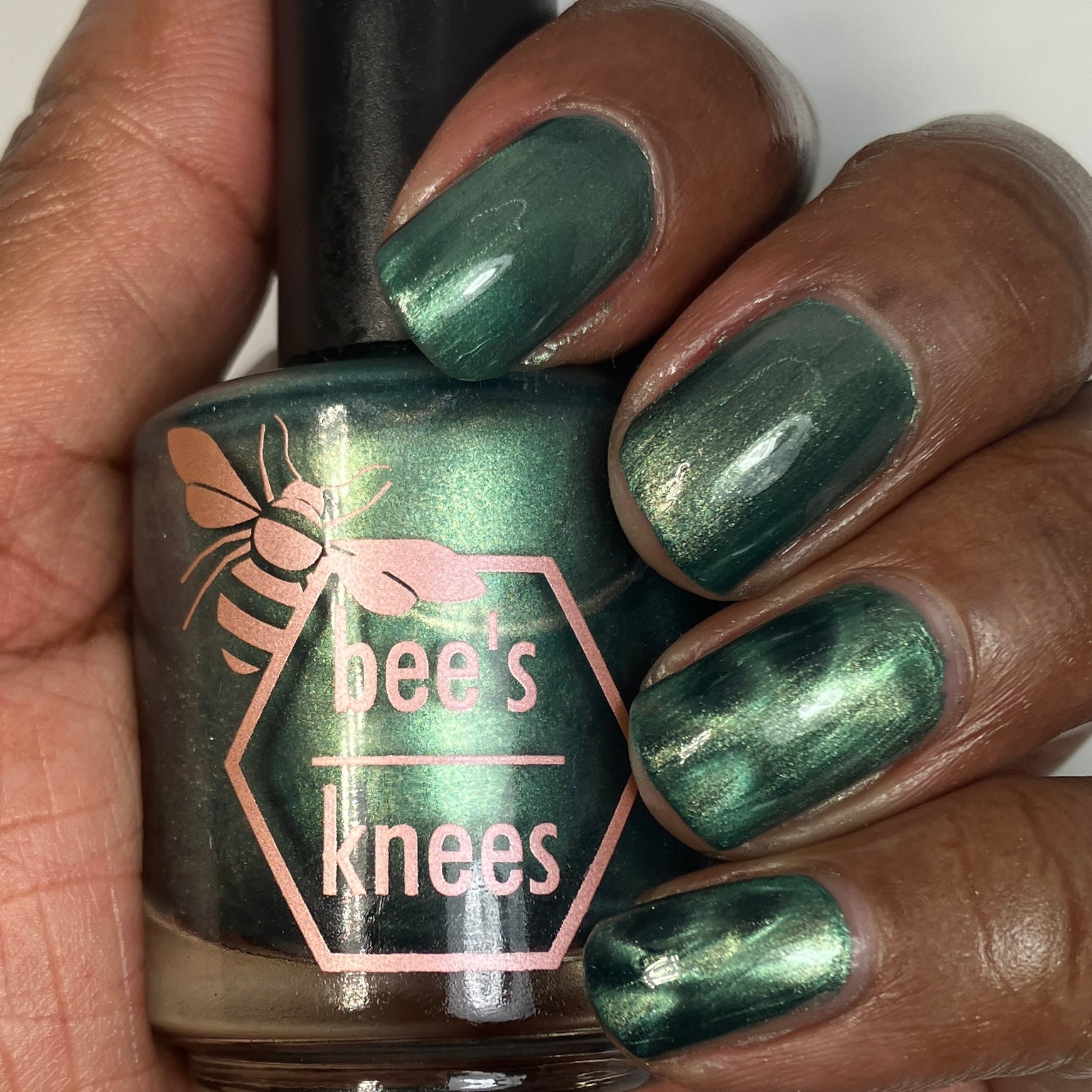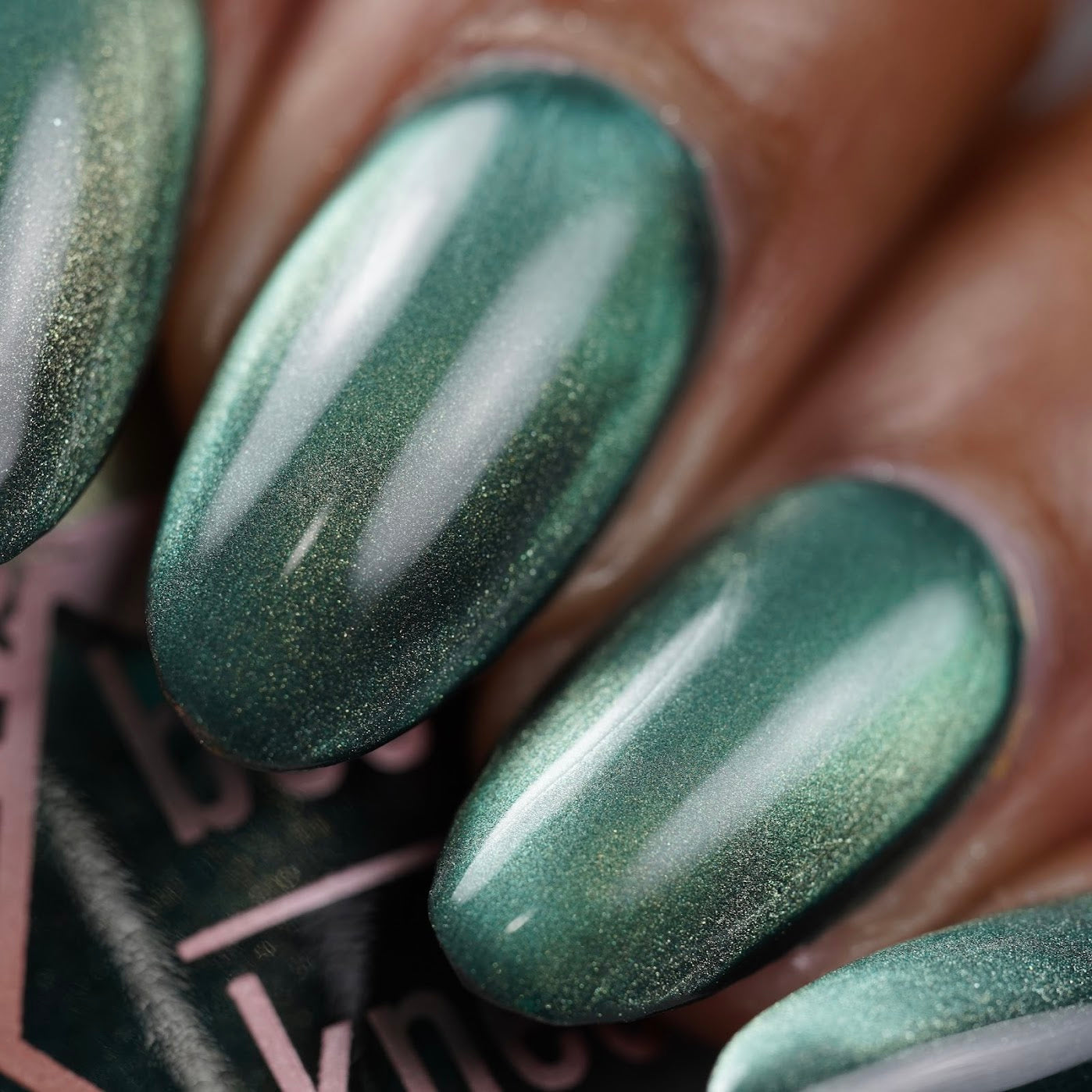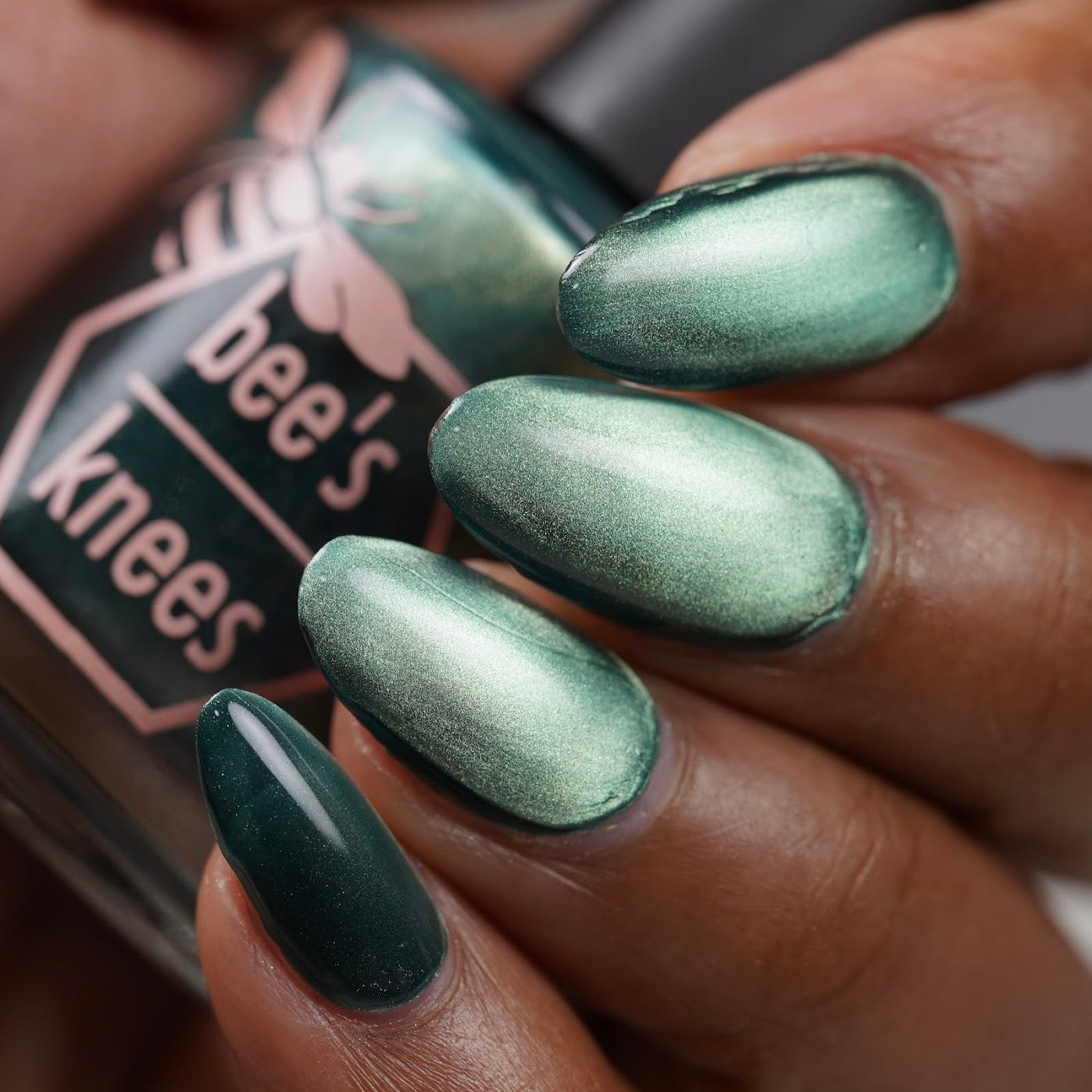 The Horrors Persist but So Do I - a dark teal Bog Dweller Sibling with silver magnetic shimmer.