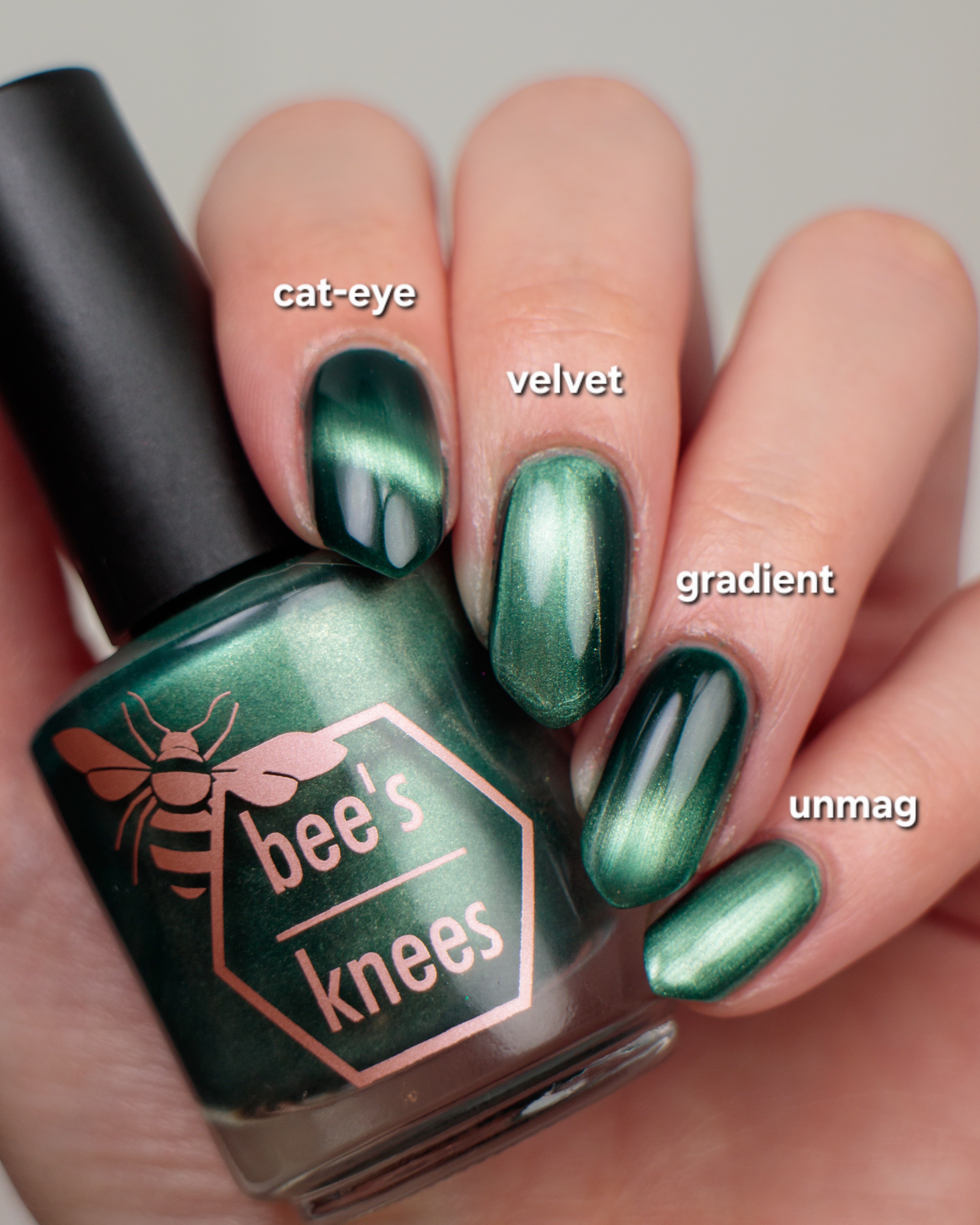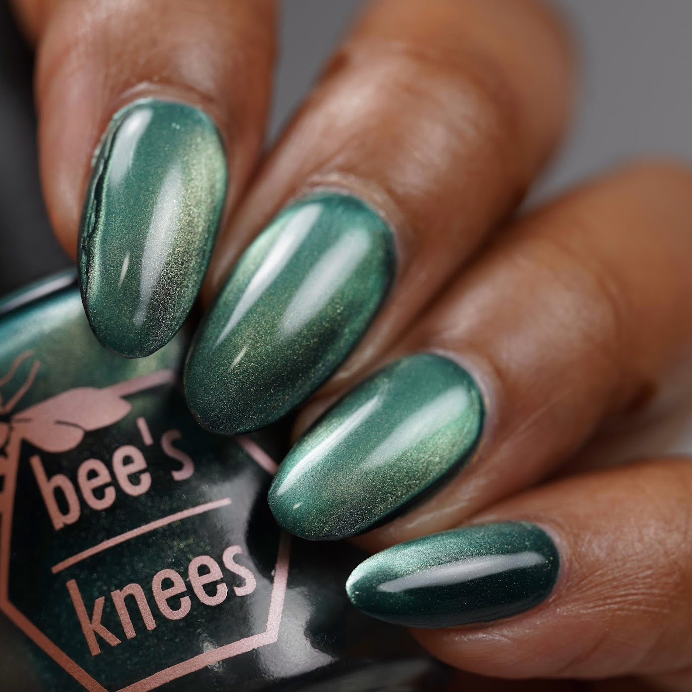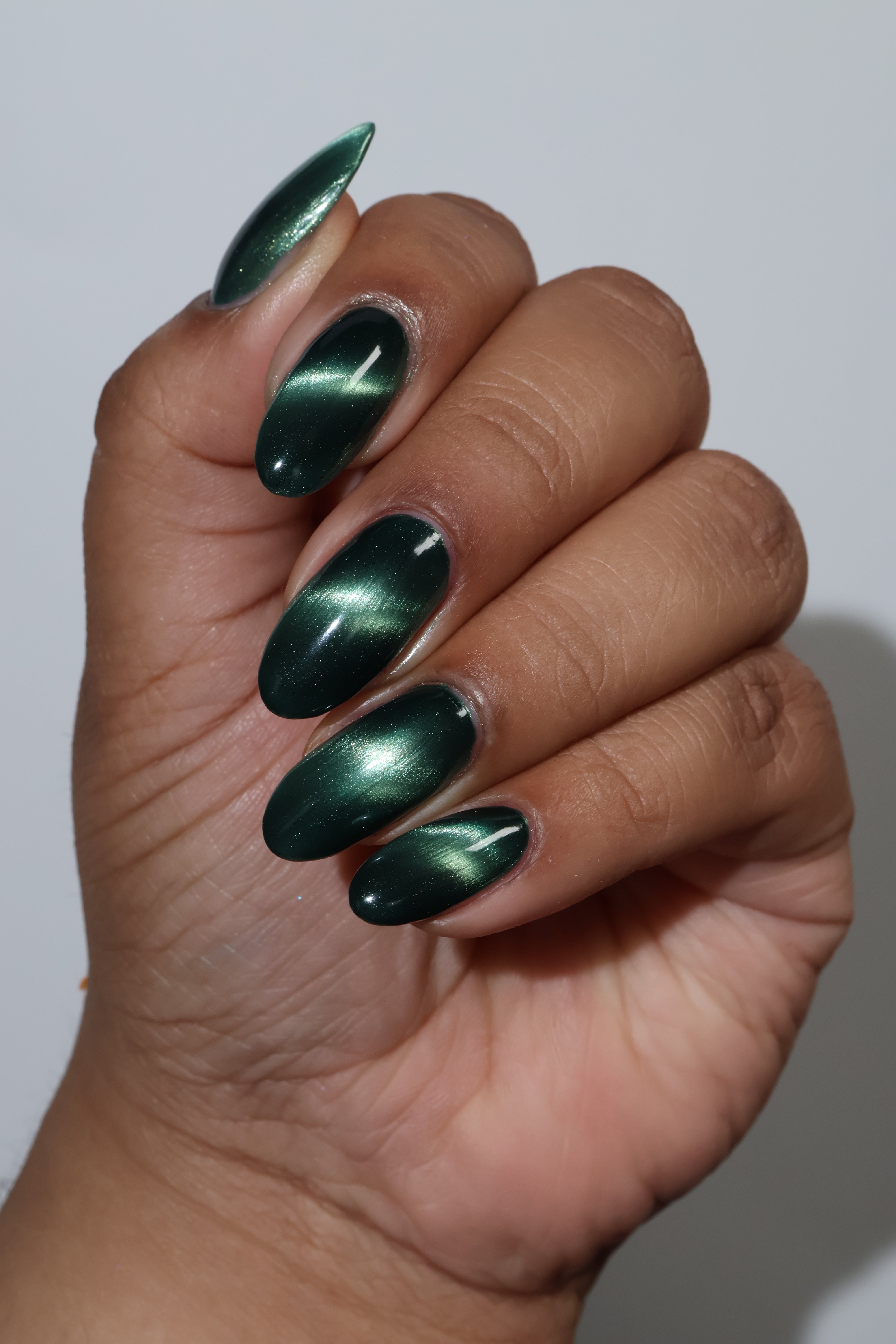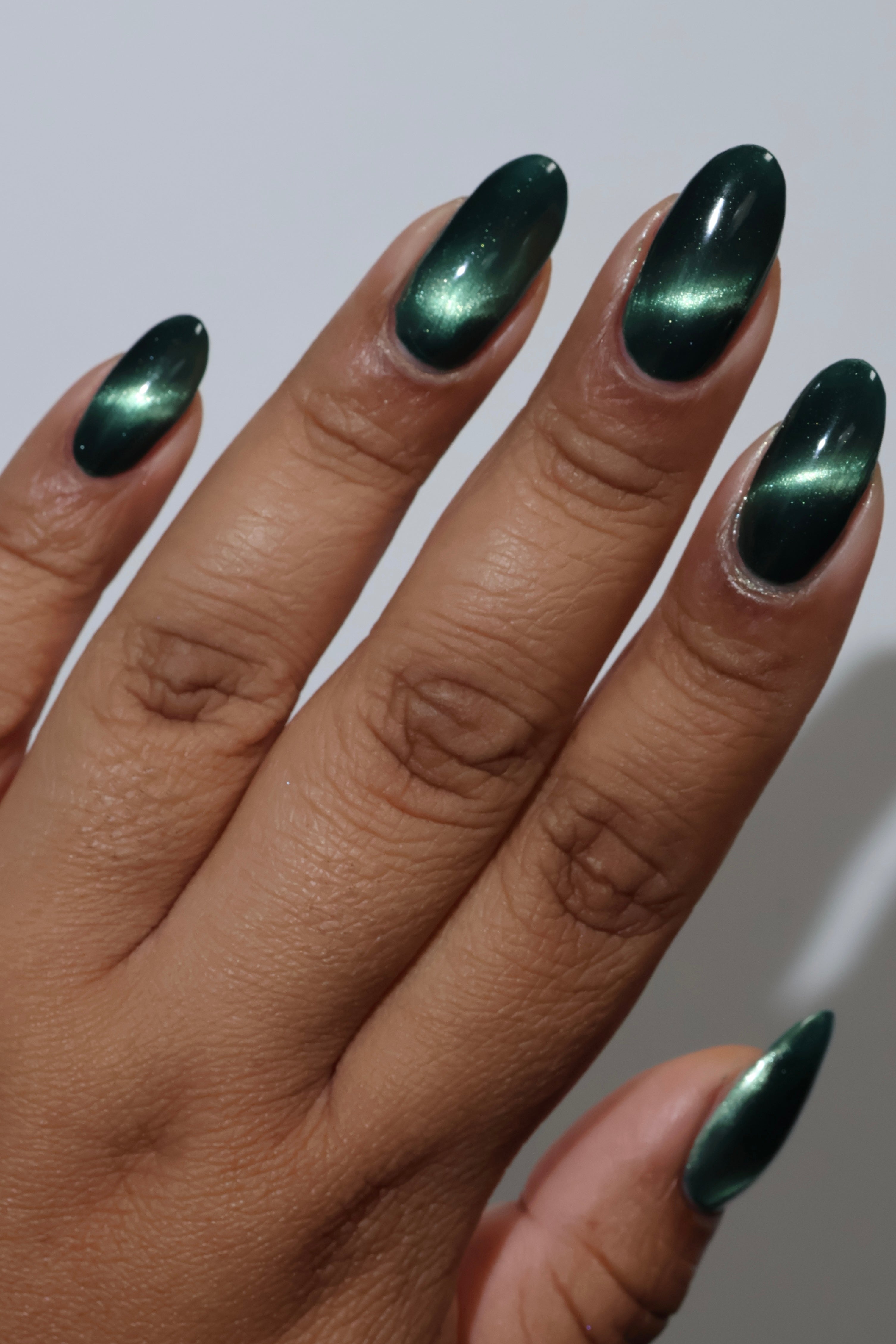 The Horrors Persist but So Do I - a dark teal Bog Dweller Sibling with silver magnetic shimmer.