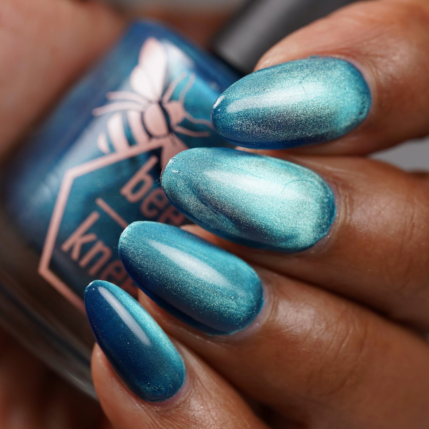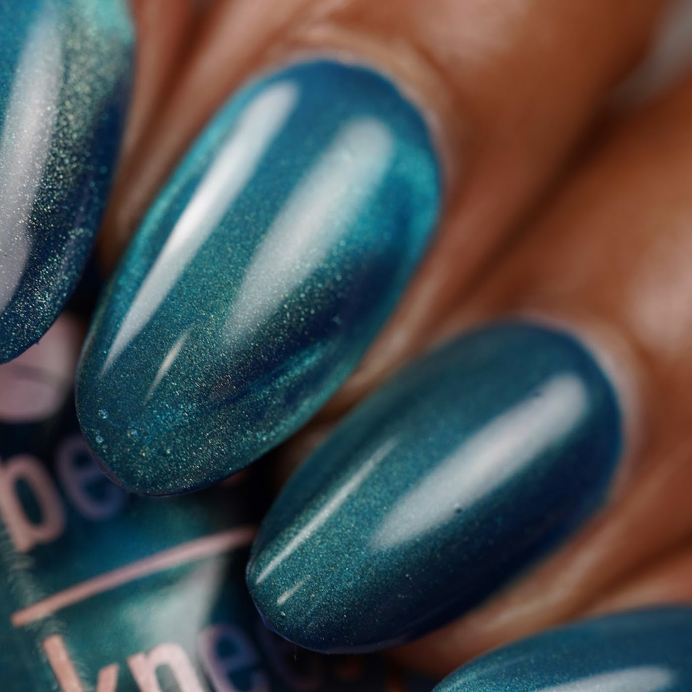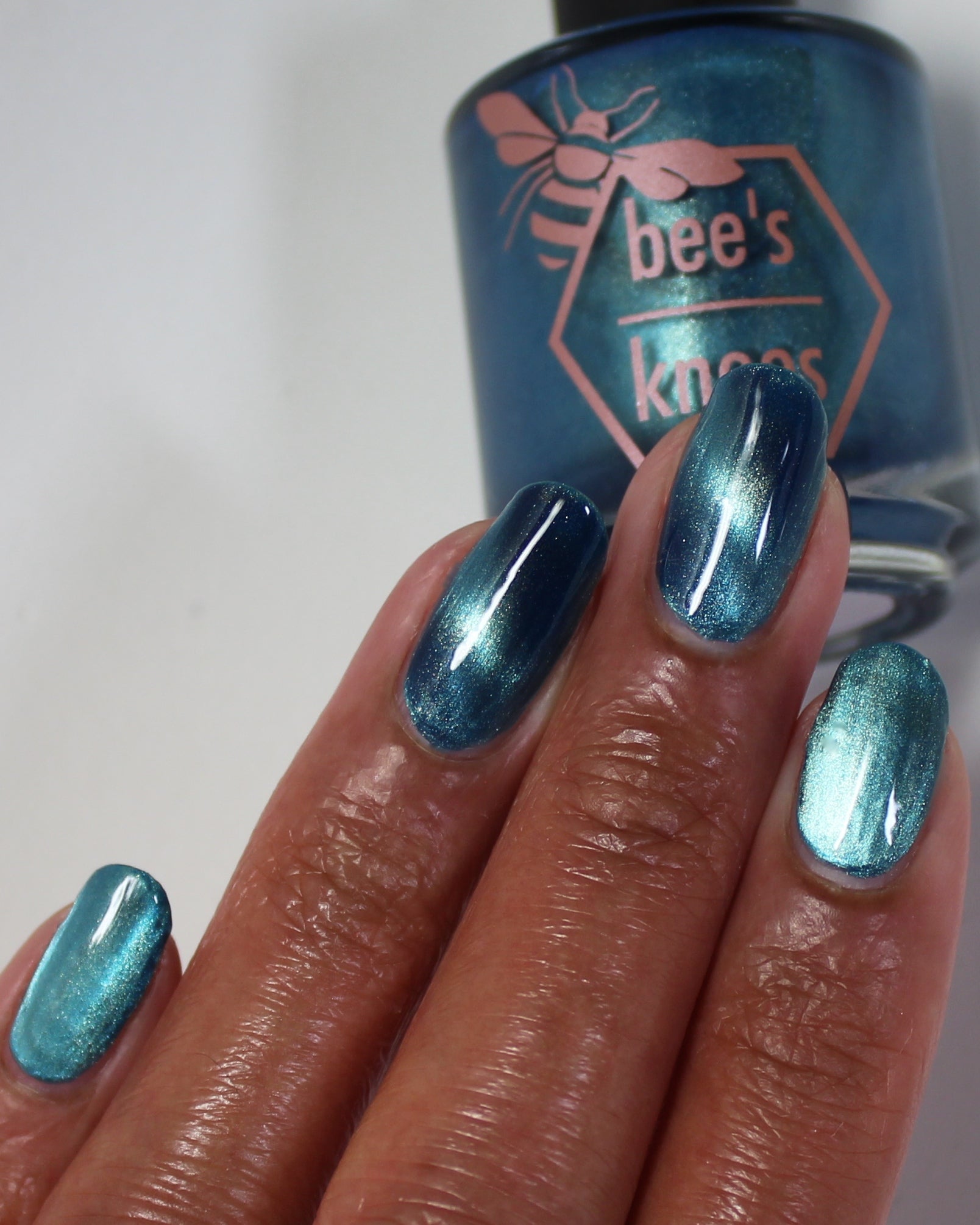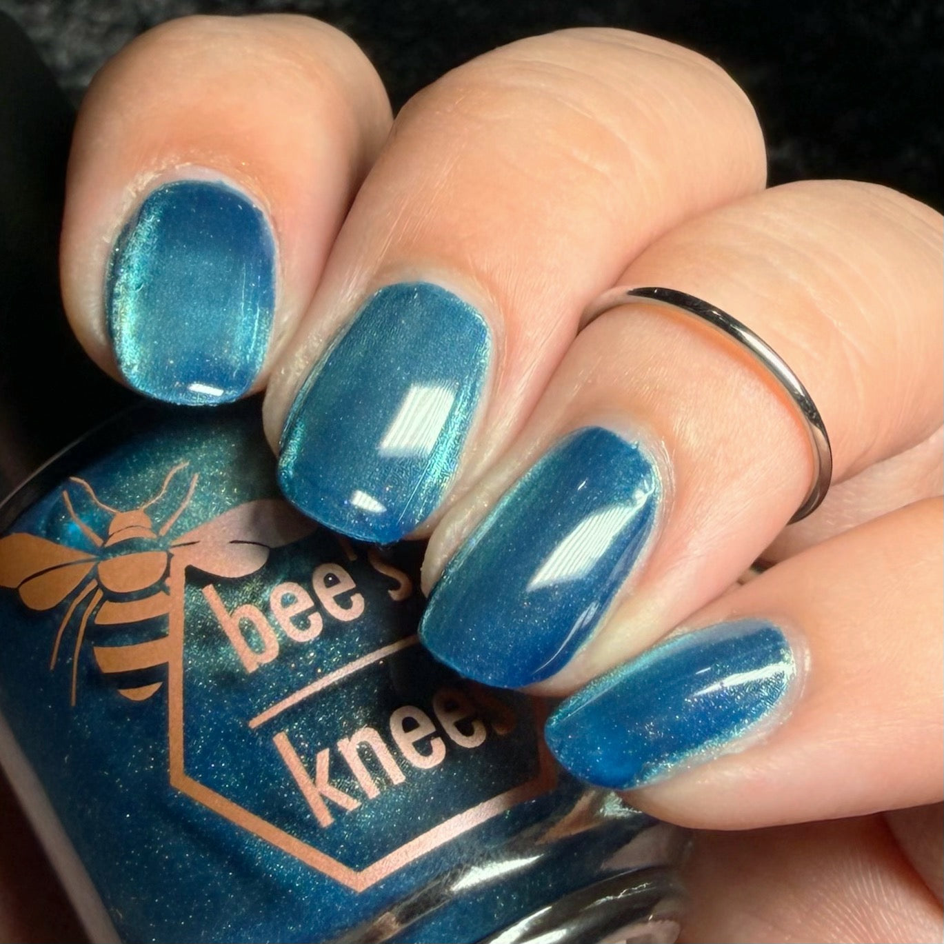 The Water Remembers - a mid-toned cerulean Bog Dweller Sibling with silver magnetic shimmer that turns sky blue in the cerulean base.