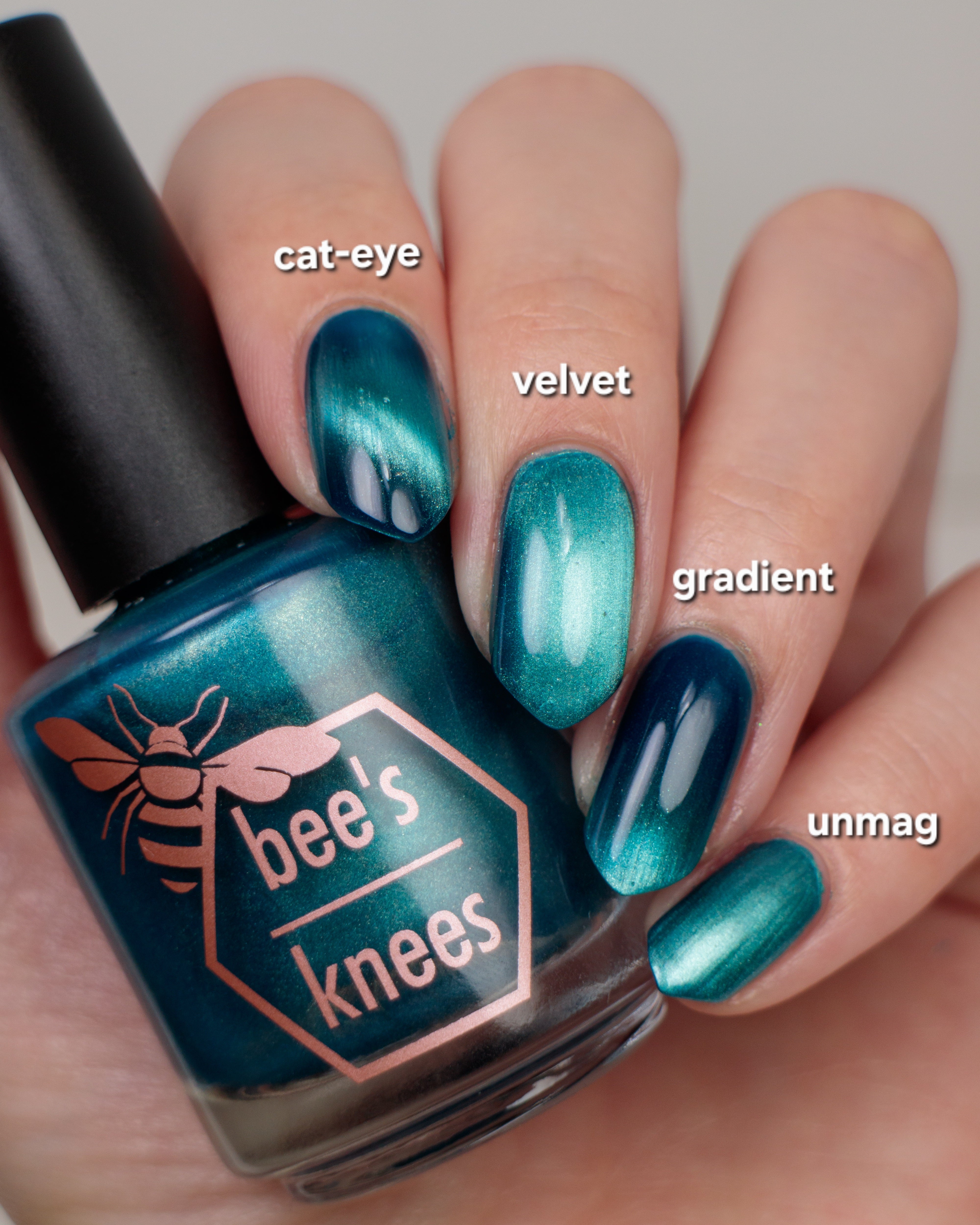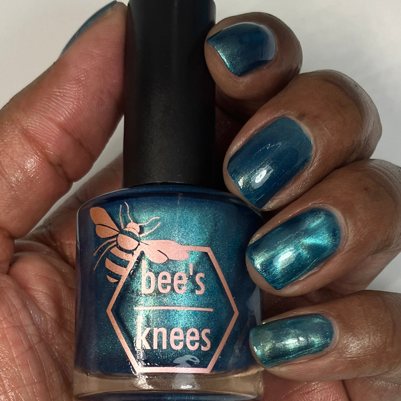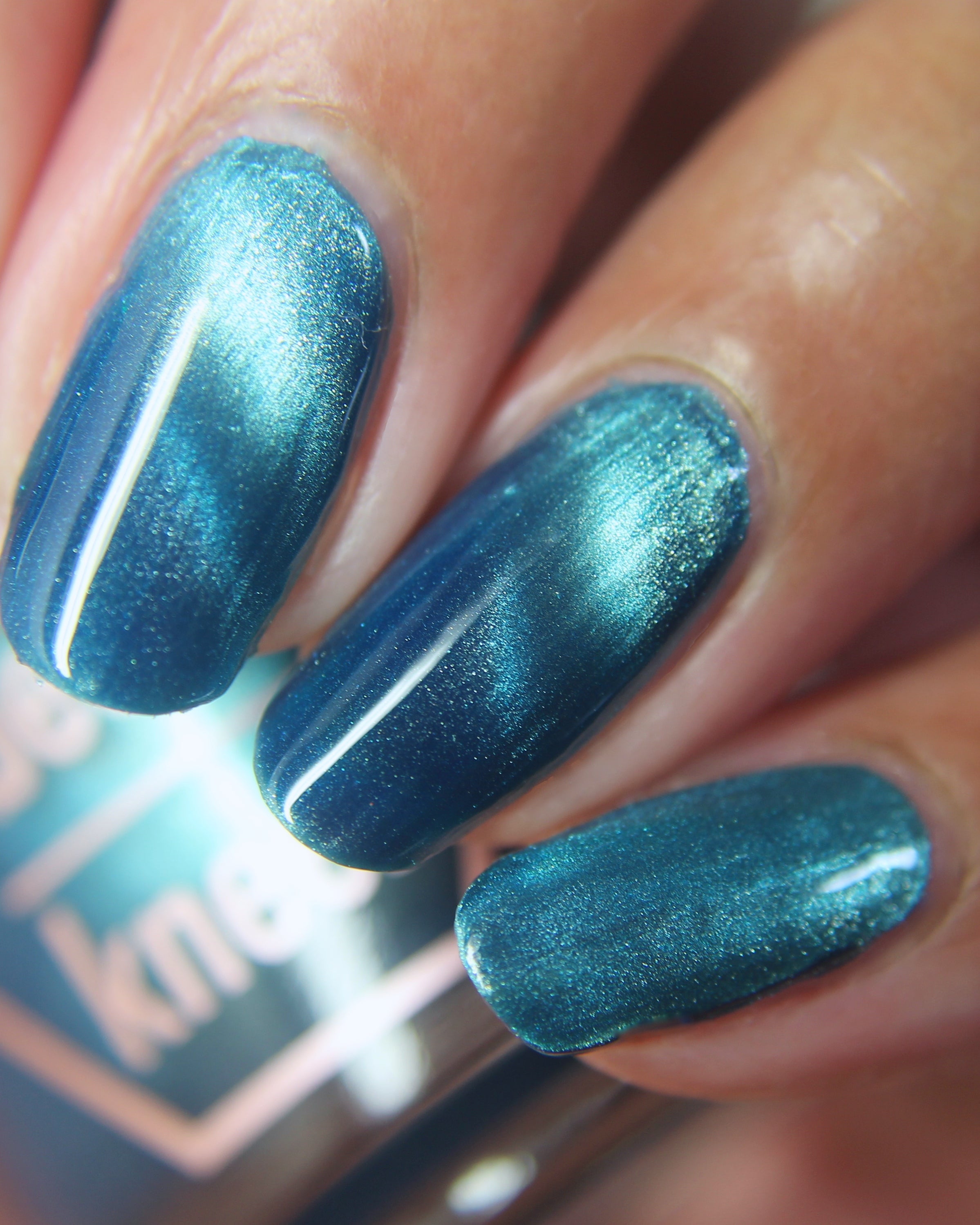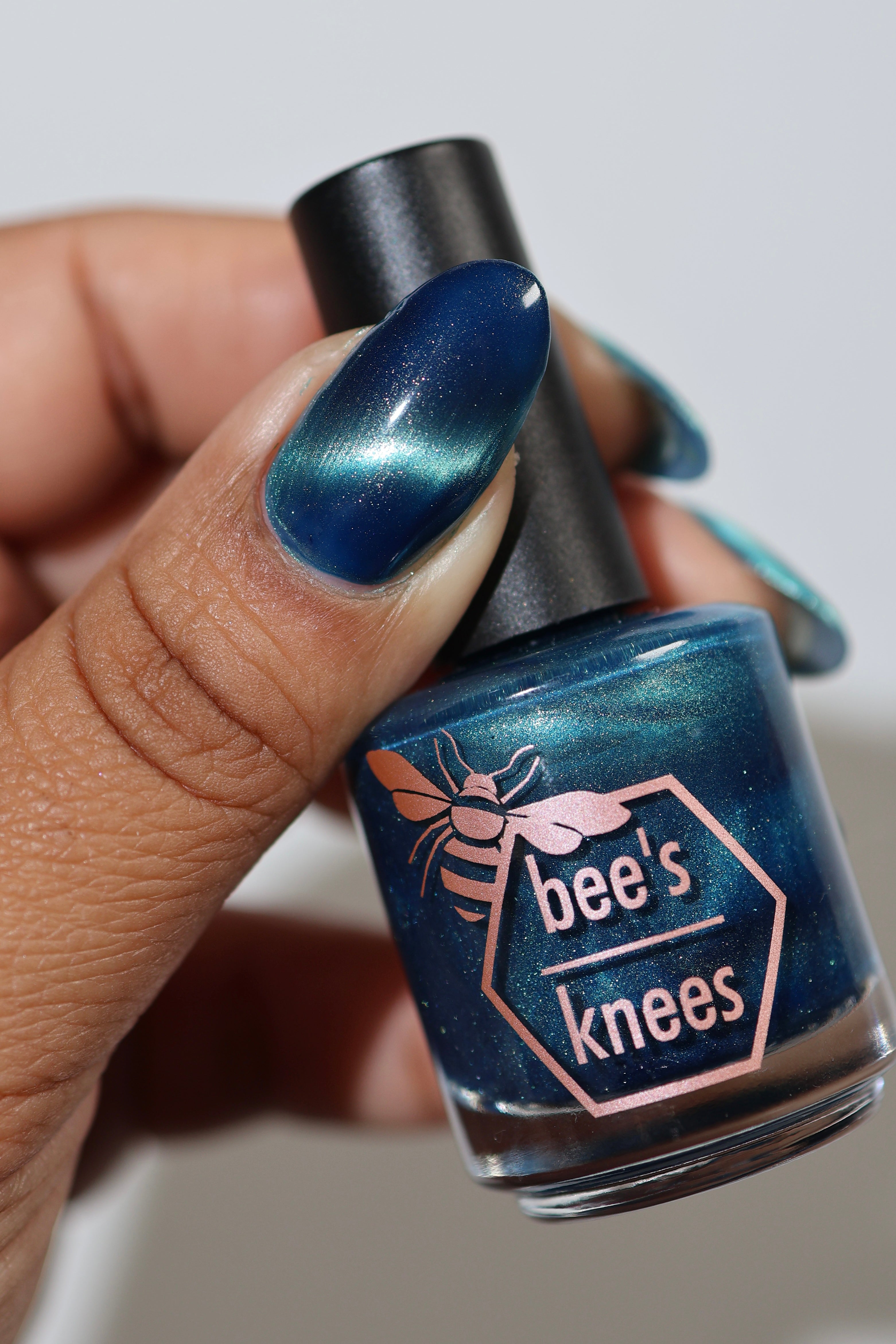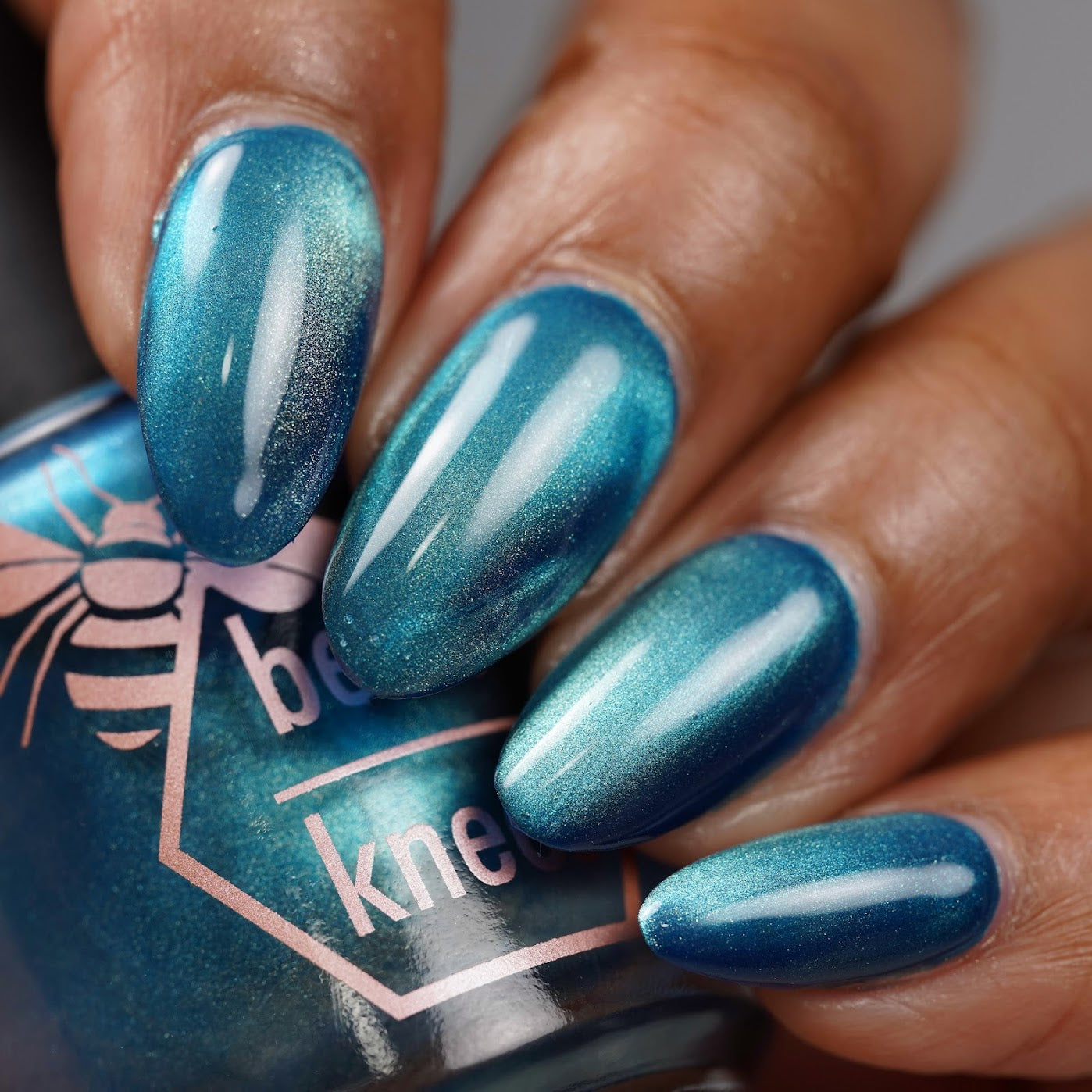 The Water Remembers - a mid-toned cerulean Bog Dweller Sibling with silver magnetic shimmer that turns sky blue in the cerulean base.