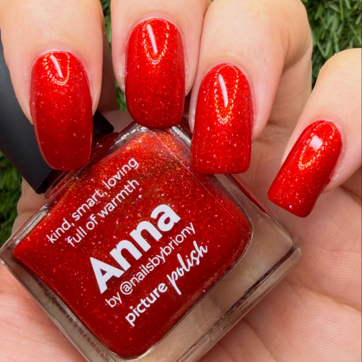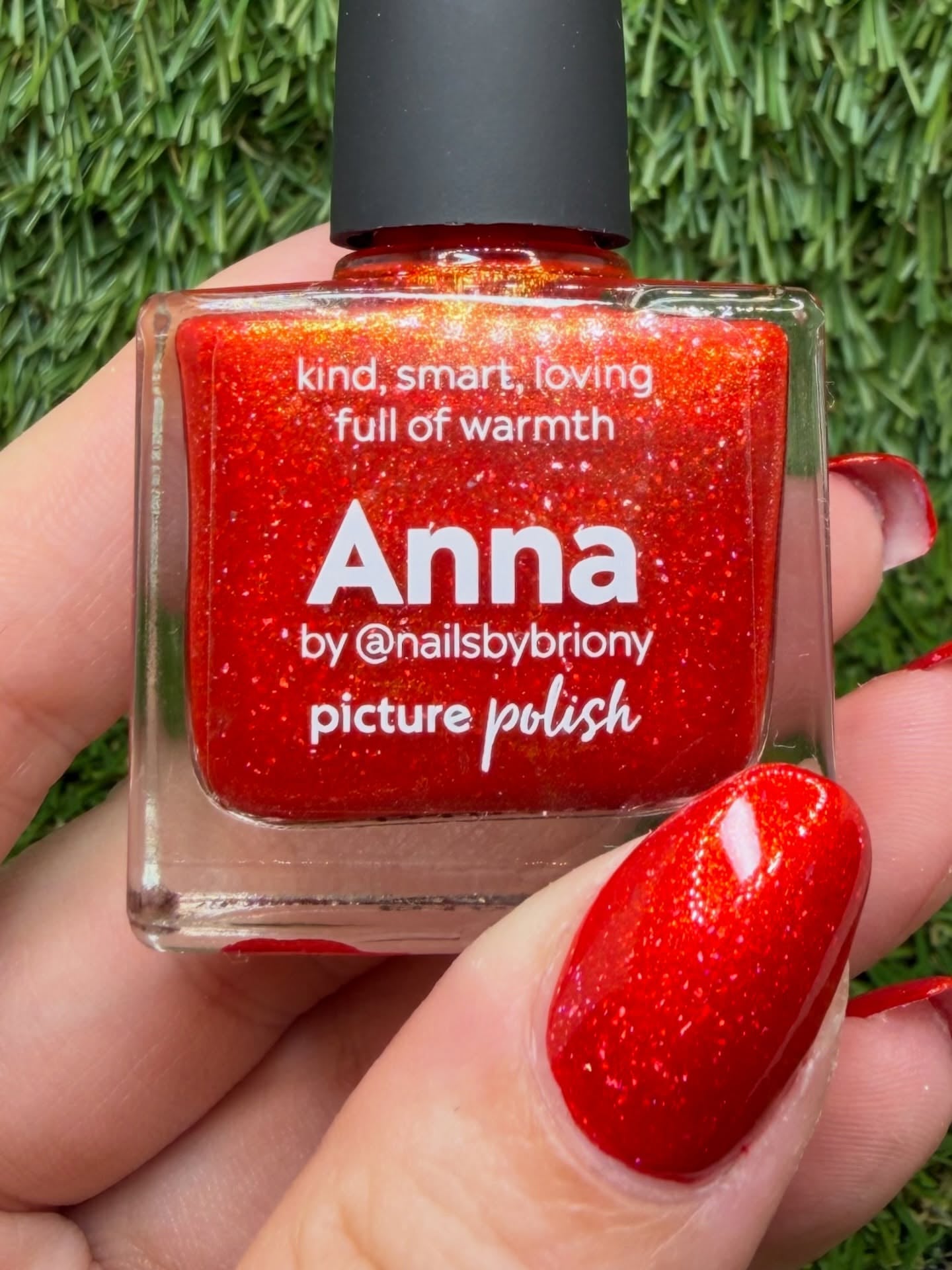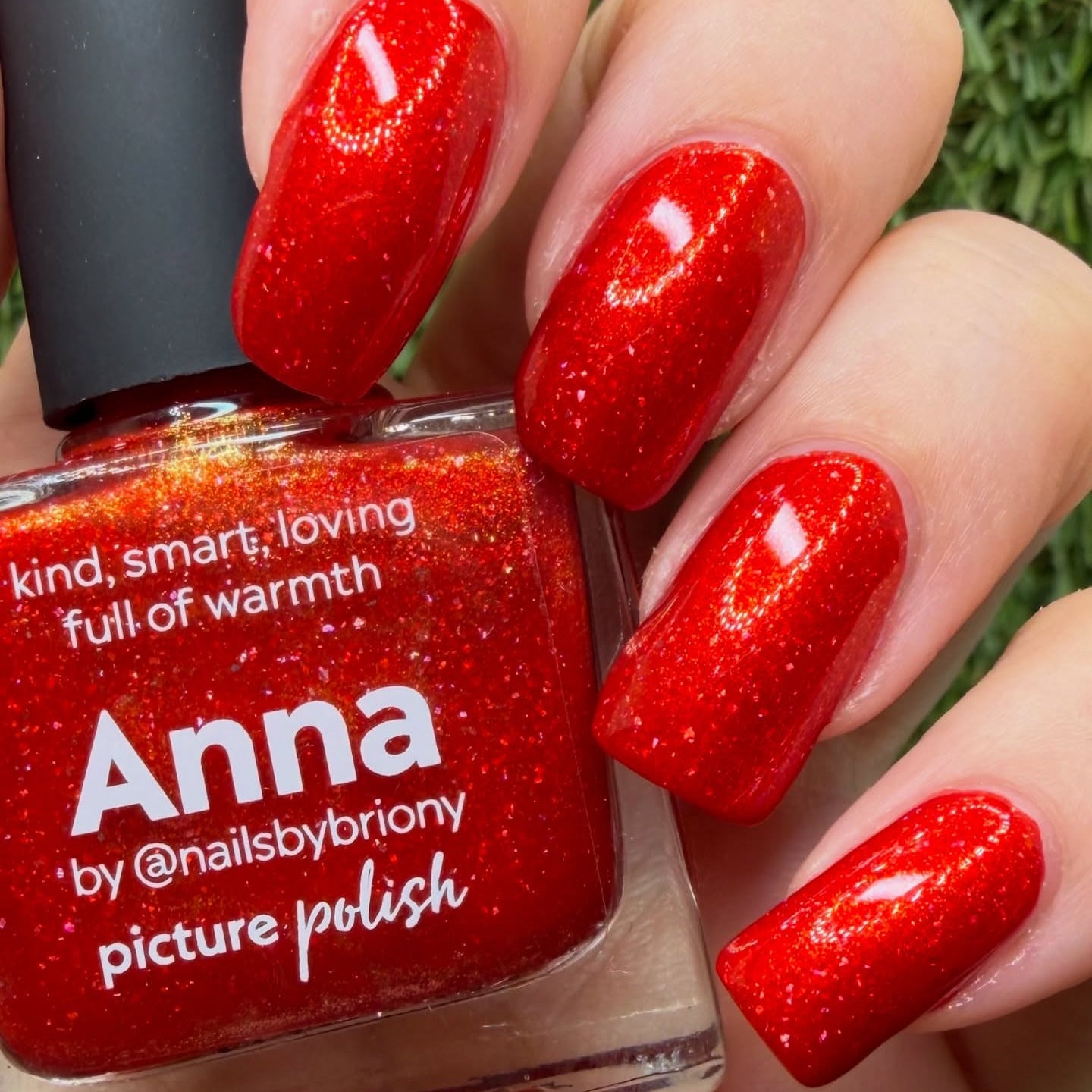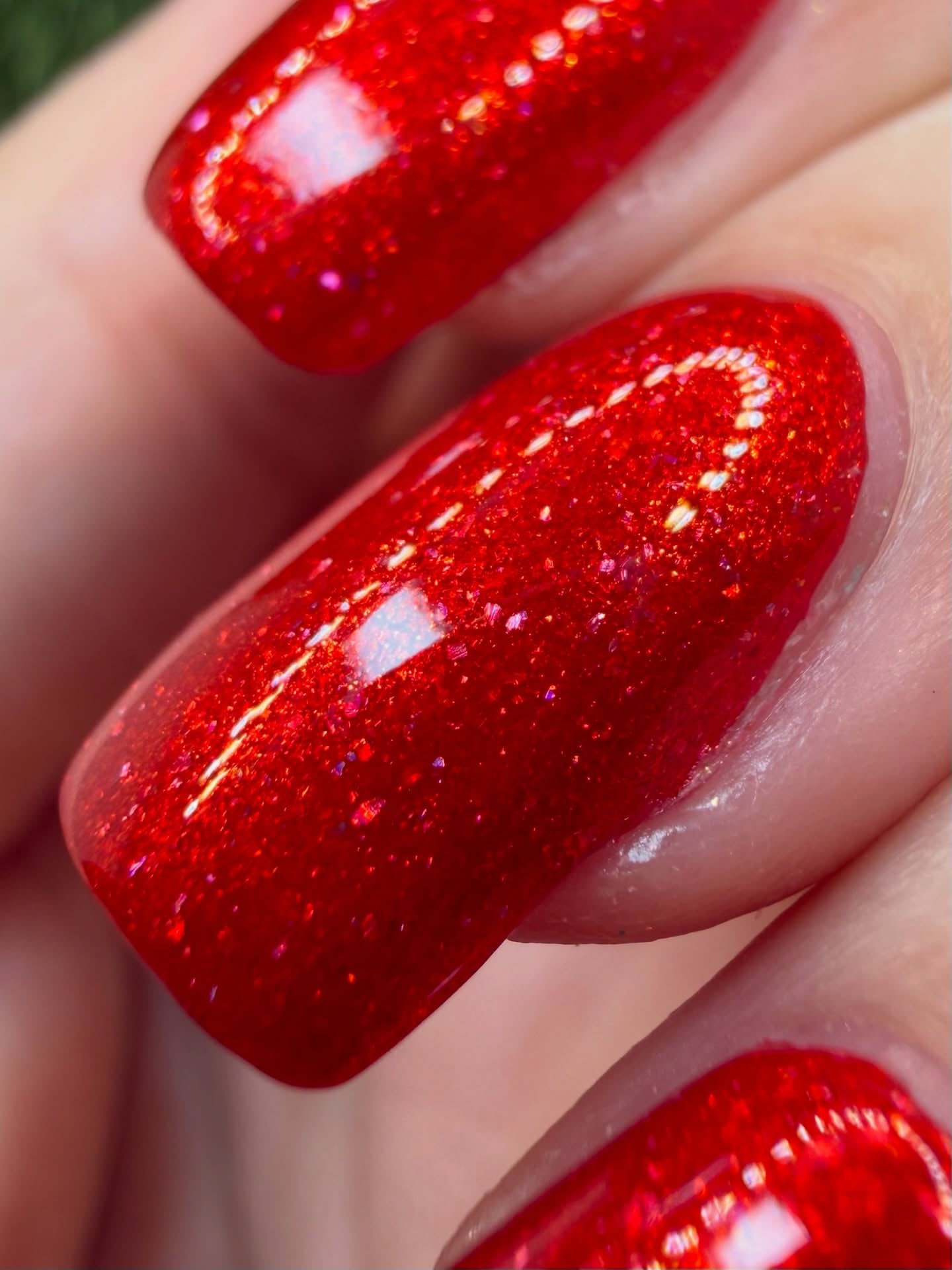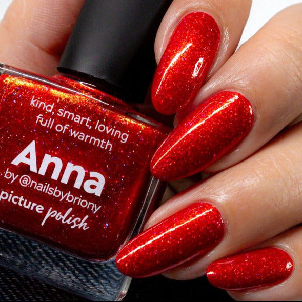 Anna is a warm red holographic polish with golden shimmer
