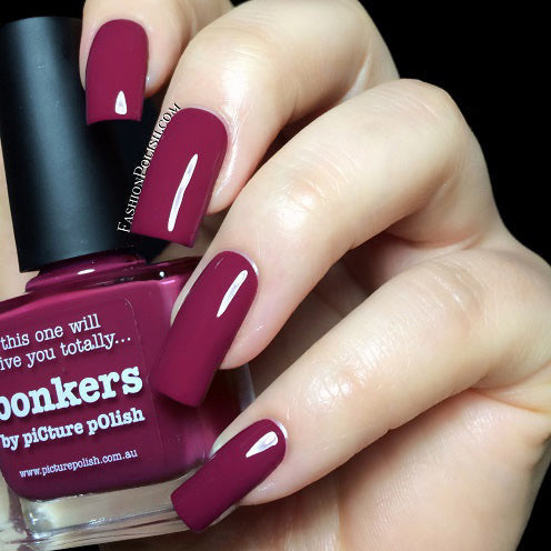 Bonkers is a vivid berry creme with excellent coverage, almost a one coater.