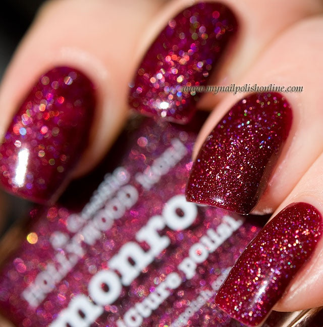 This timeless berry holographic nail polish will dazzle any audience with its lush colour and seductive shine.