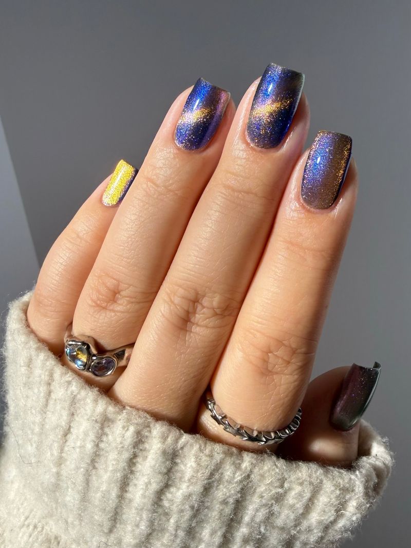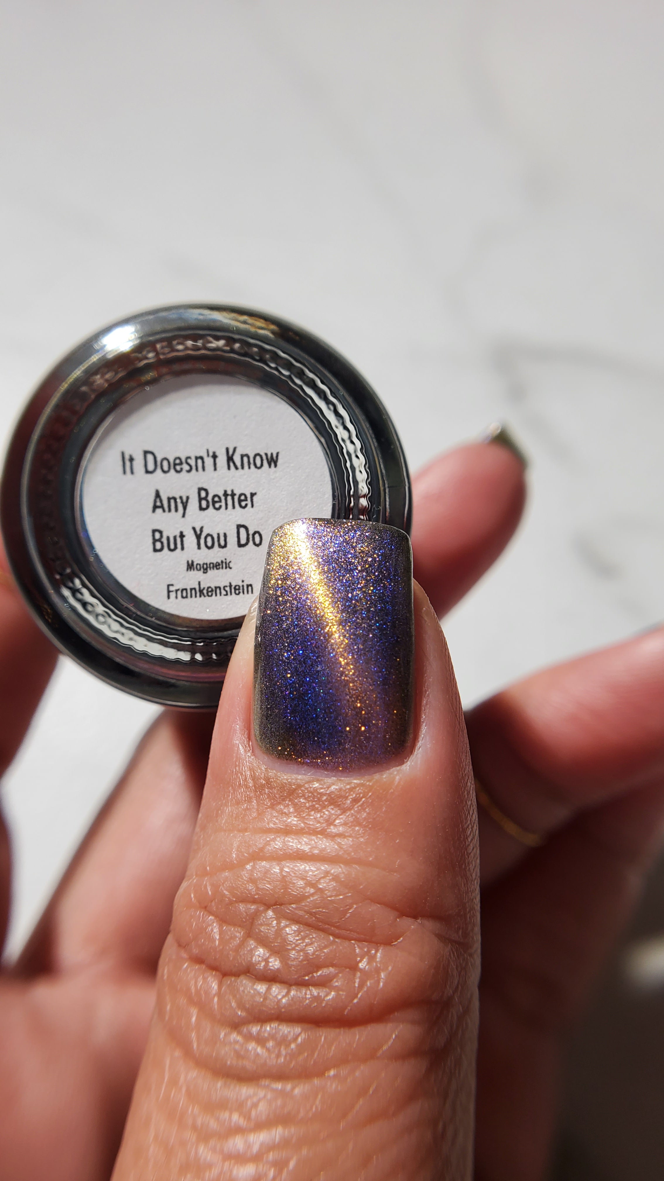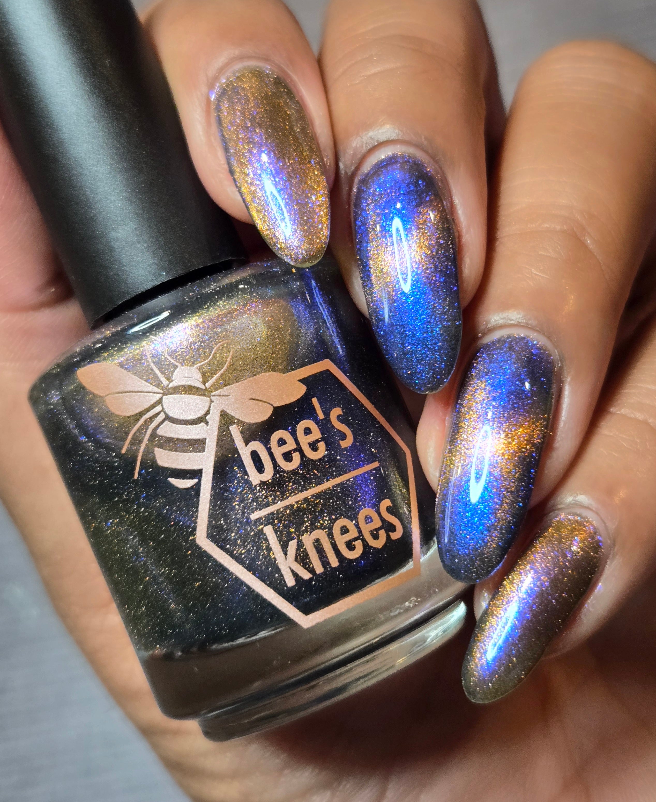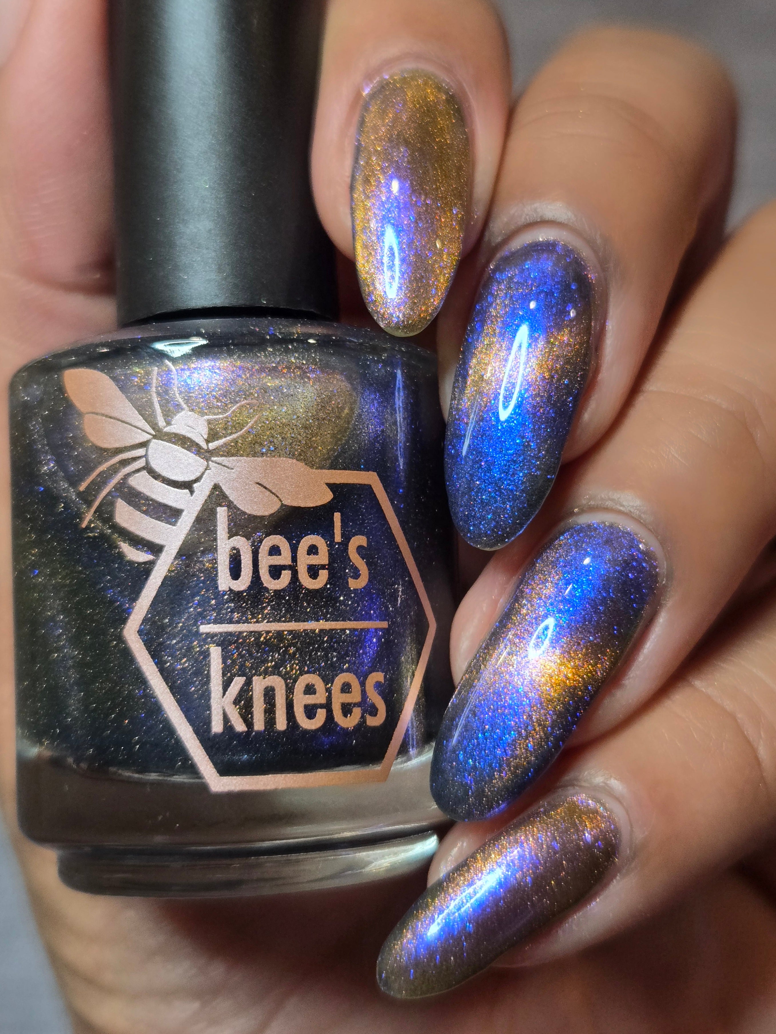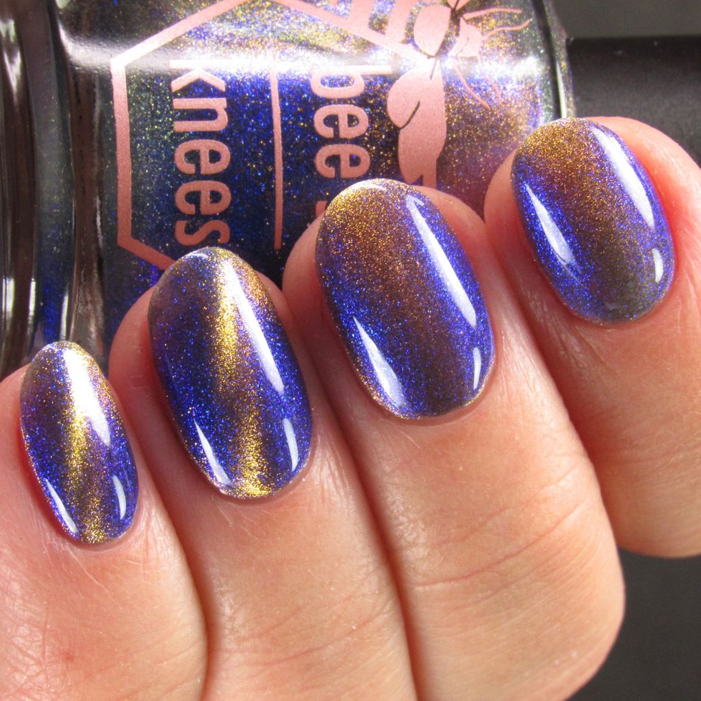 It Doesn't Know Any Better, But You Do - an indigo to purple pastel multichrome with a pale pink to peach magnetic multichrome shimmer