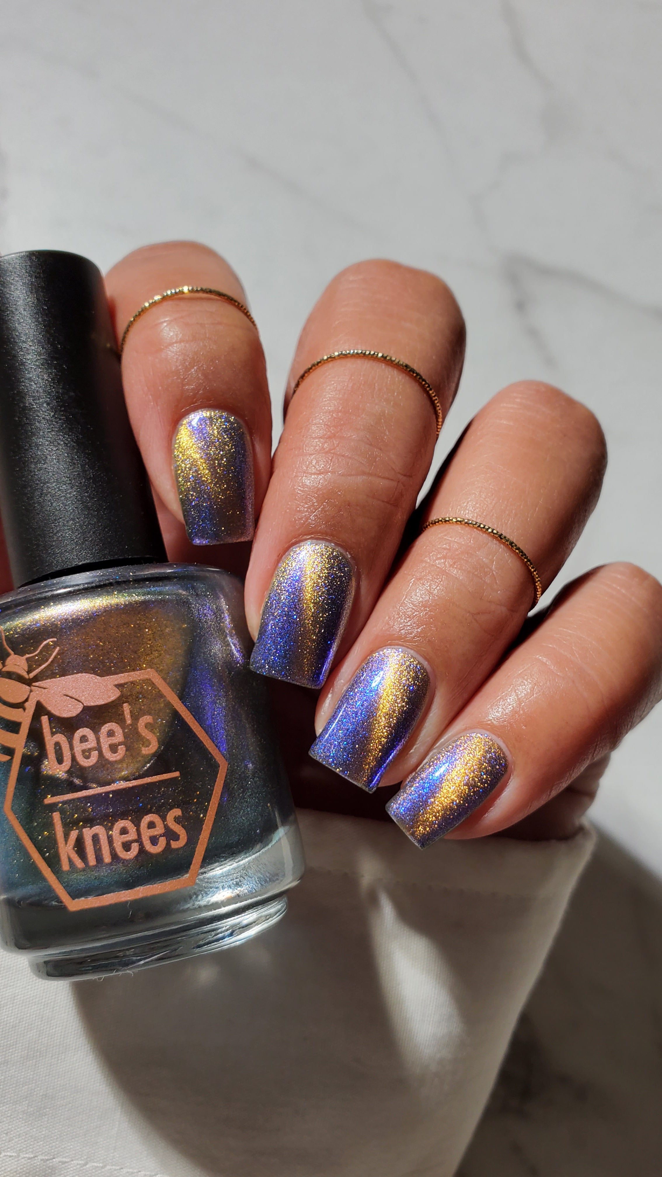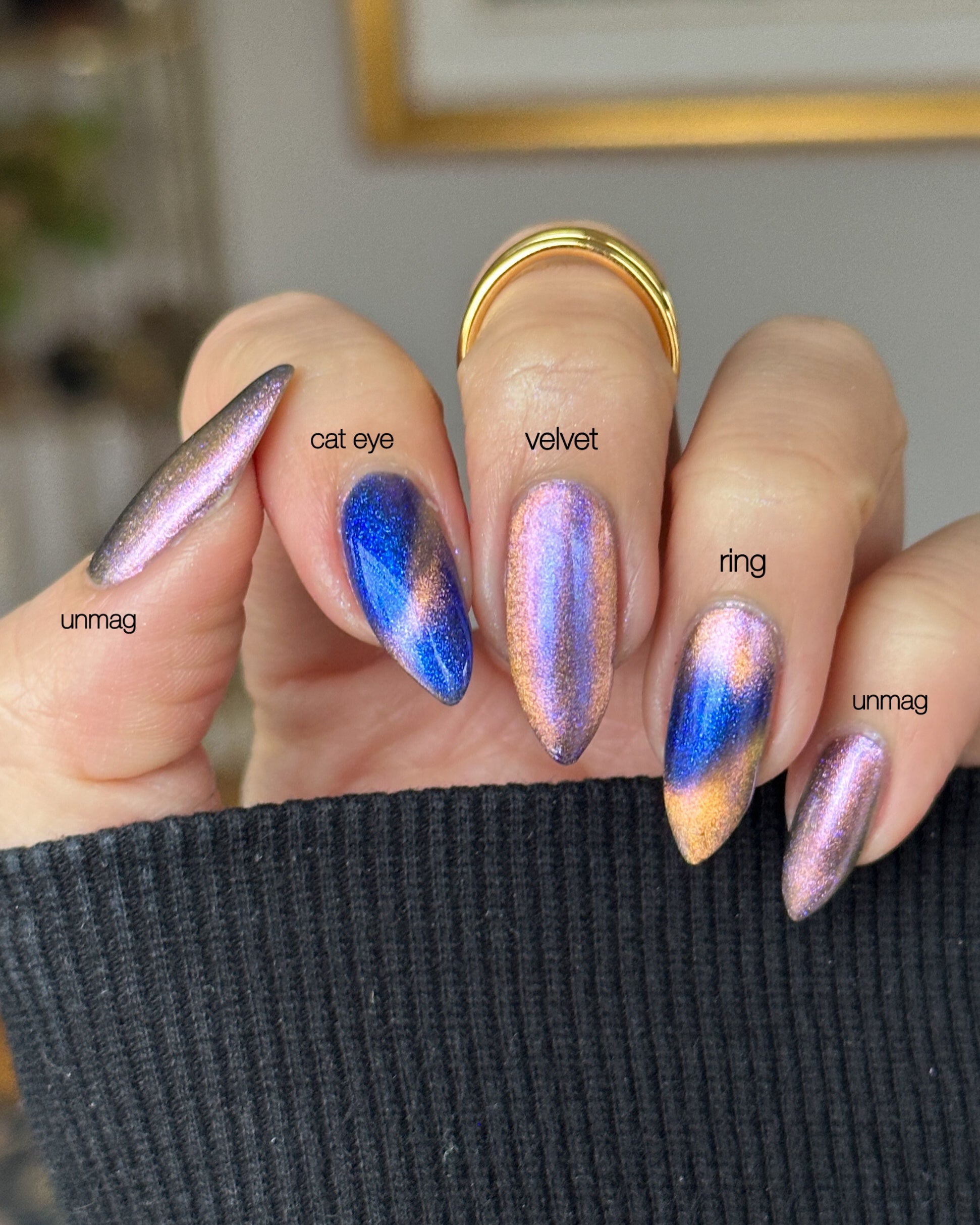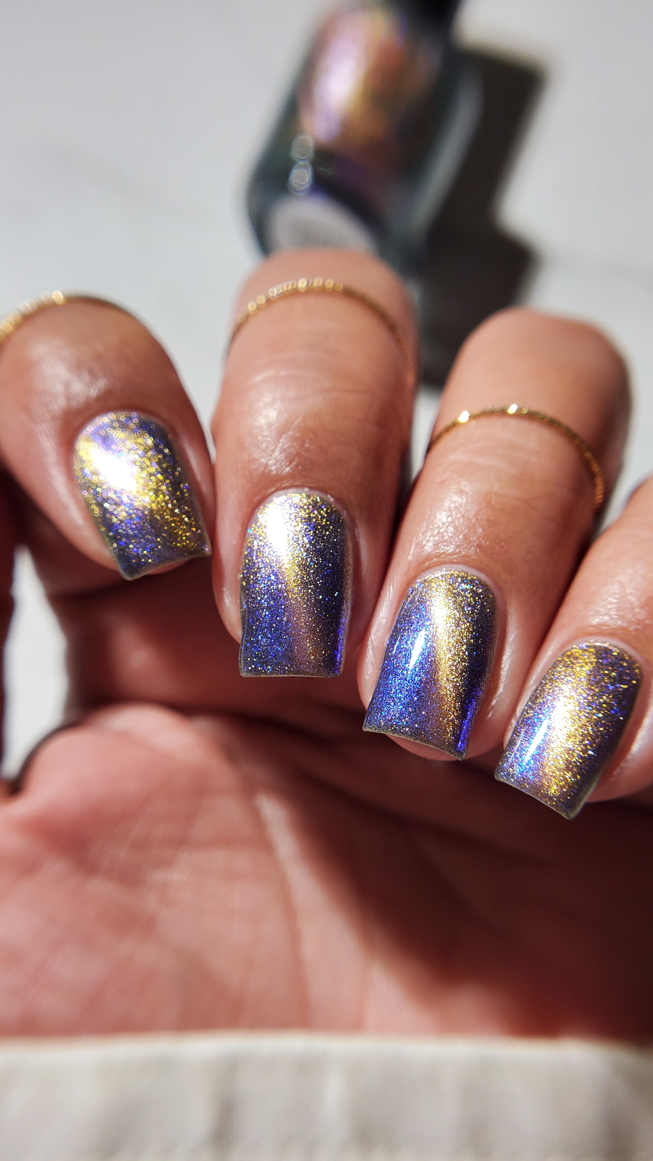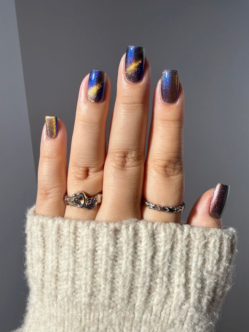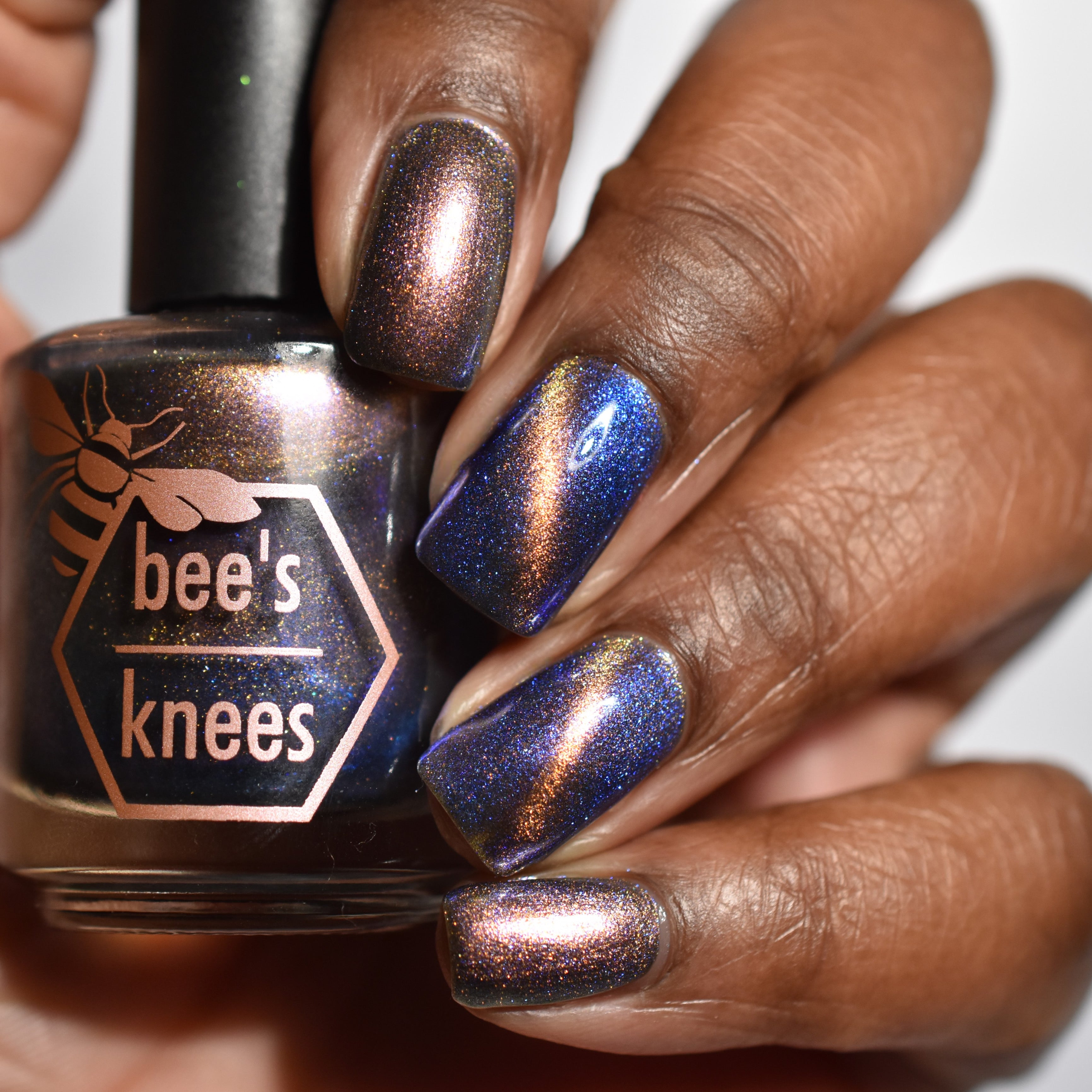 It Doesn't Know Any Better, But You Do - an indigo to purple pastel multichrome with a pale pink to peach magnetic multichrome shimmer