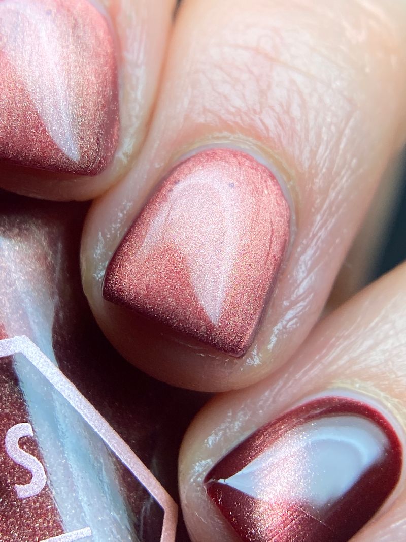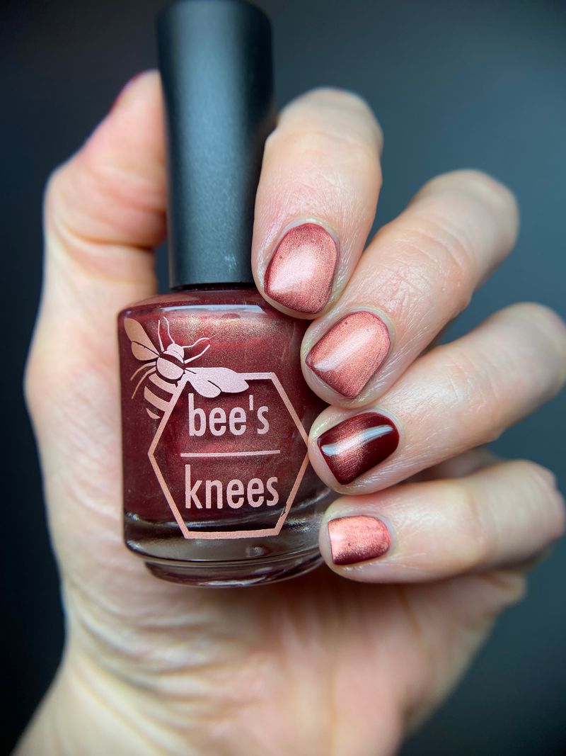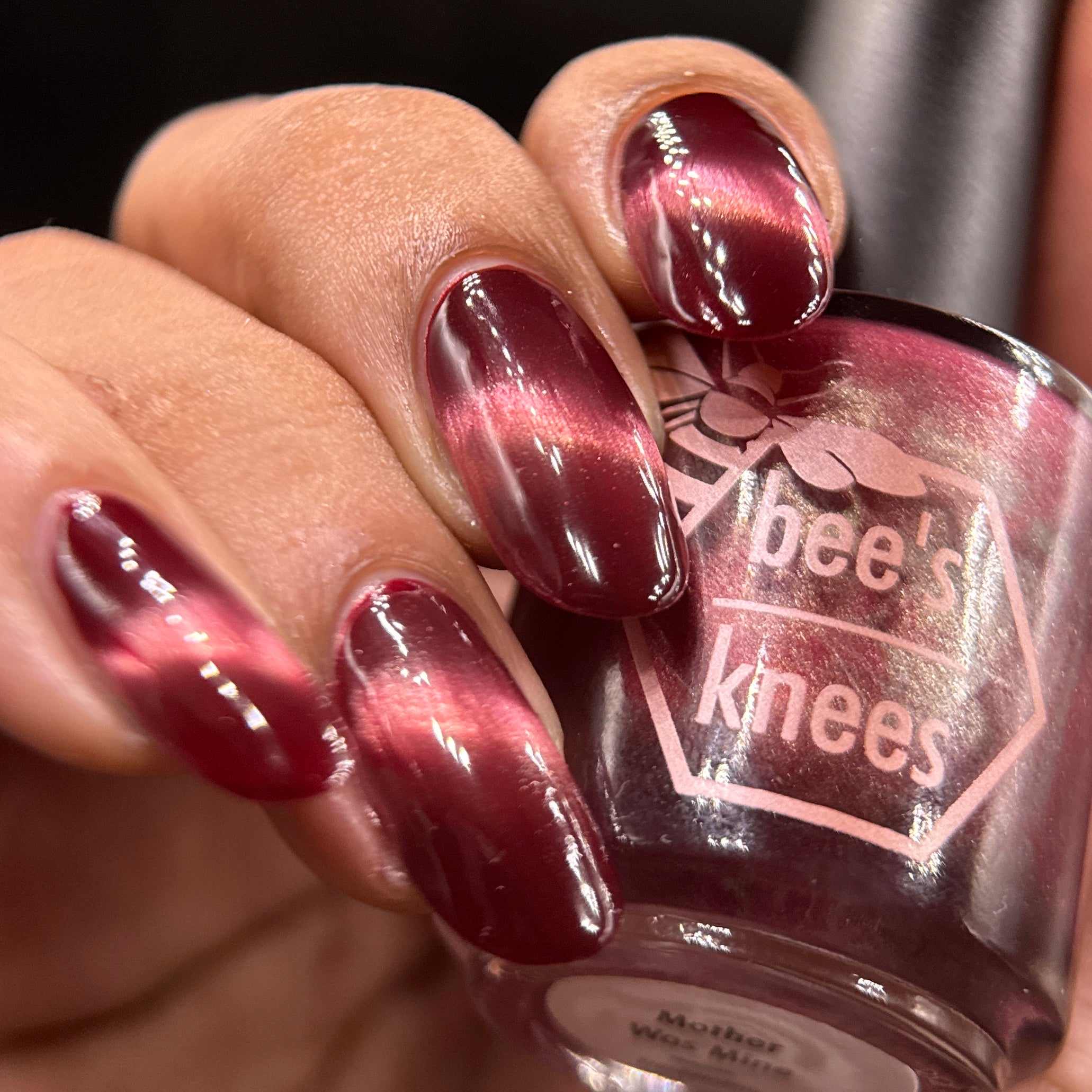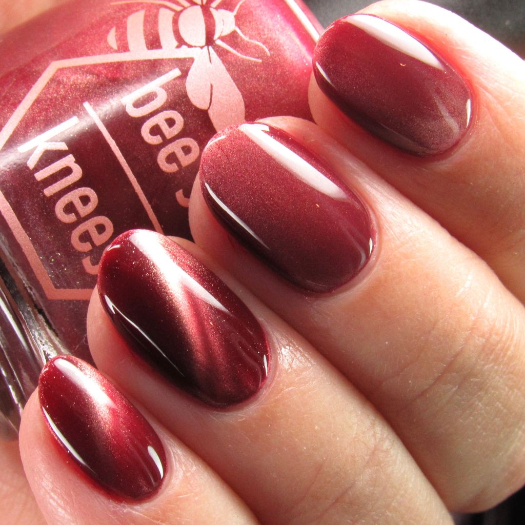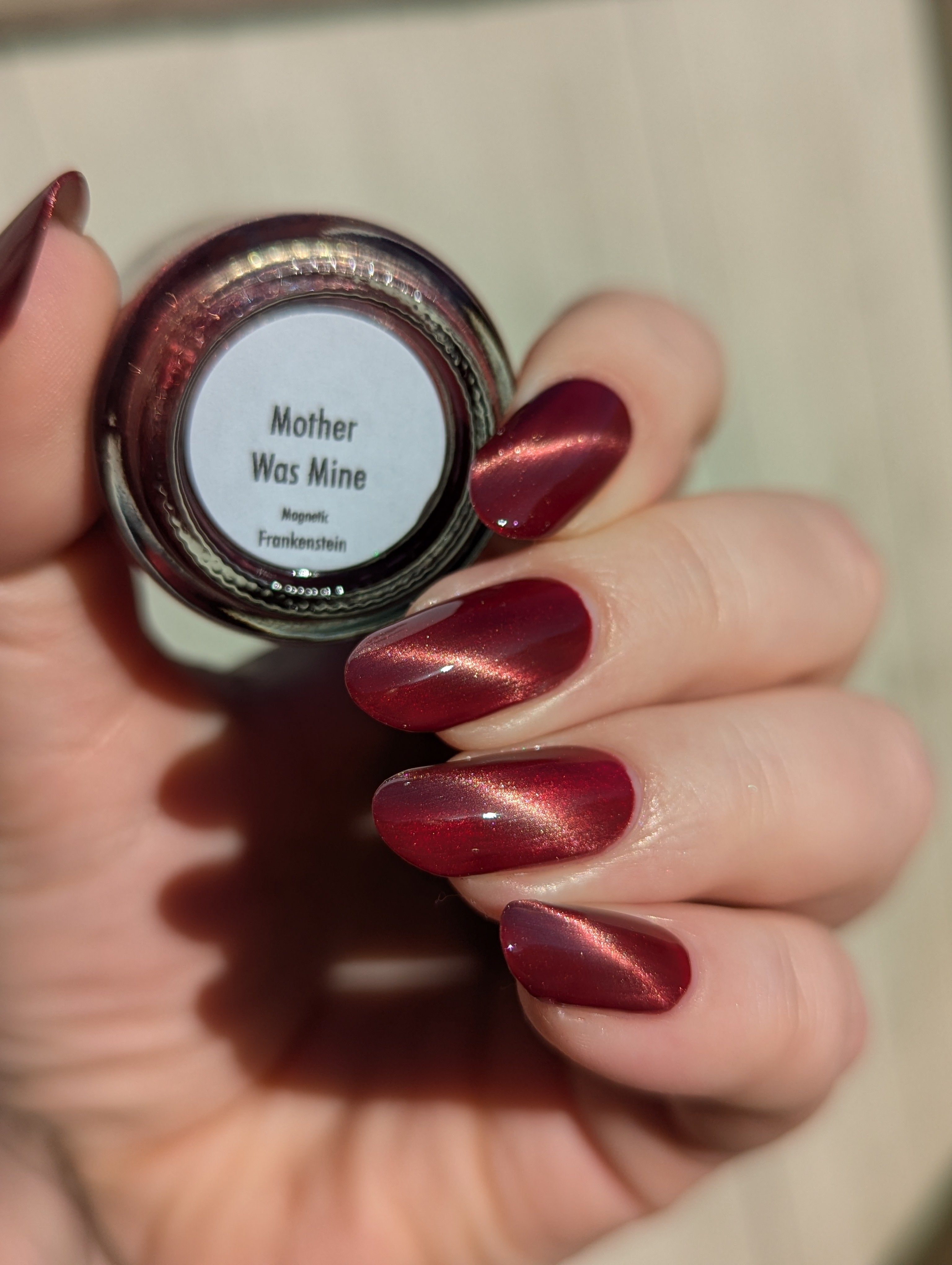 Mother was Mine - our true blood red Bog Dweller sibling with a silvery pink magnetic shimmer.