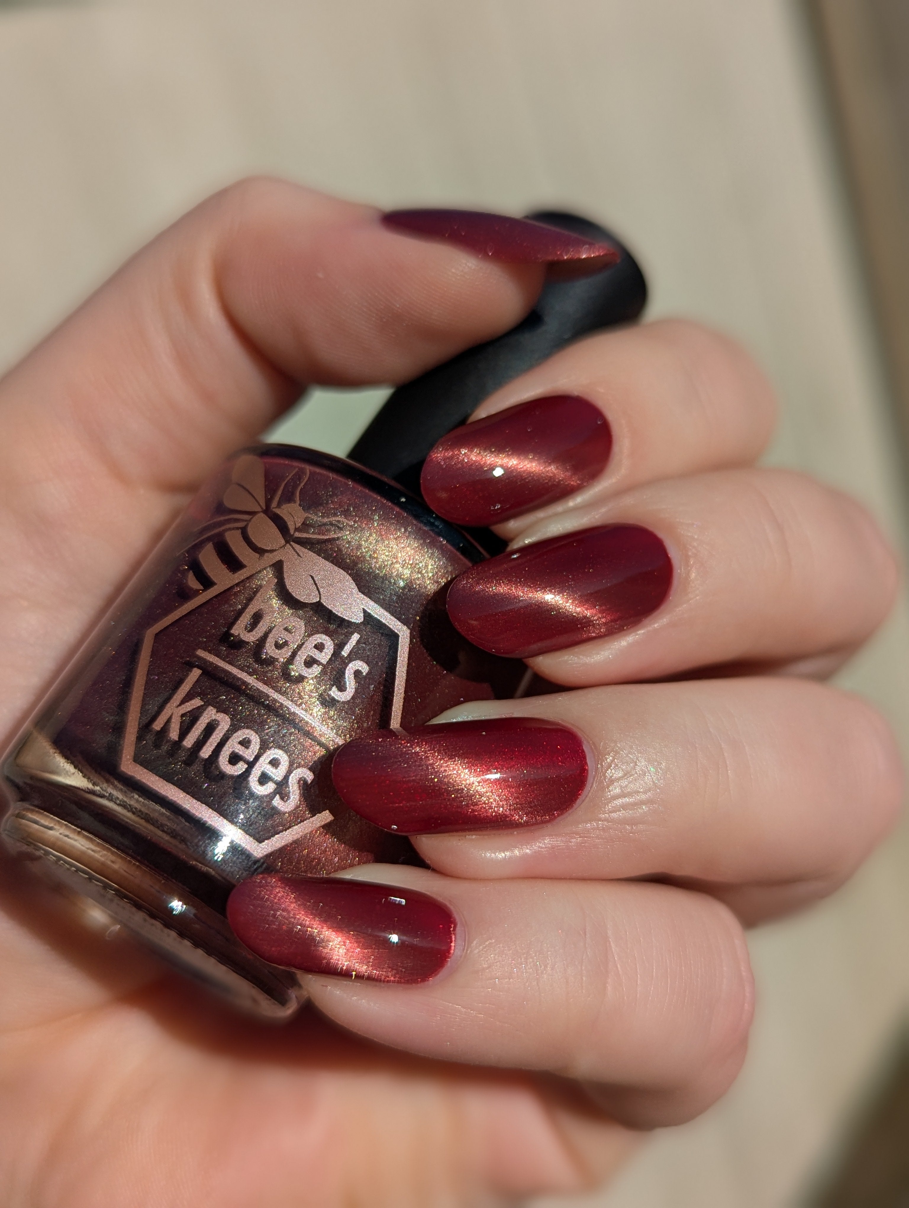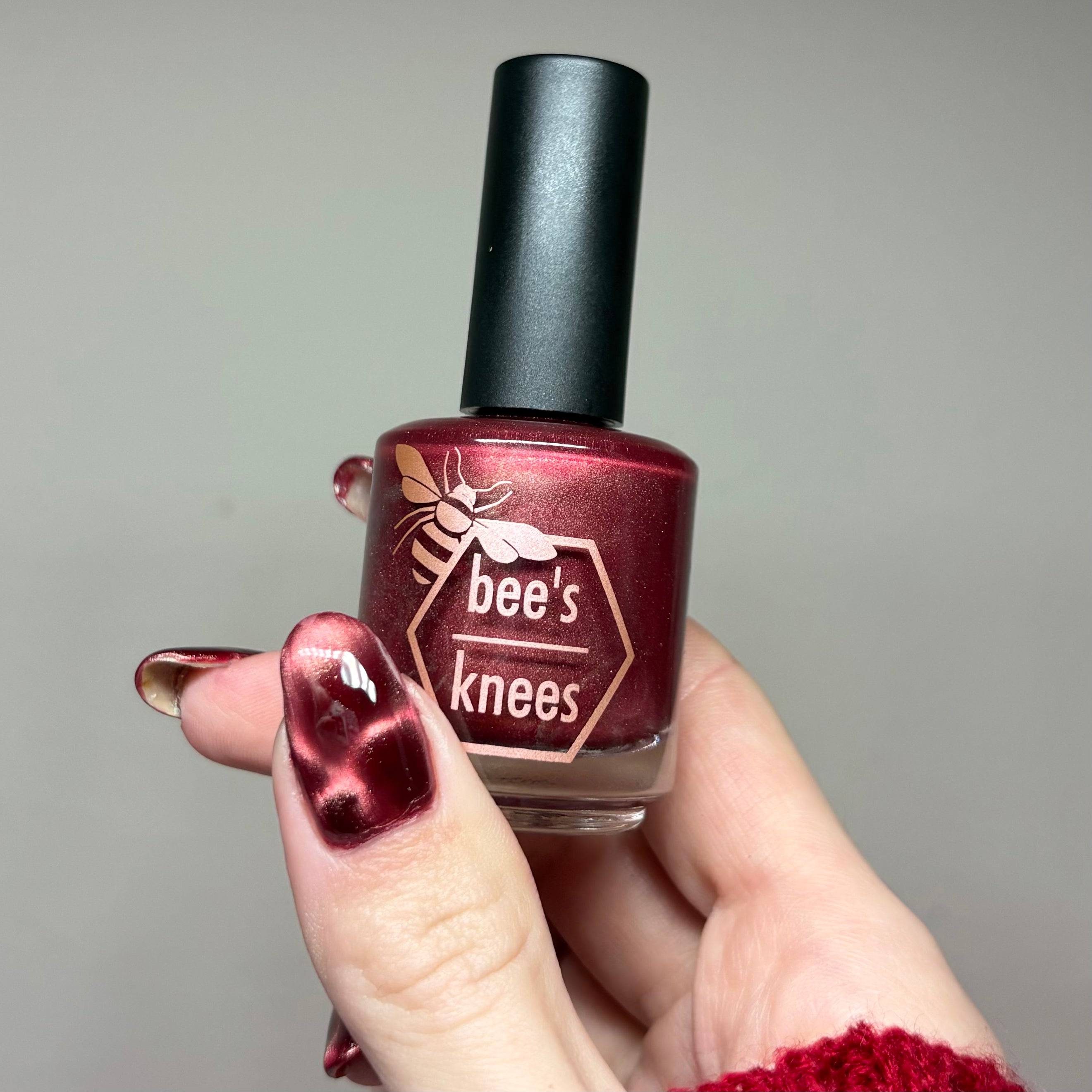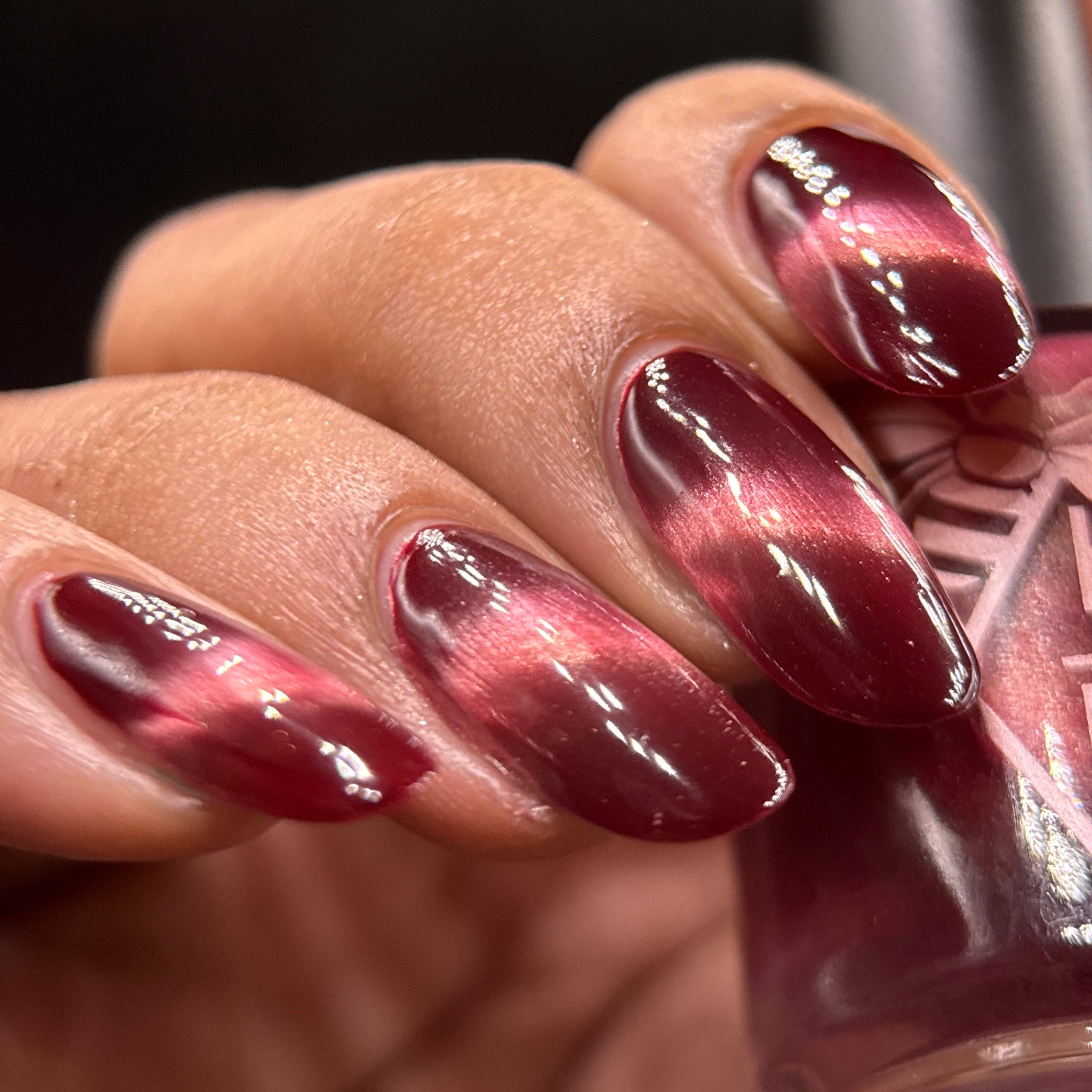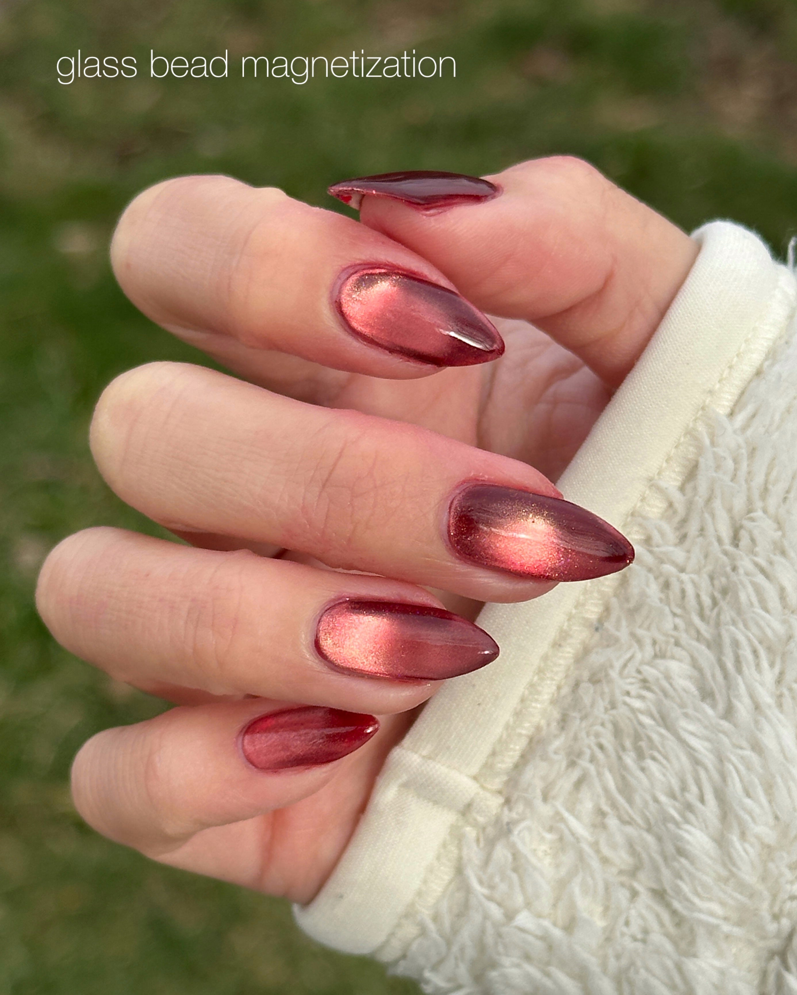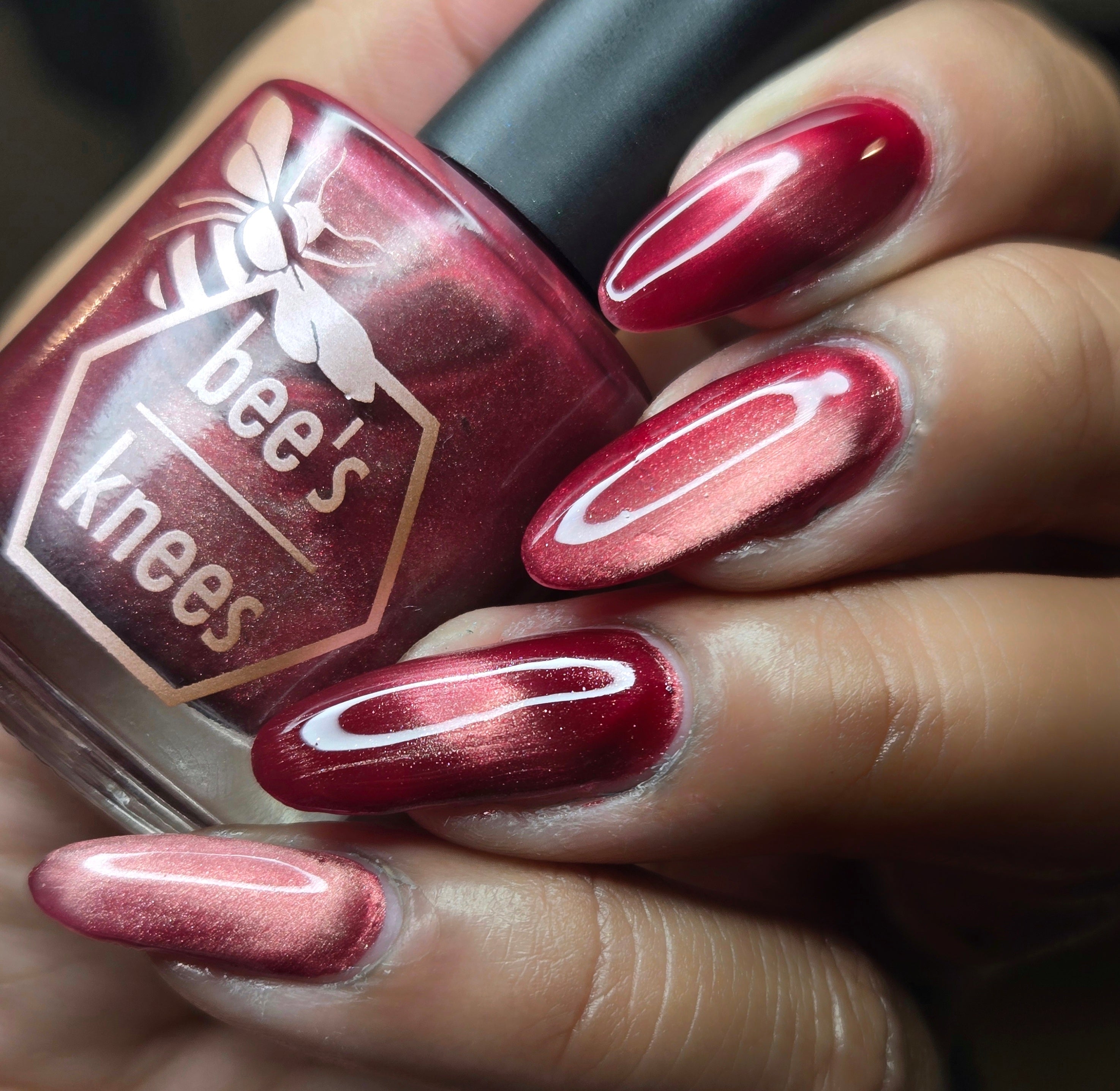 Mother was Mine - our true blood red Bog Dweller sibling with a silvery pink magnetic shimmer.