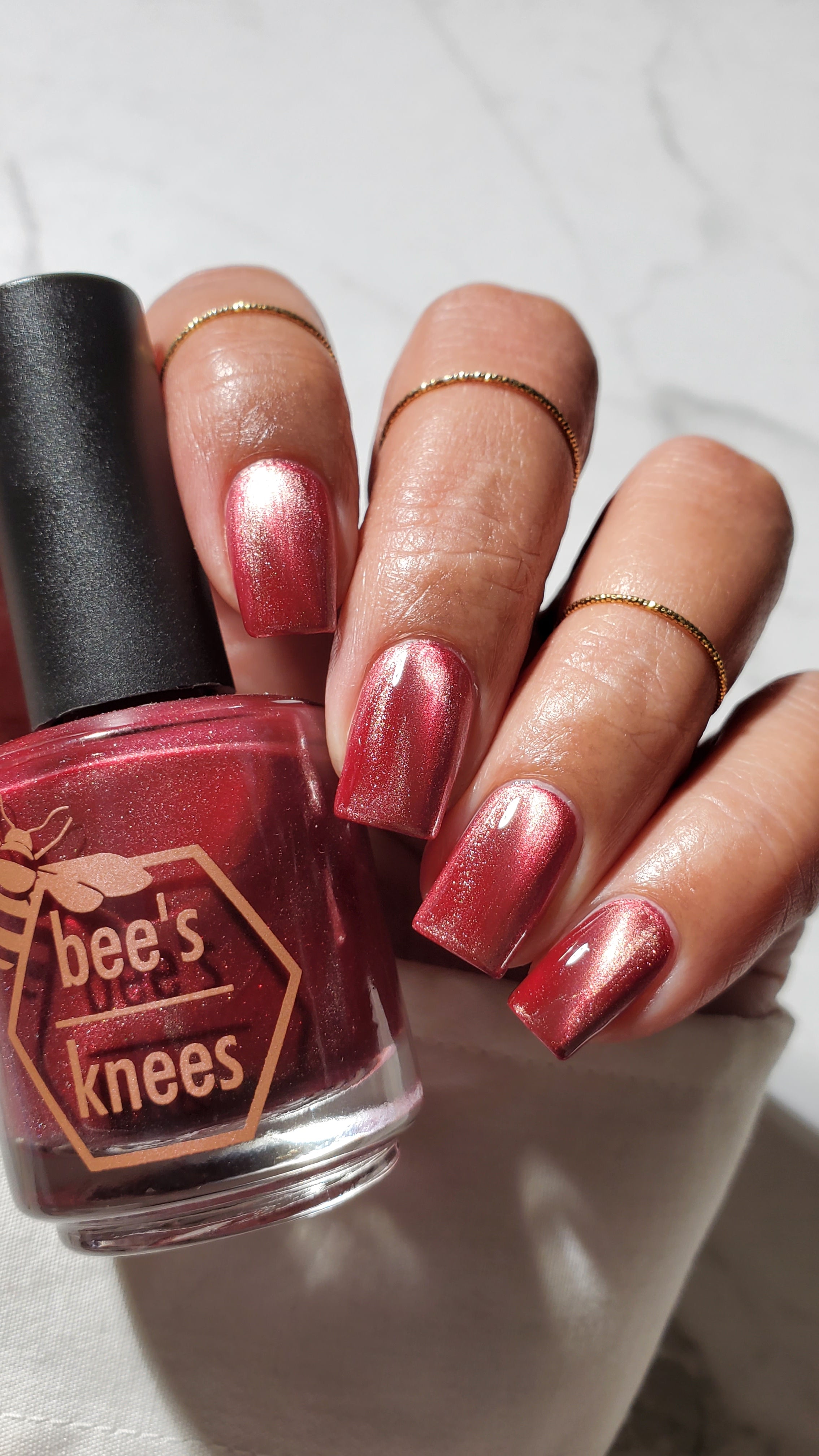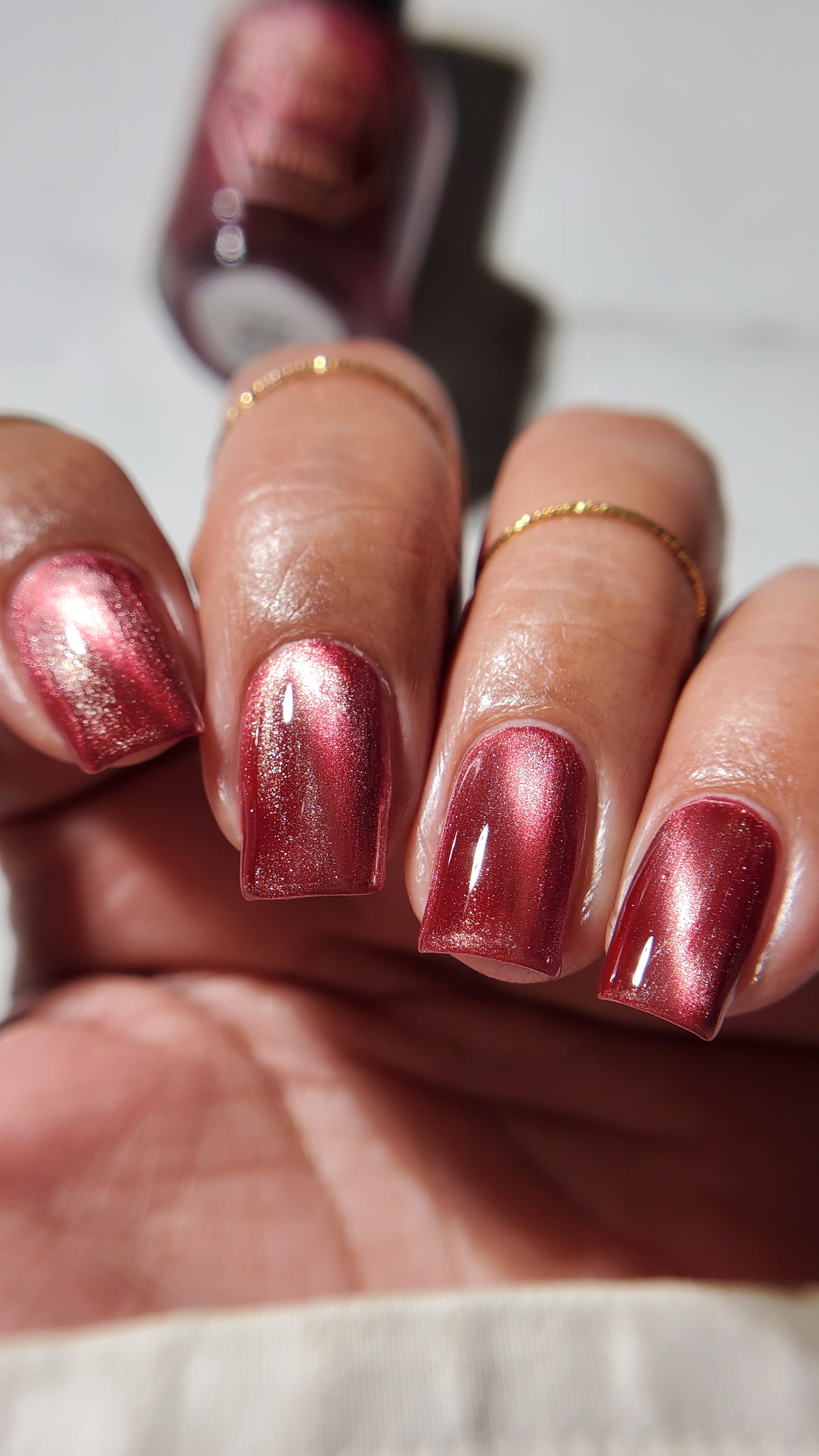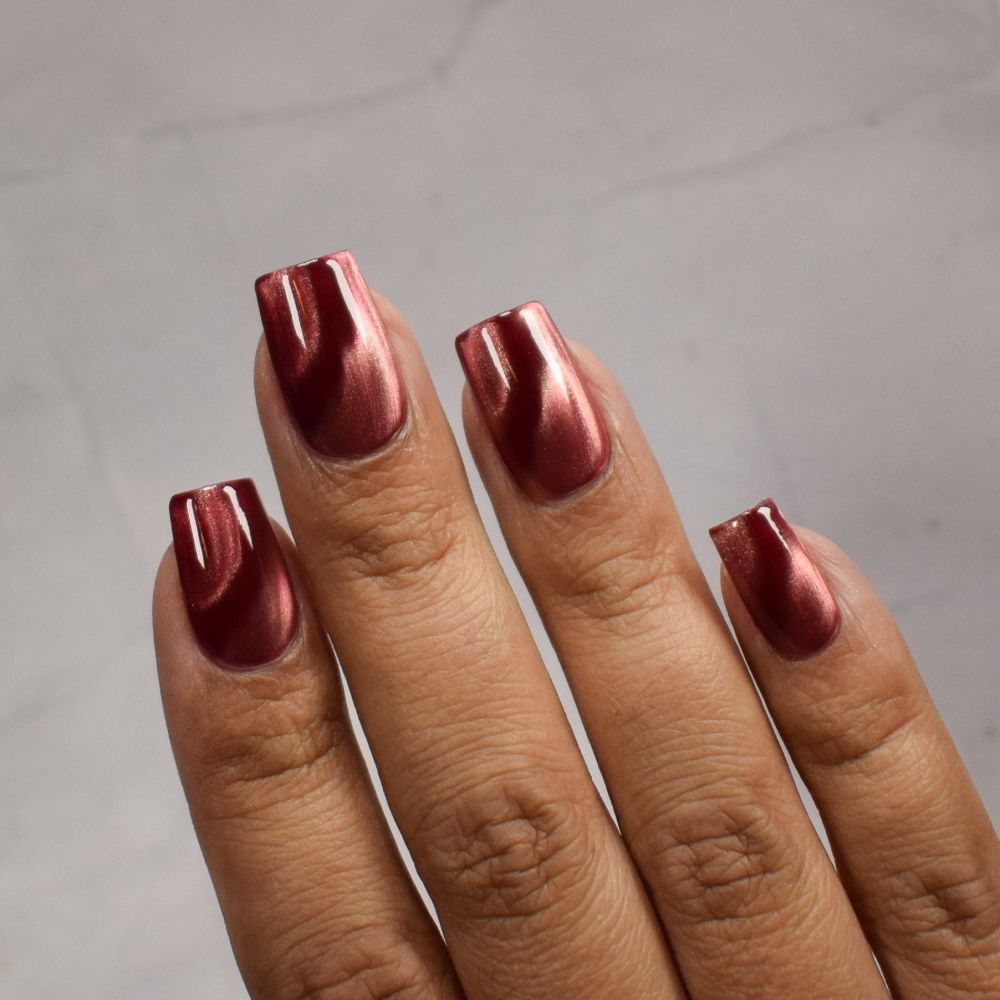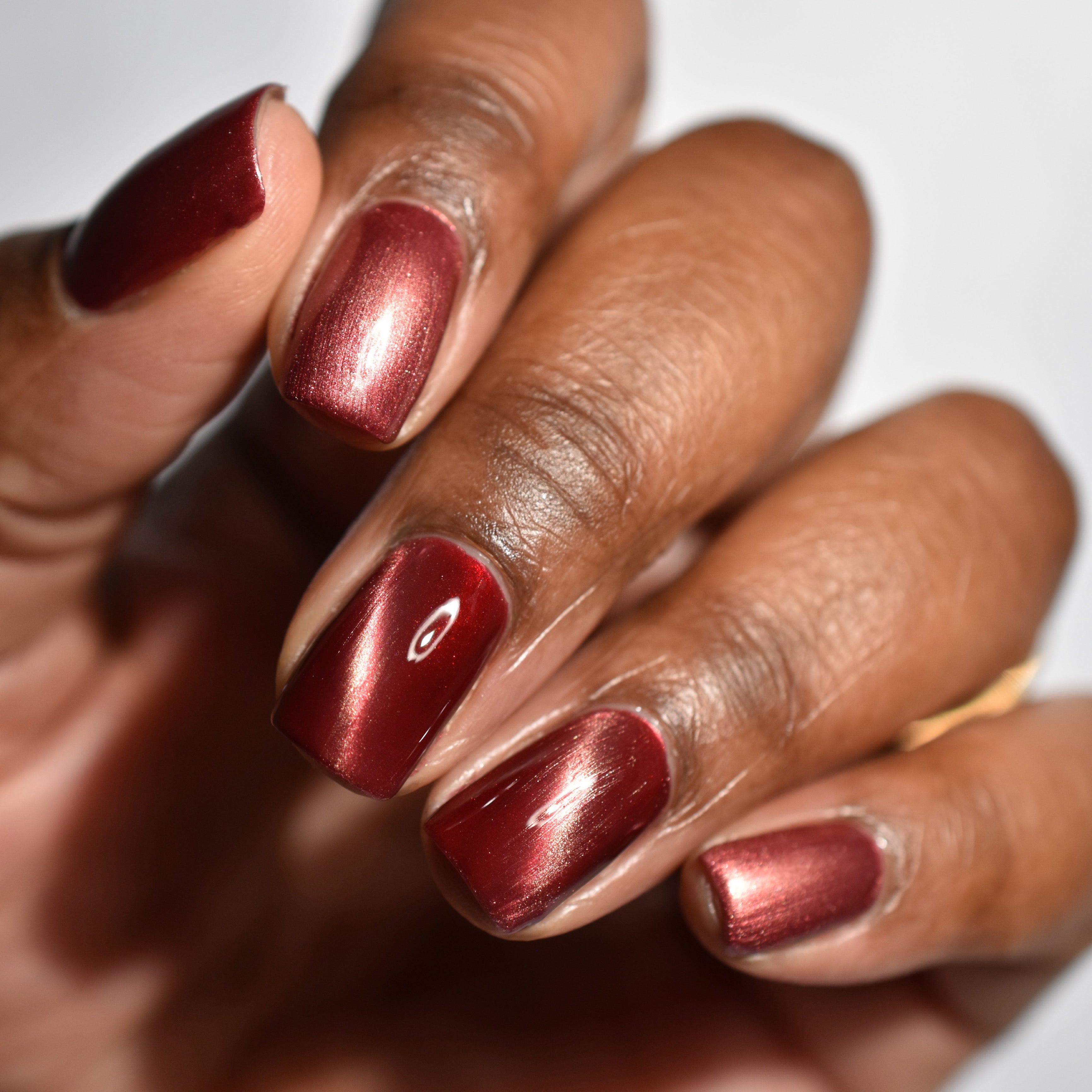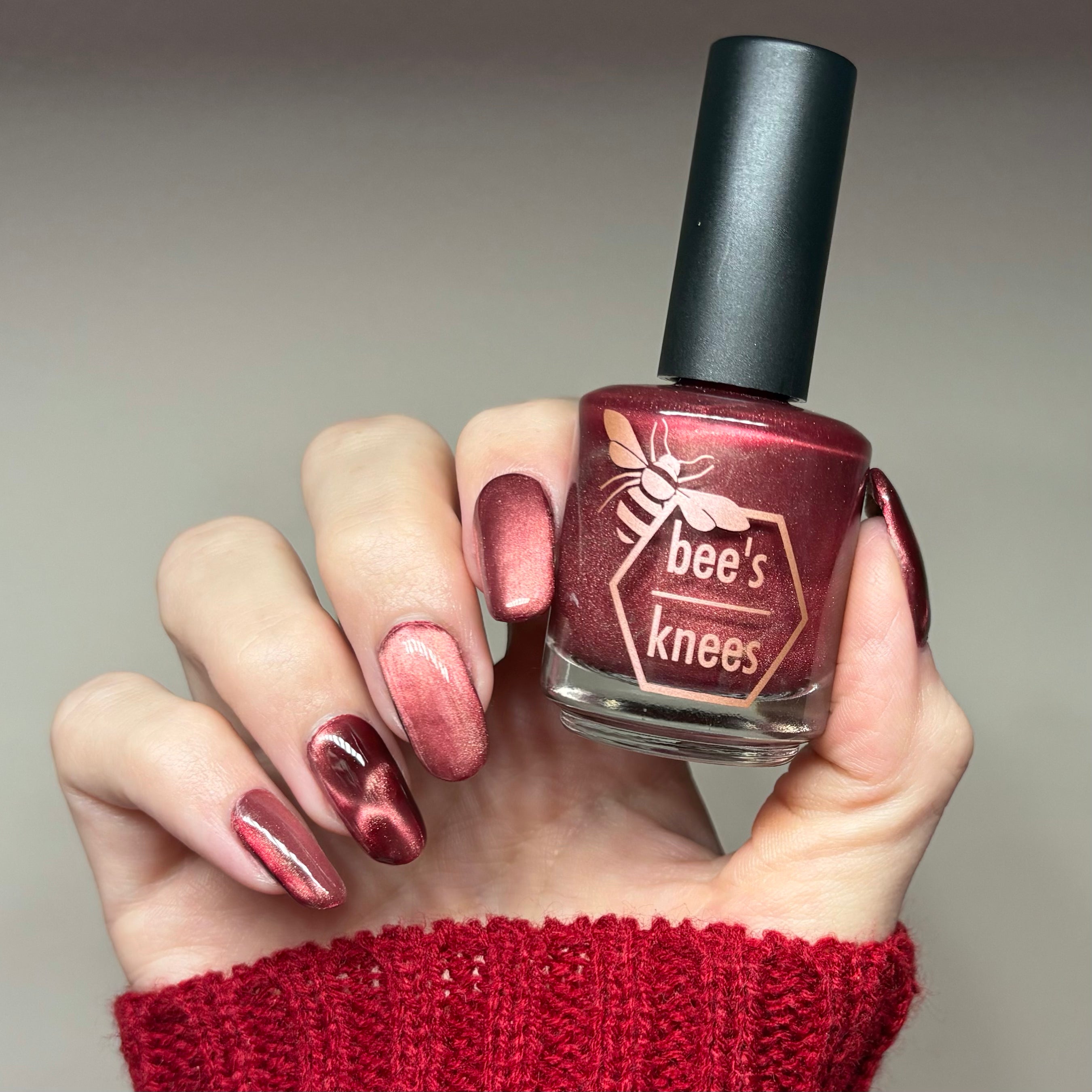 Mother was Mine - our true blood red Bog Dweller sibling with a silvery pink magnetic shimmer.