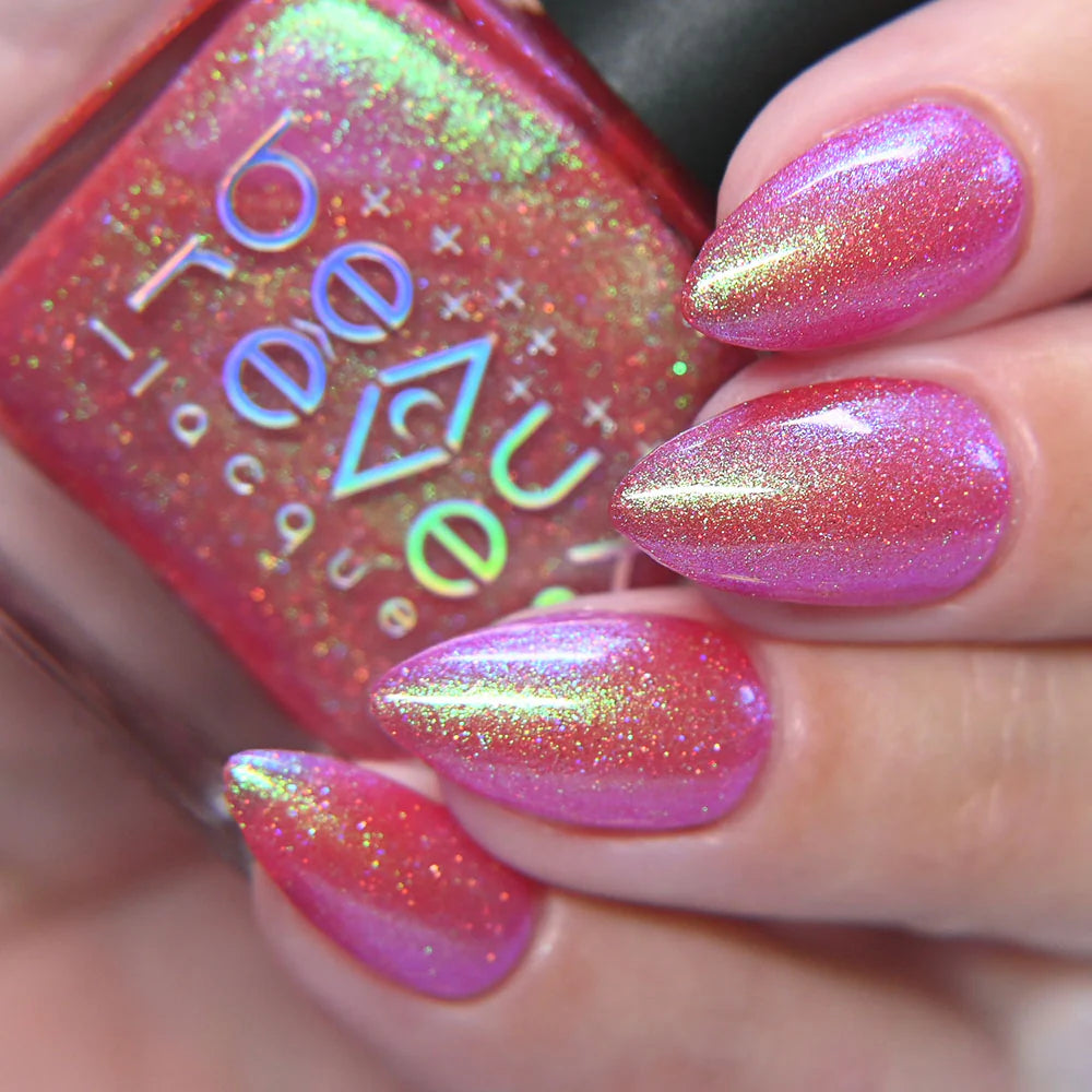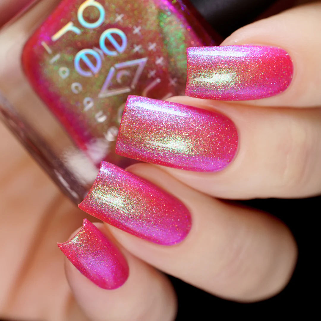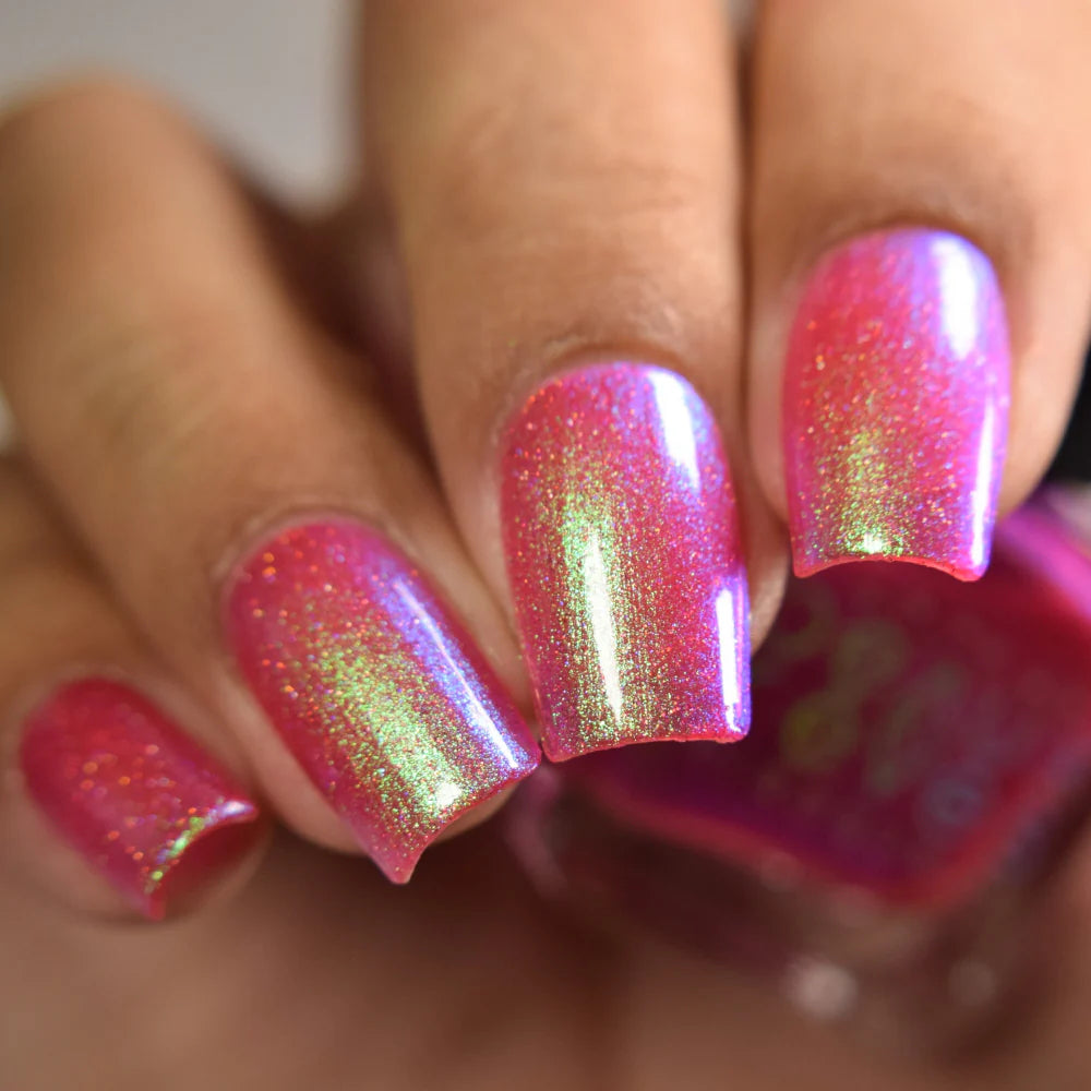 Stuck in Orbit - bright rosy pink with a violet-aqua-green shimmer and holo glitters