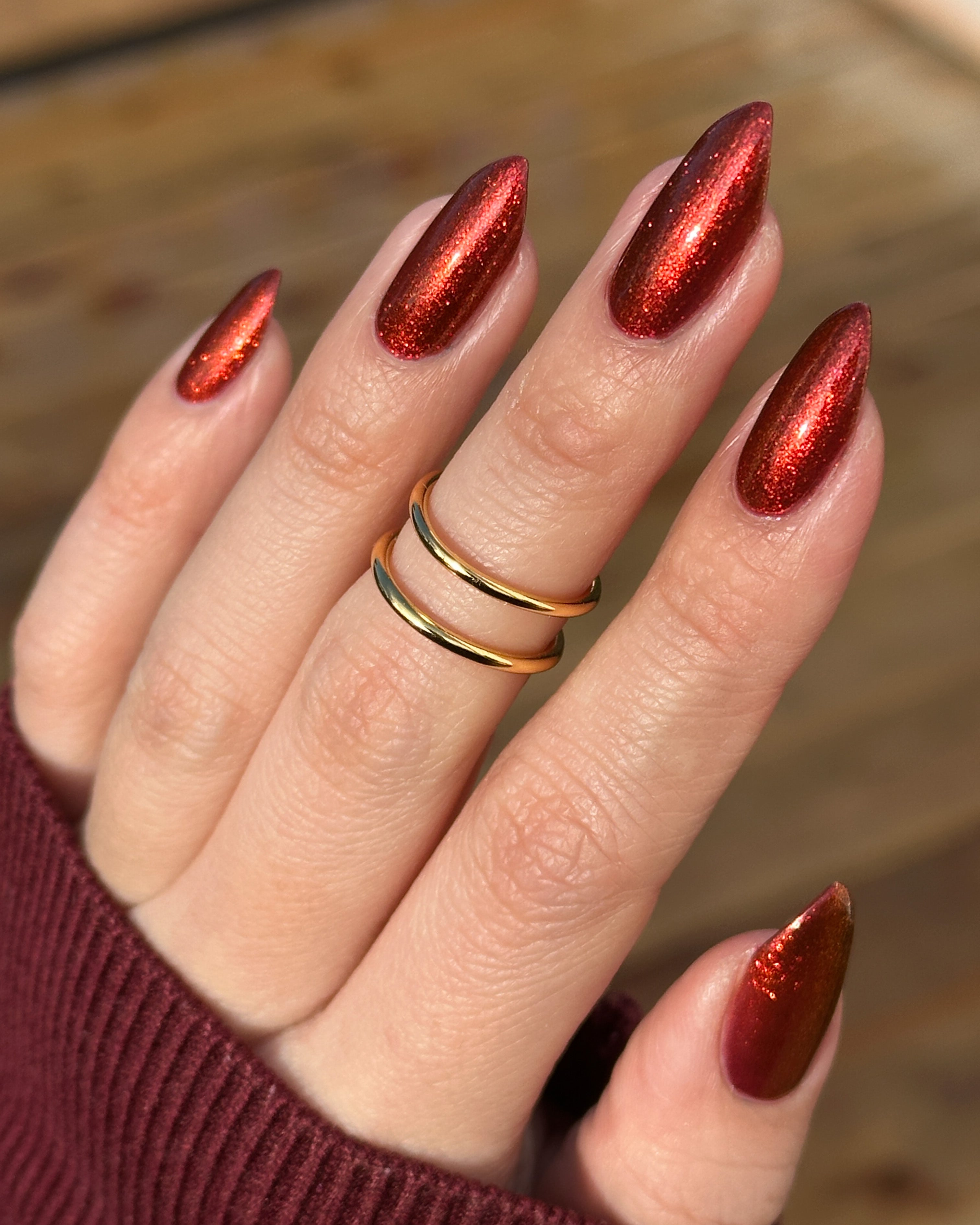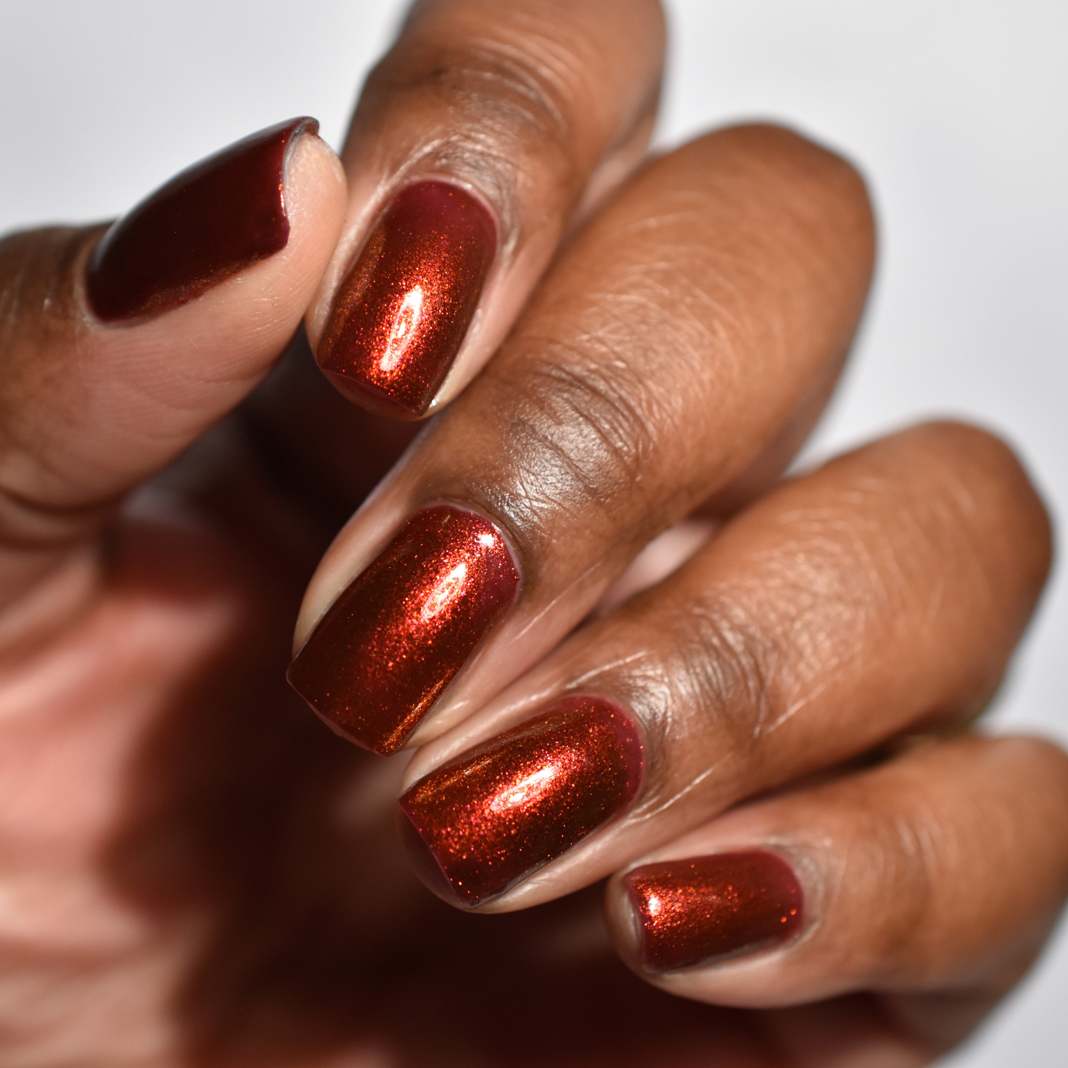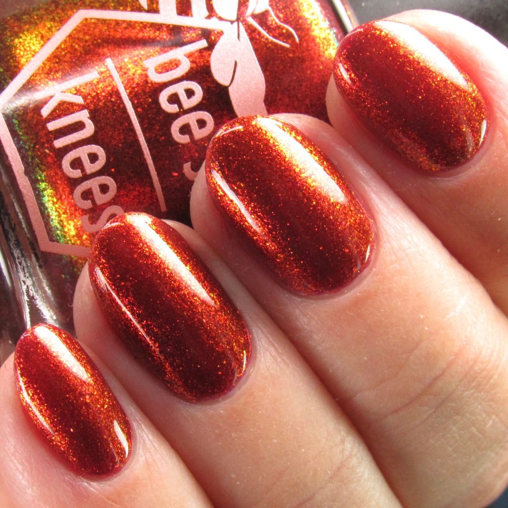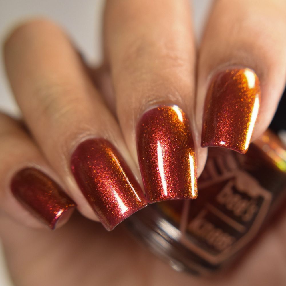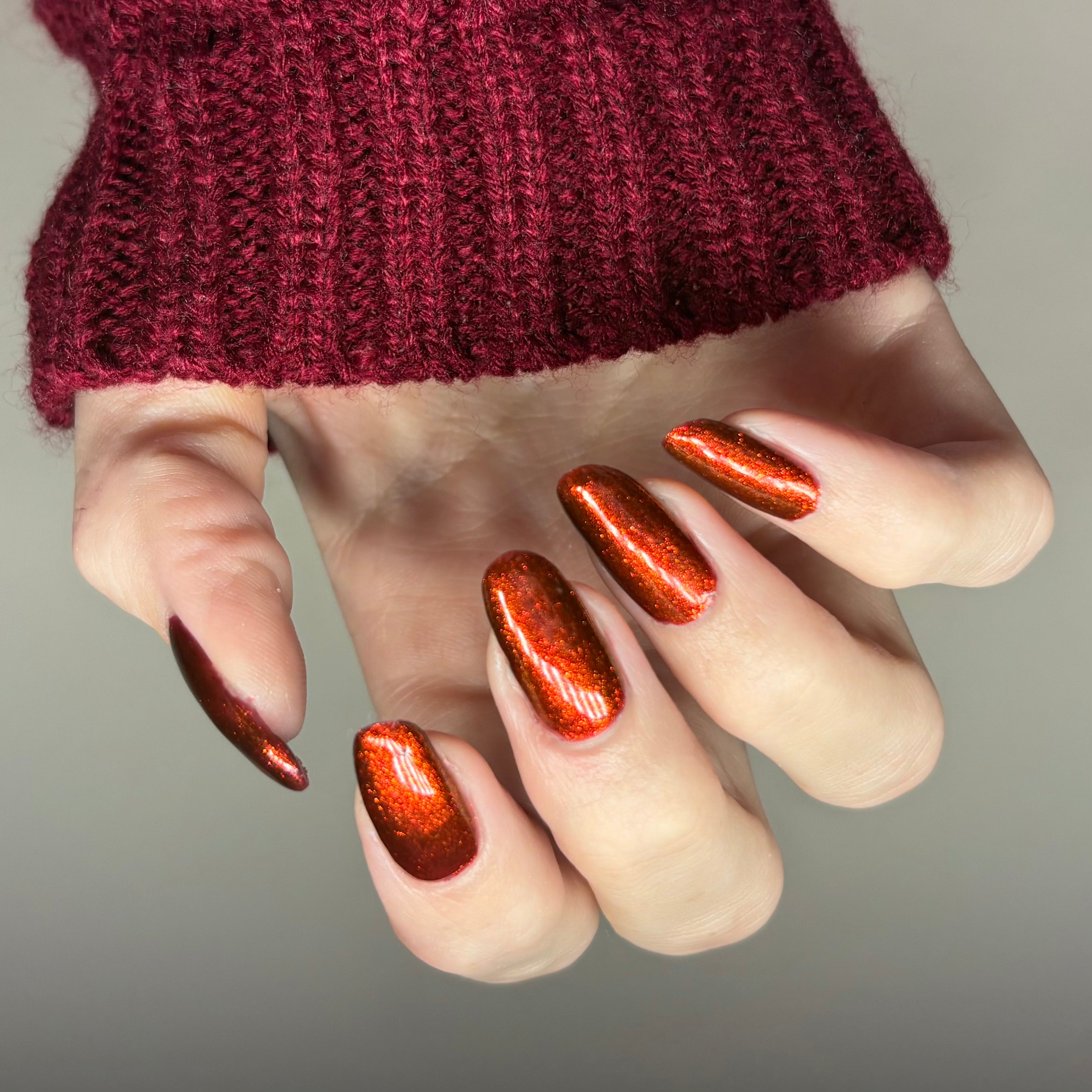 The Dark Angel  -an oxblood base with fiery red microflake shimmer.