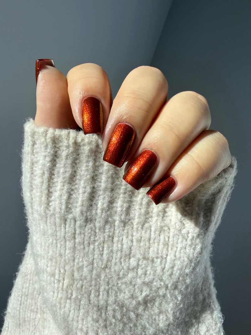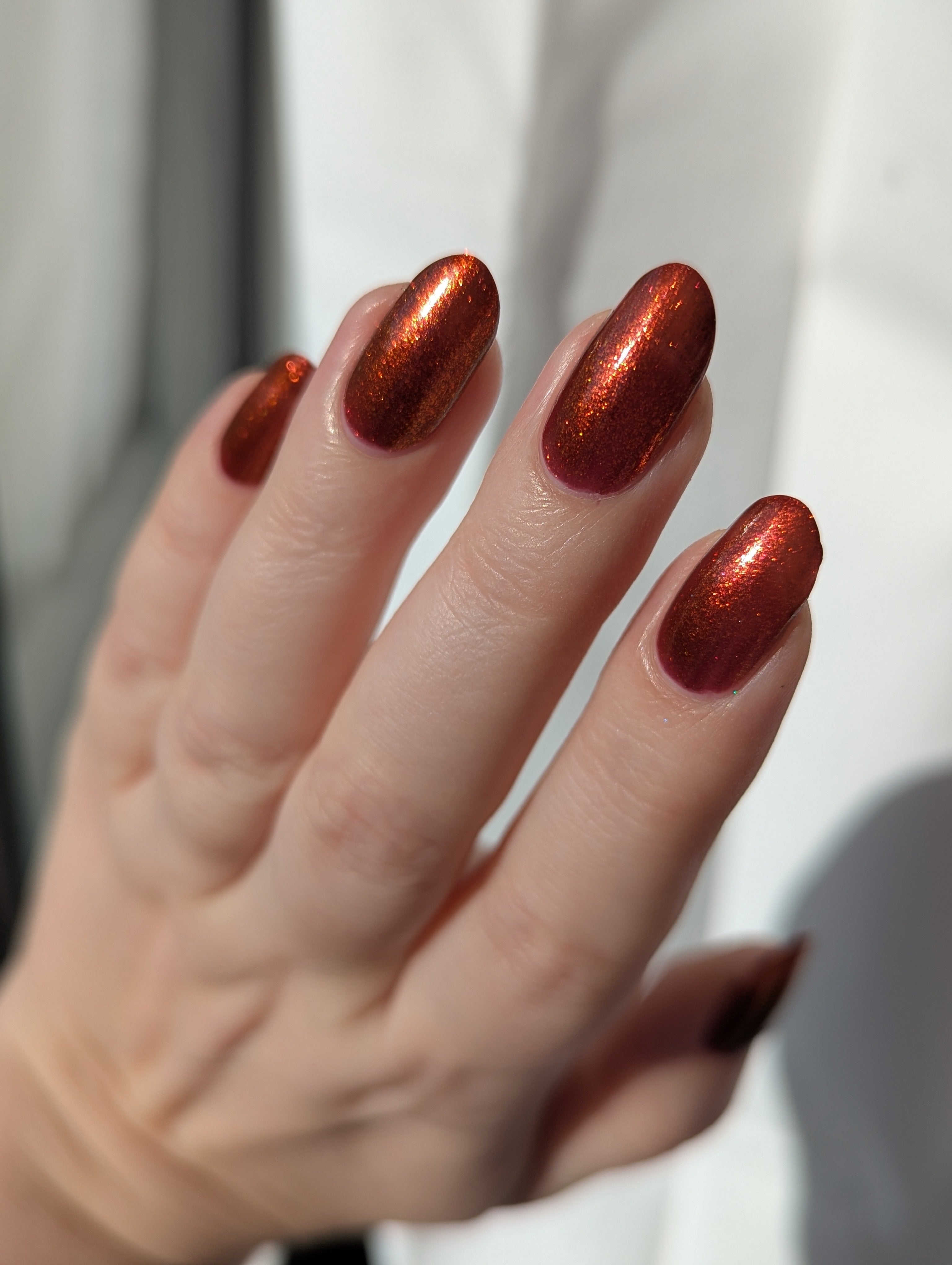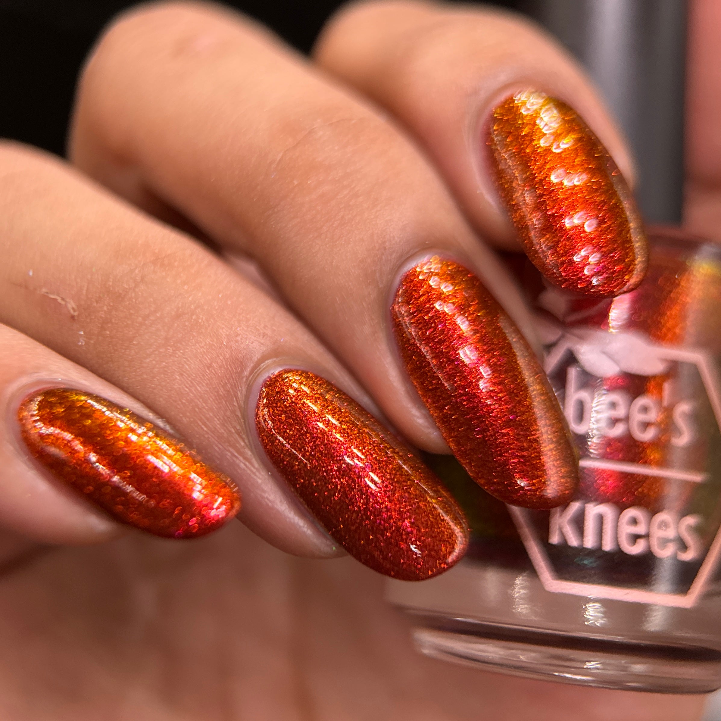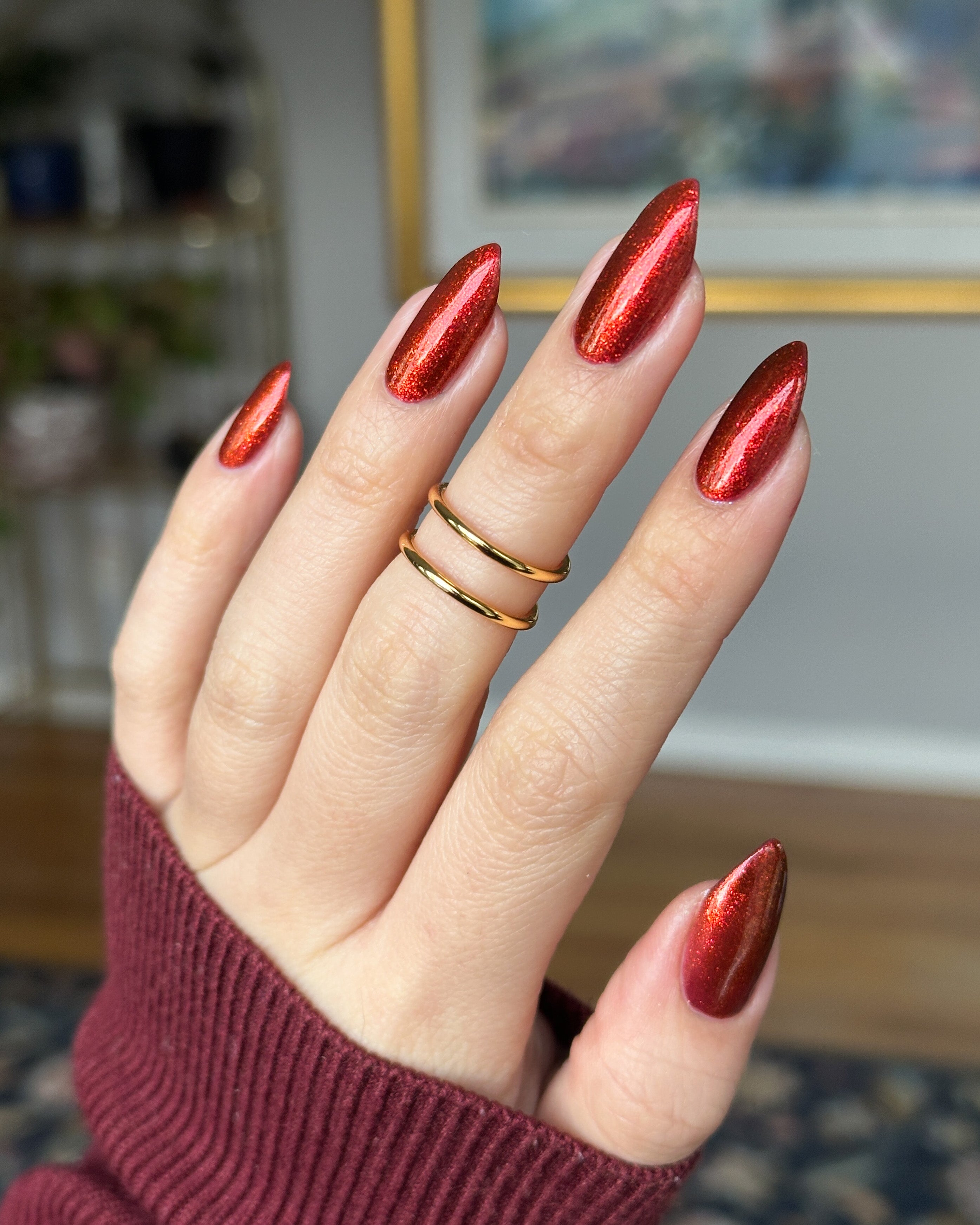 The Dark Angel  -an oxblood base with fiery red microflake shimmer.