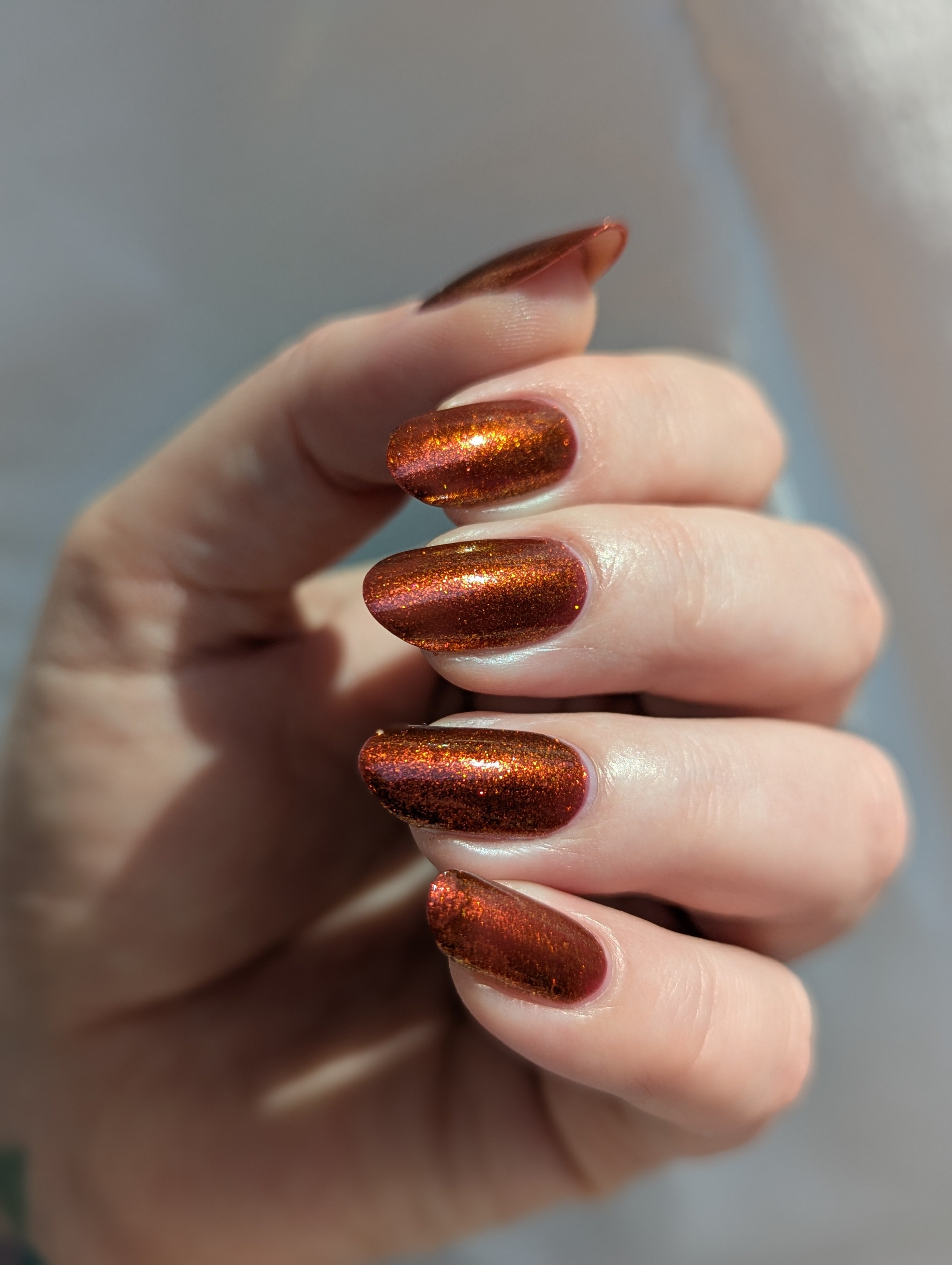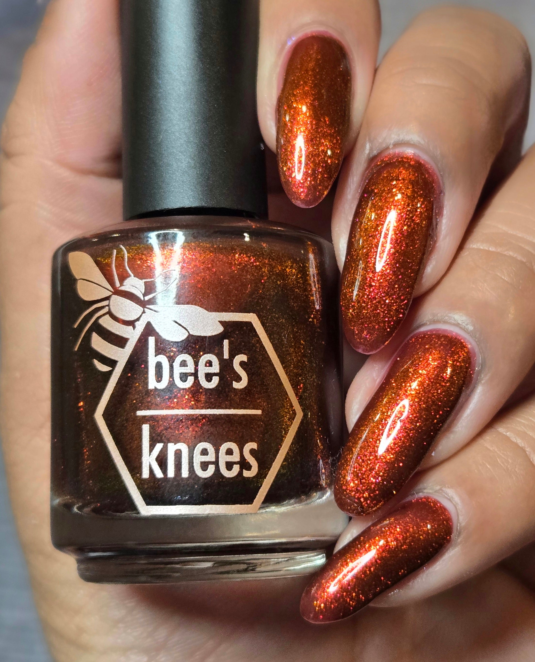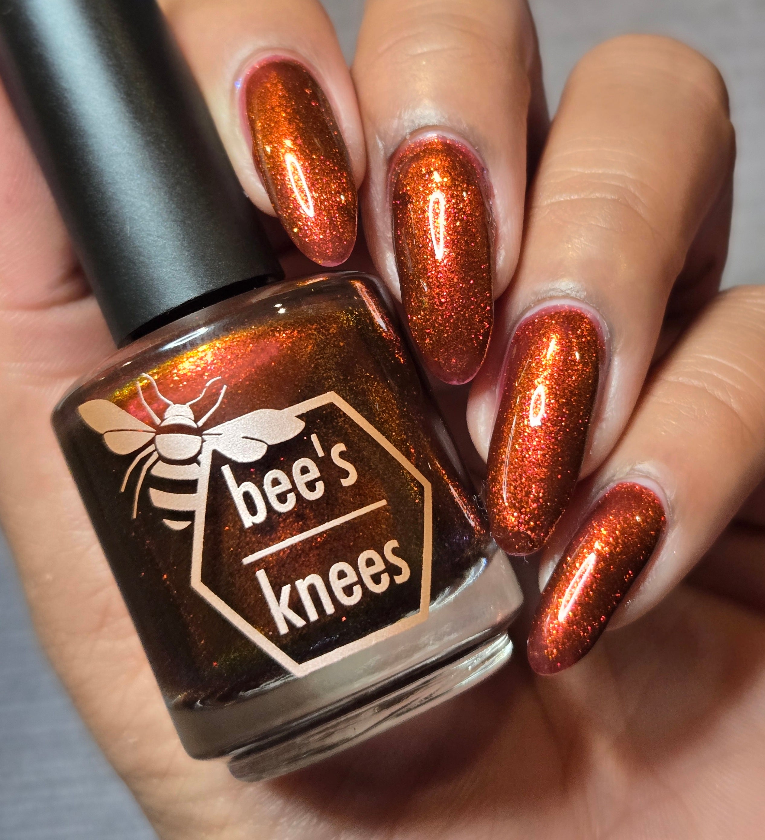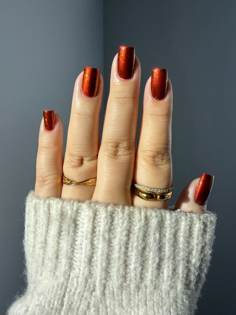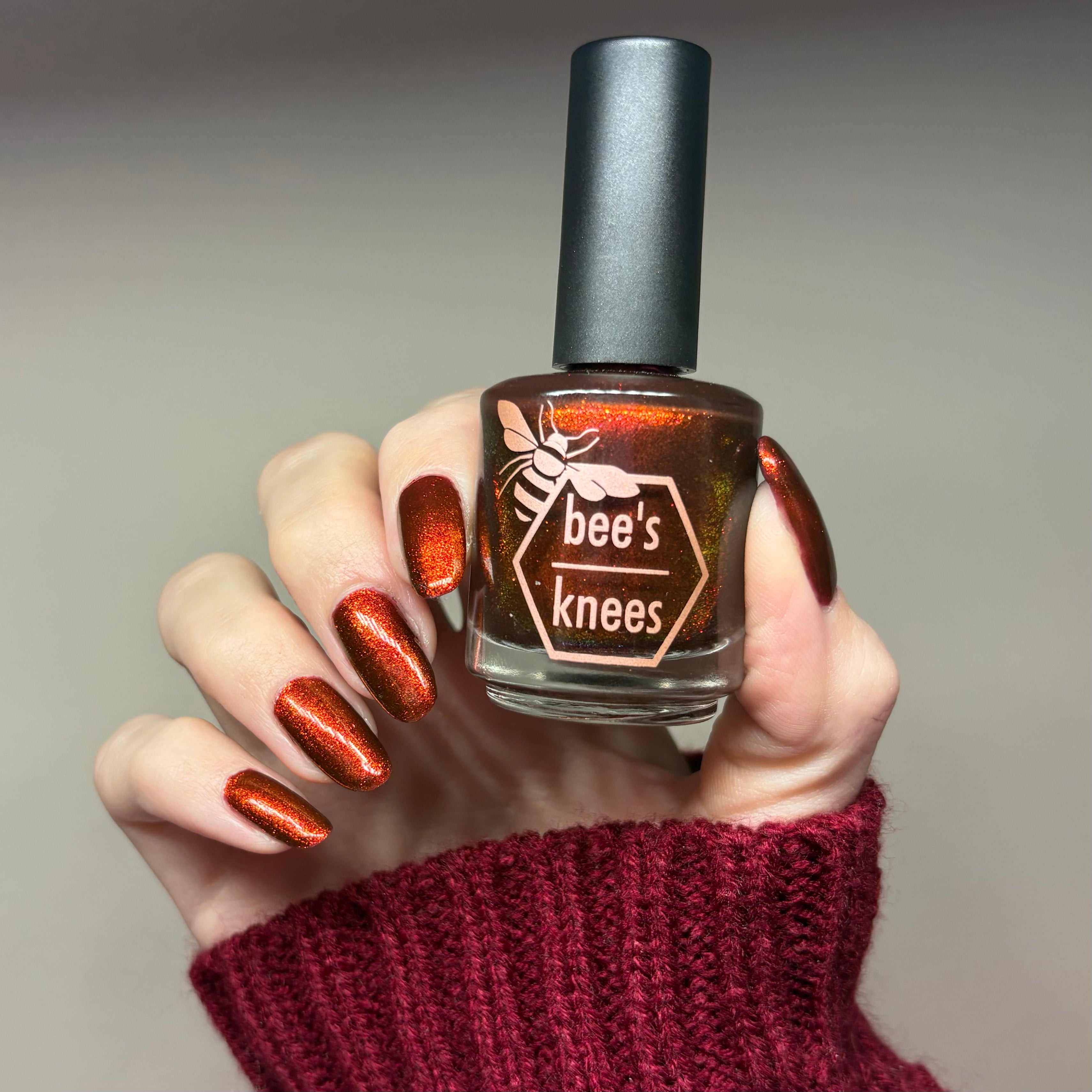 The Dark Angel  -an oxblood base with fiery red microflake shimmer.