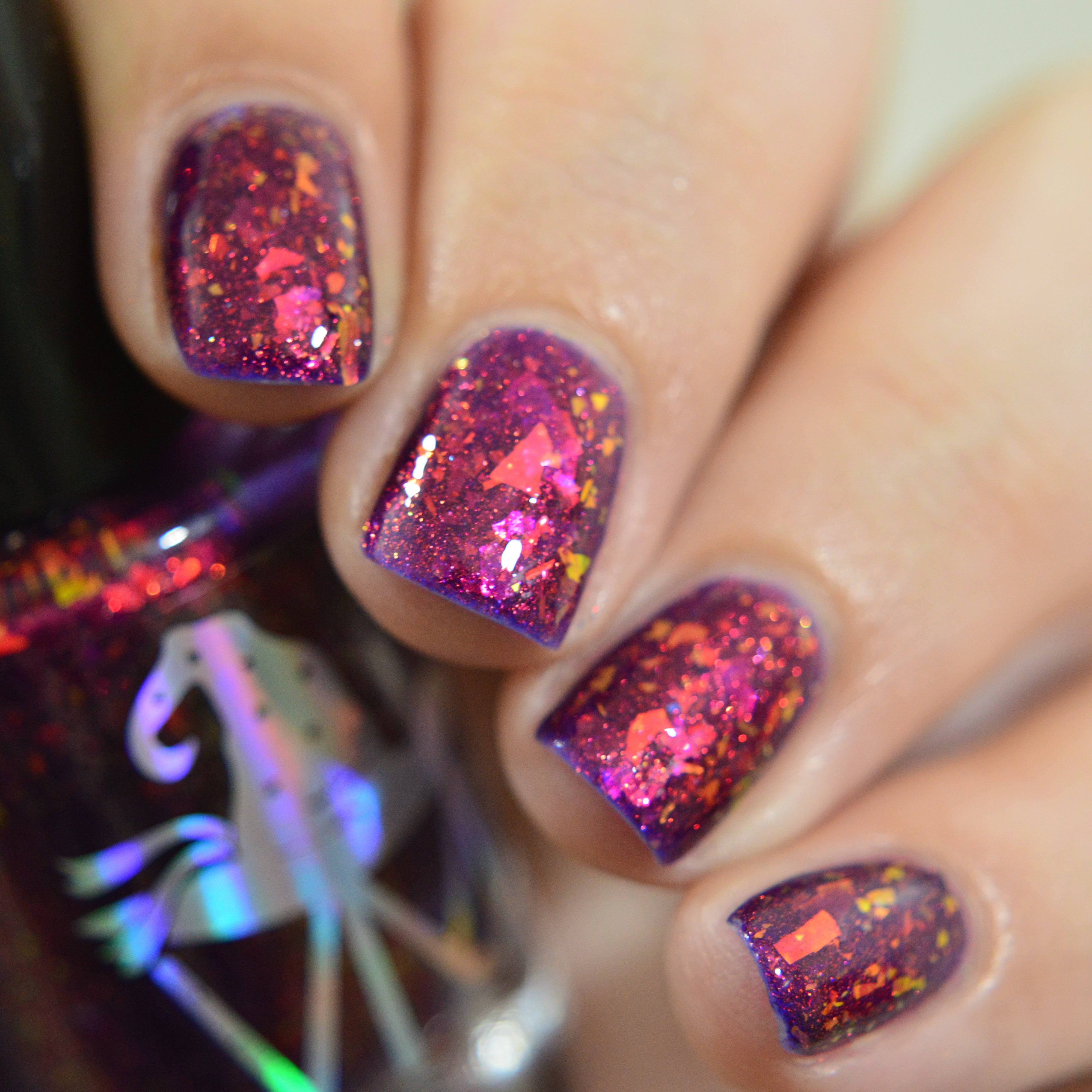 This Halloween polish is one that you will wear year round. A black jelly sparkles with glitters in grape, berry and orange for a polish even a witch would...