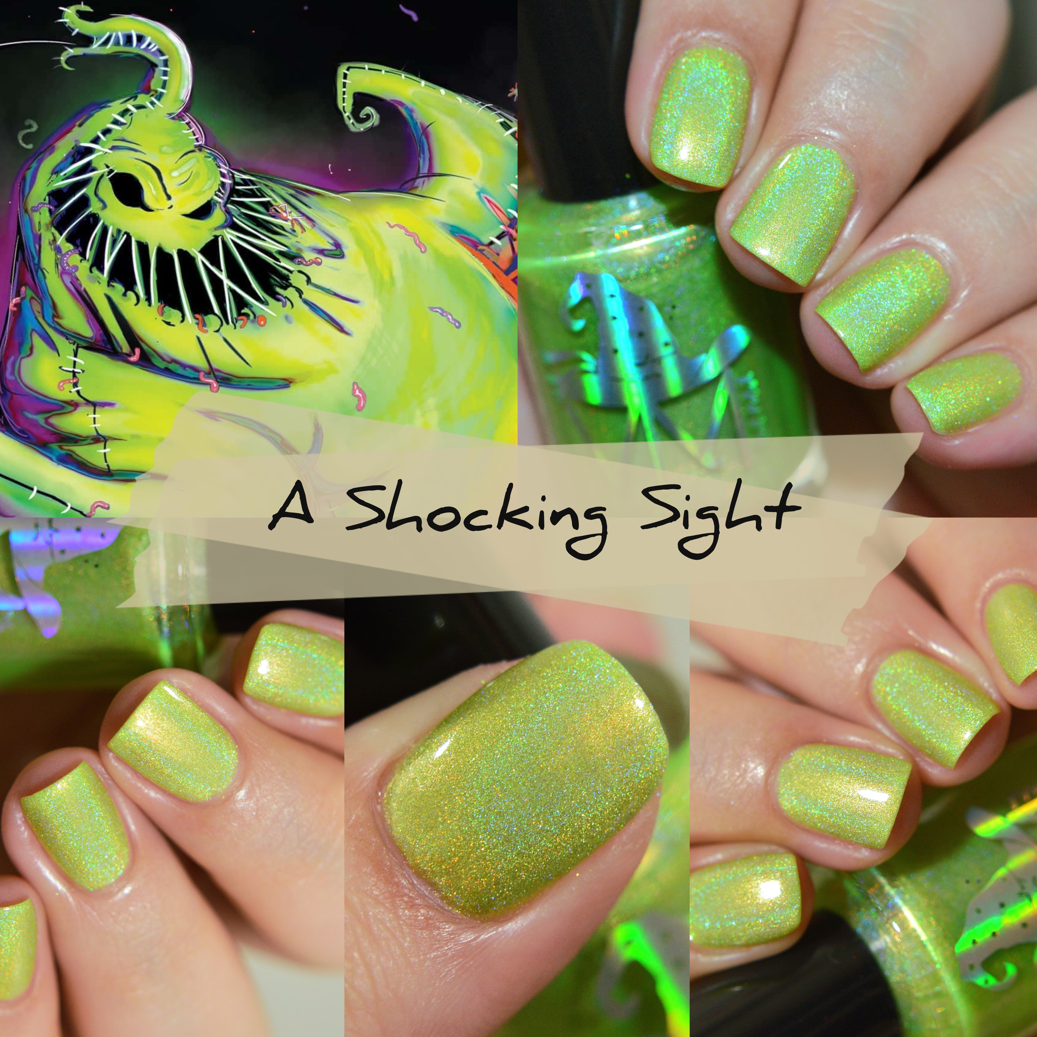 A Love Before Christmas: violet base with magenta/orange flakes with Matte drying. Wear it glossy with your favourite top coat Part of CineSpook Collection