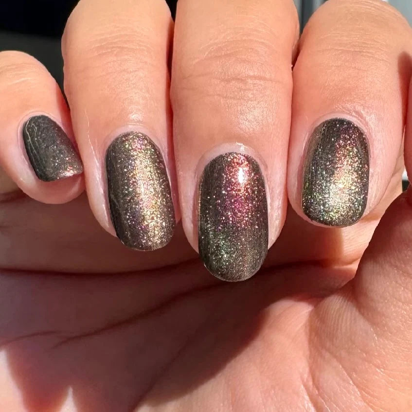 Designed magnetic polish lovers, this formula reacts to a magnet, allowing you to create cat-eye lines, halo effects, and soft celestial waves.