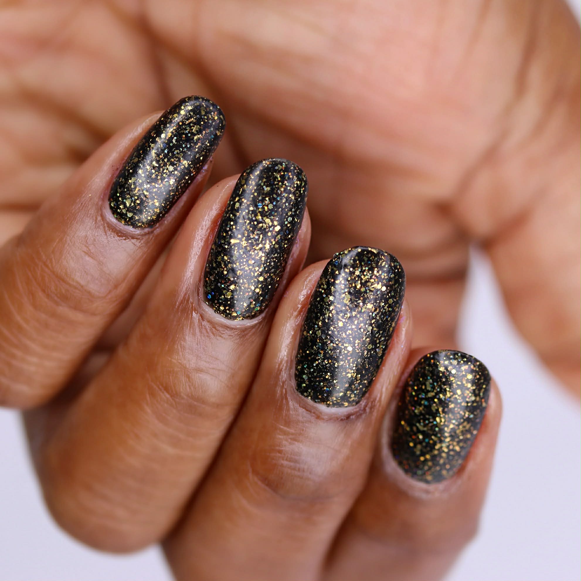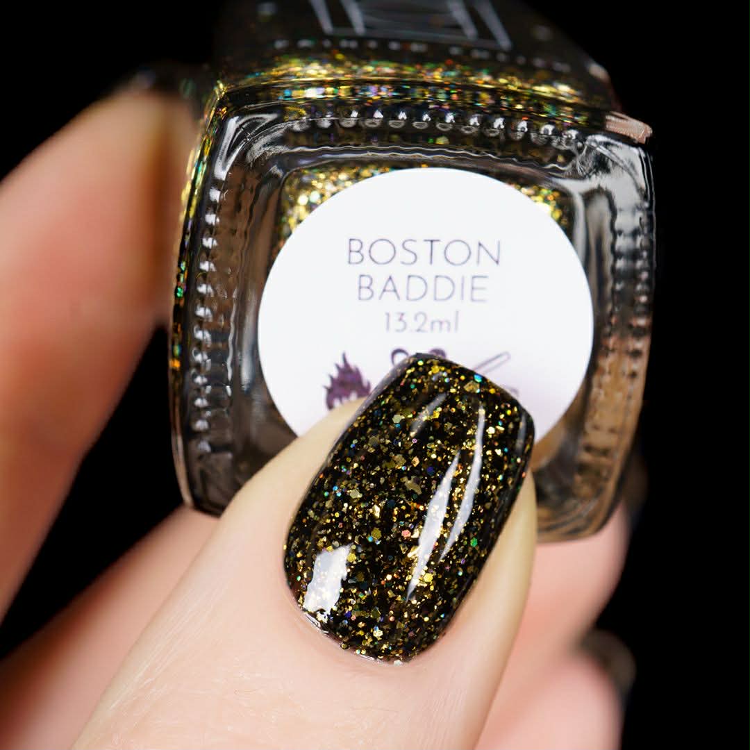 Boston Baddie features all the black and gold glitters and flakies in a black jelly base!