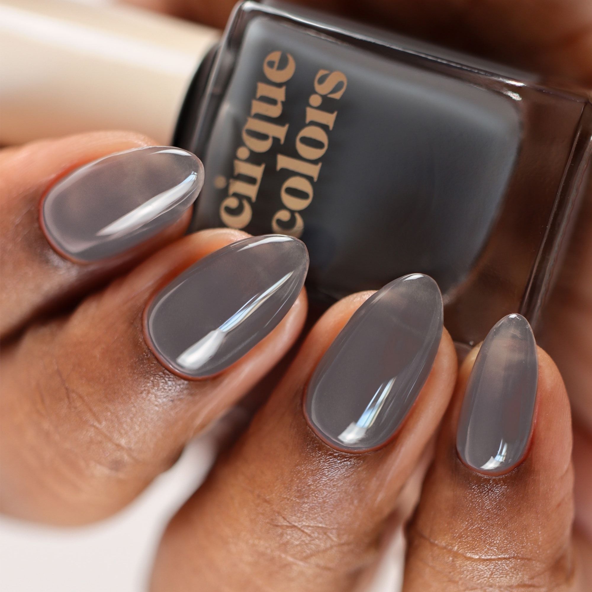 Charcoal Jelly is a light charcoal grey jelly nail polish with a shiny, transparent finish. Our jelly polishes feature a sheer, buildable formula giving the color depth and allowing your natural nail line to peek through.