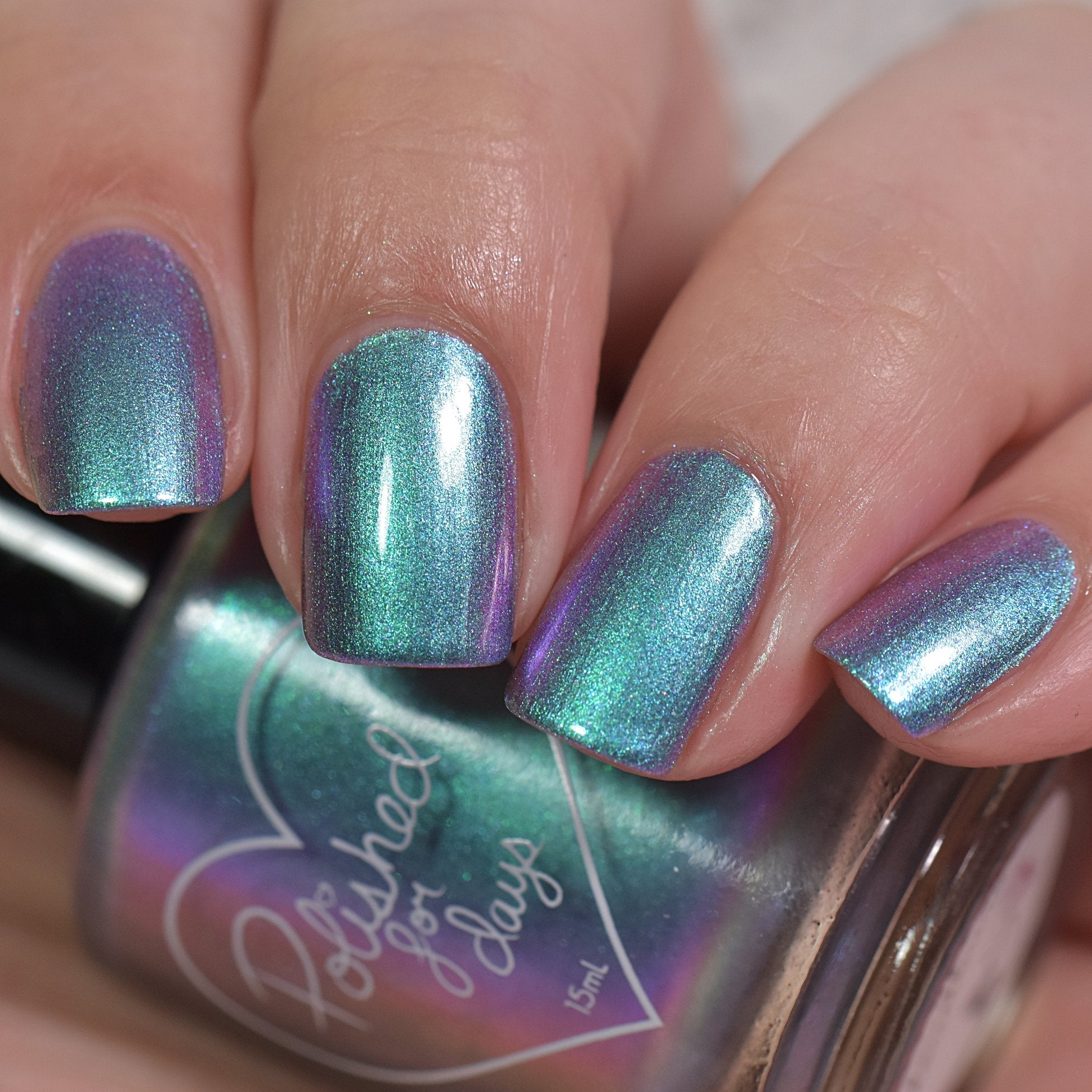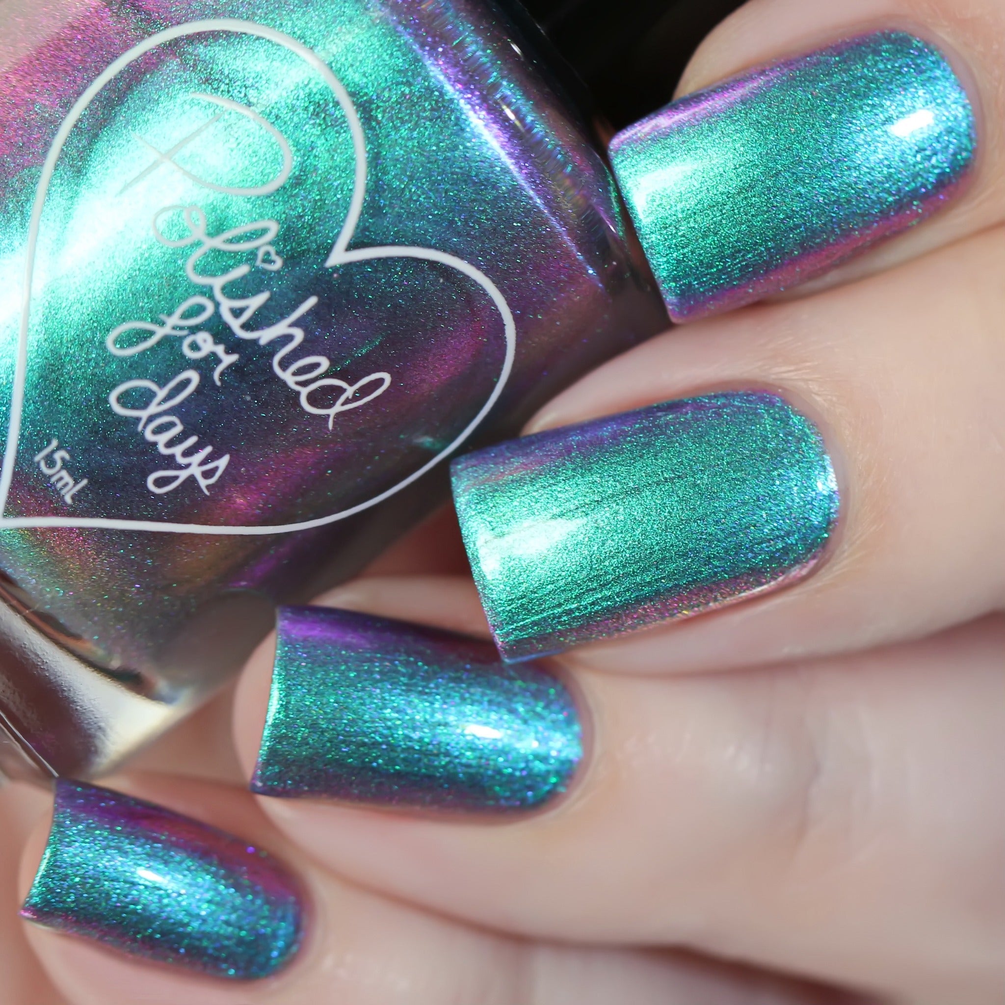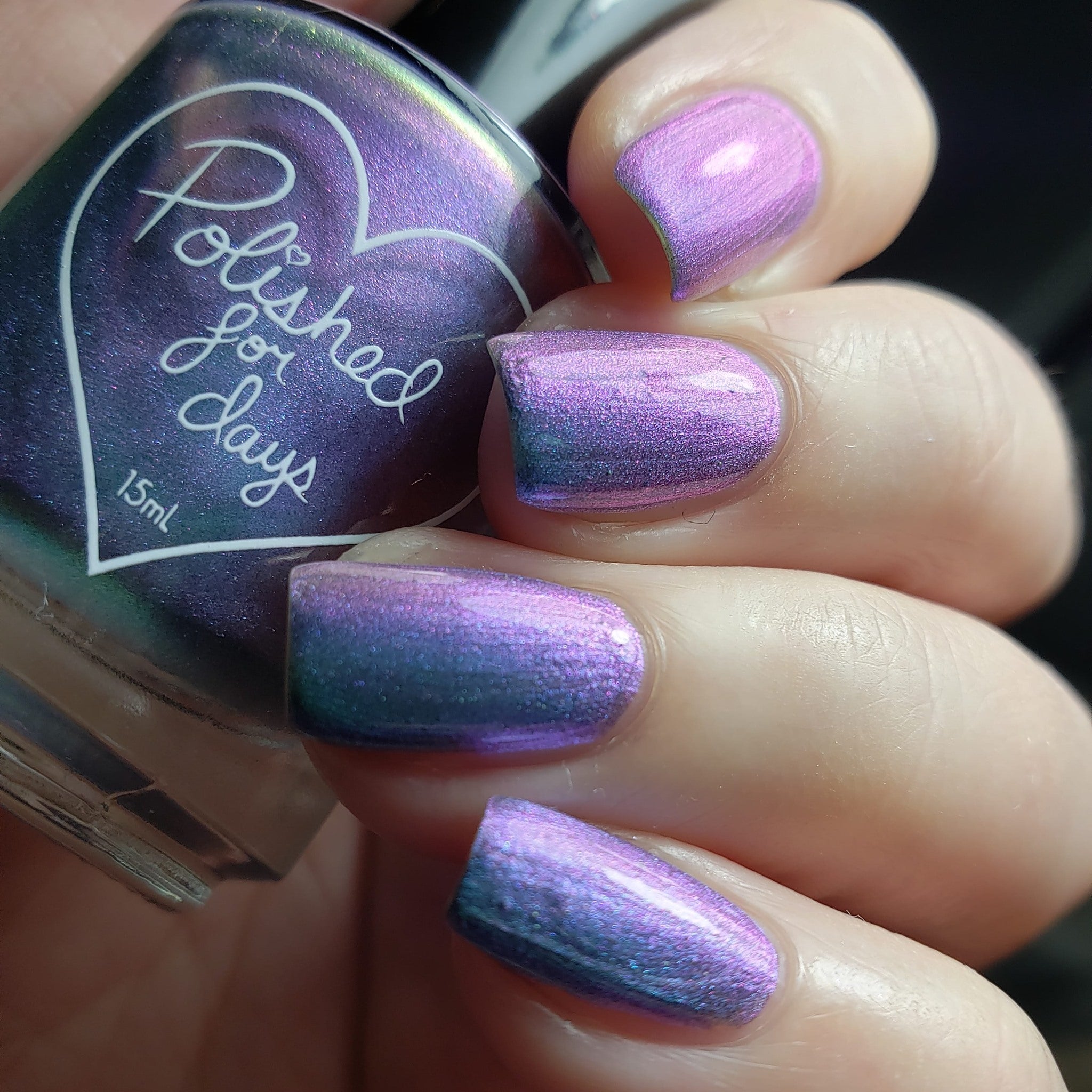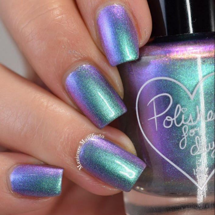 Cloudburst - a pastel shifting multi chrome that shifts from teal-purple-pink-yellow (at the farthest shift). This hybrid formula combines multichrome pigment and aurora pigment making this glow in all lighting!