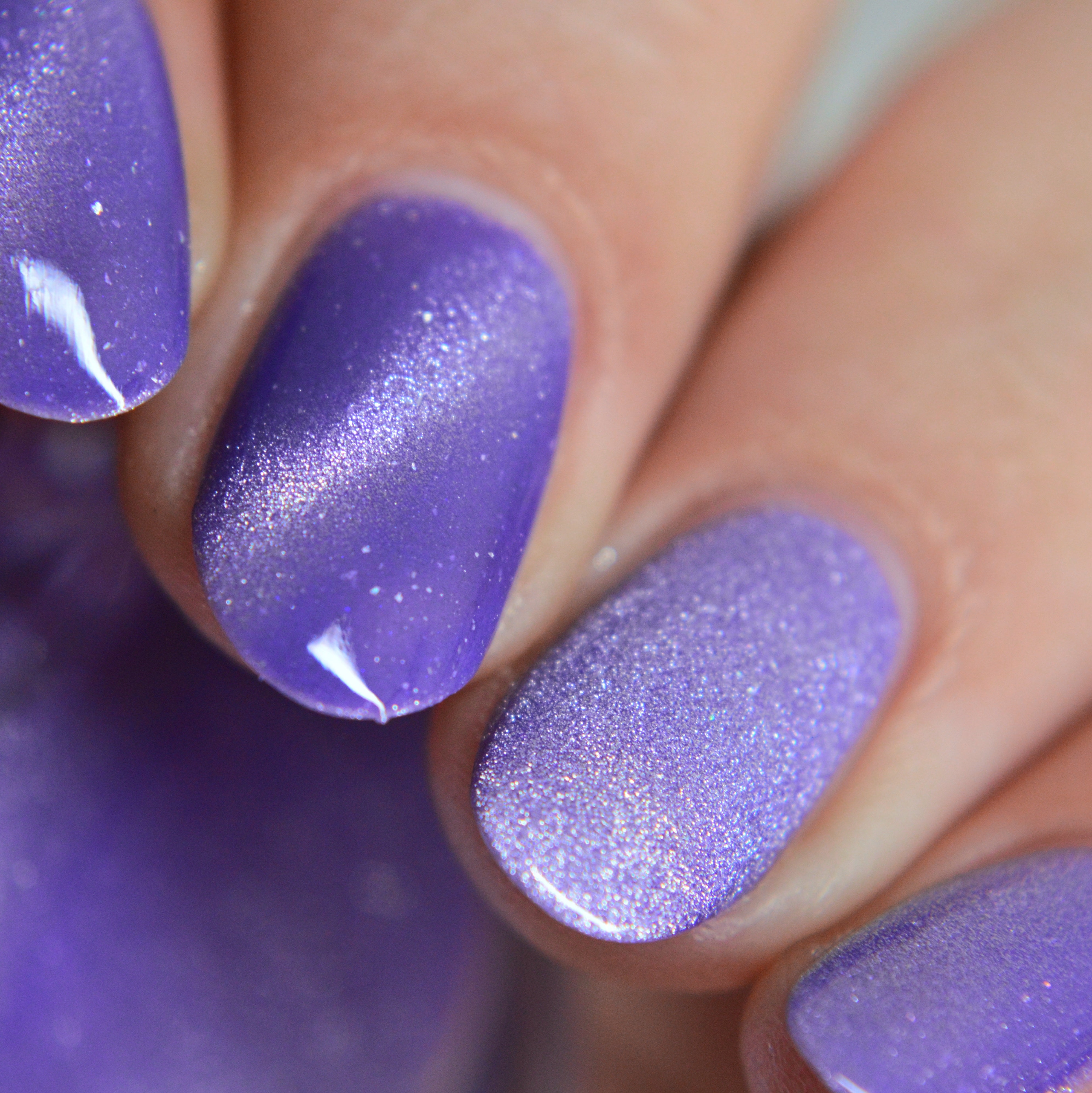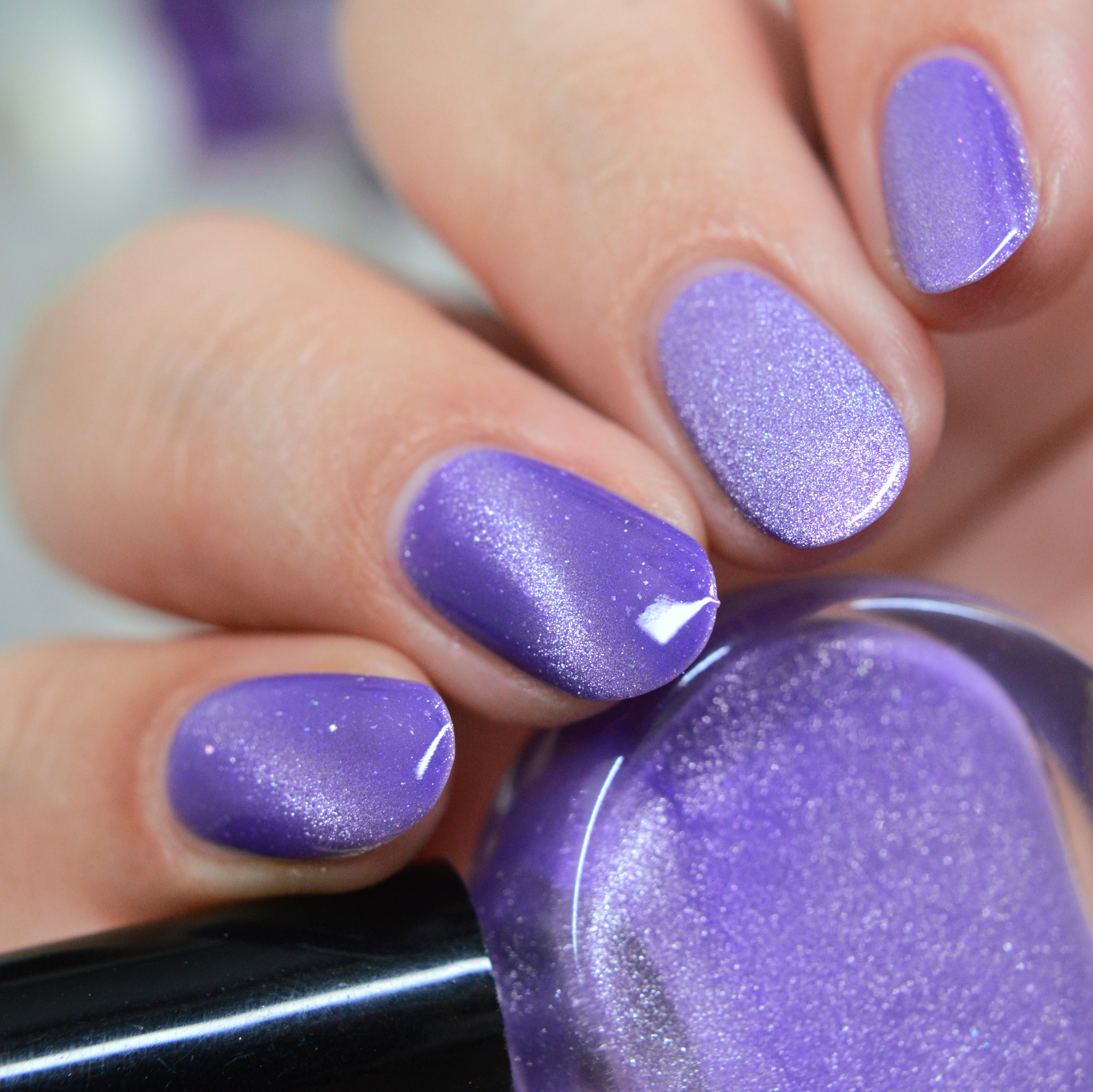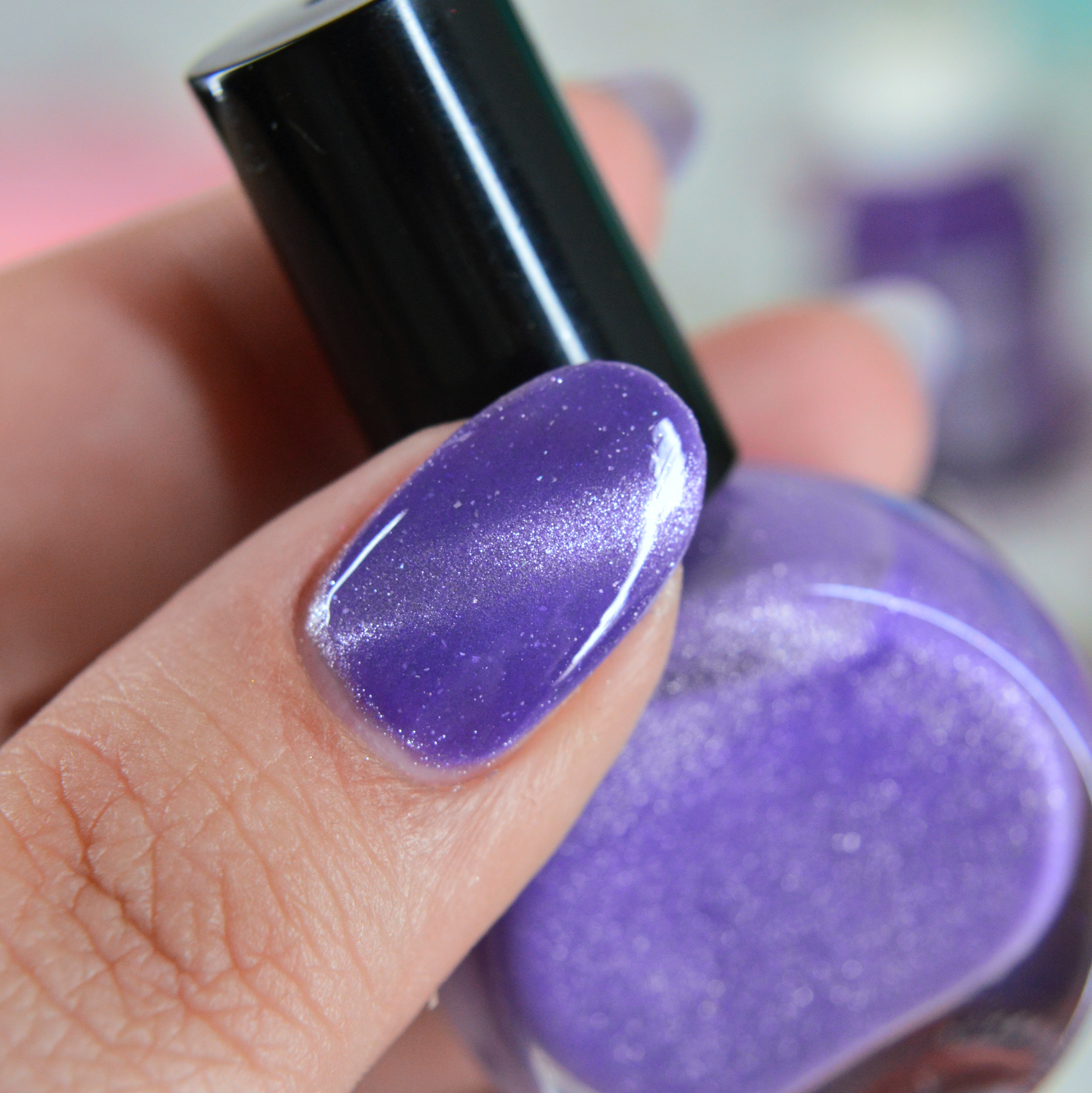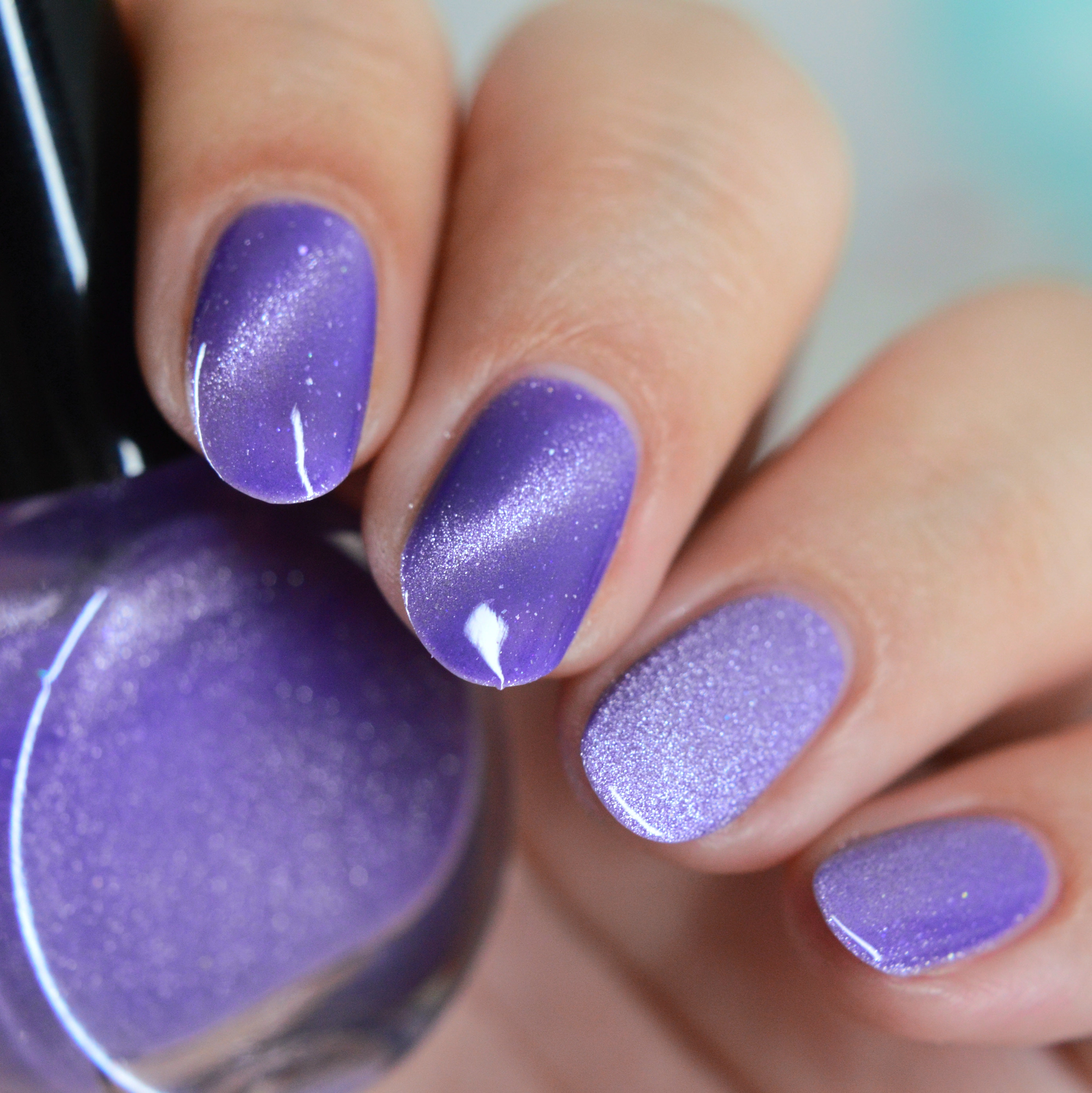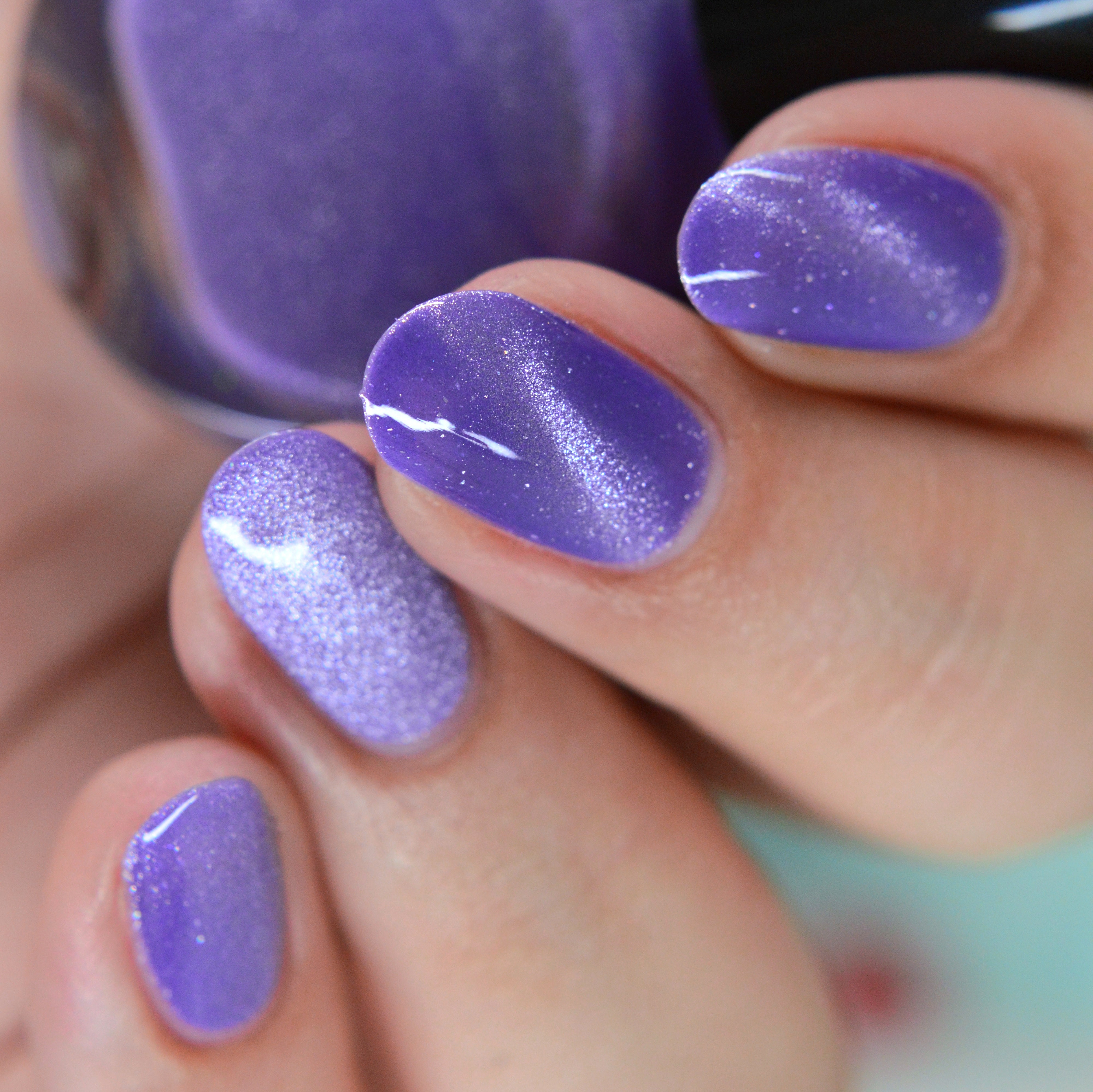 Blue to moss green solar polish with shimmery flakes, blue and black glitters.