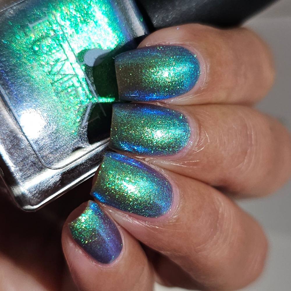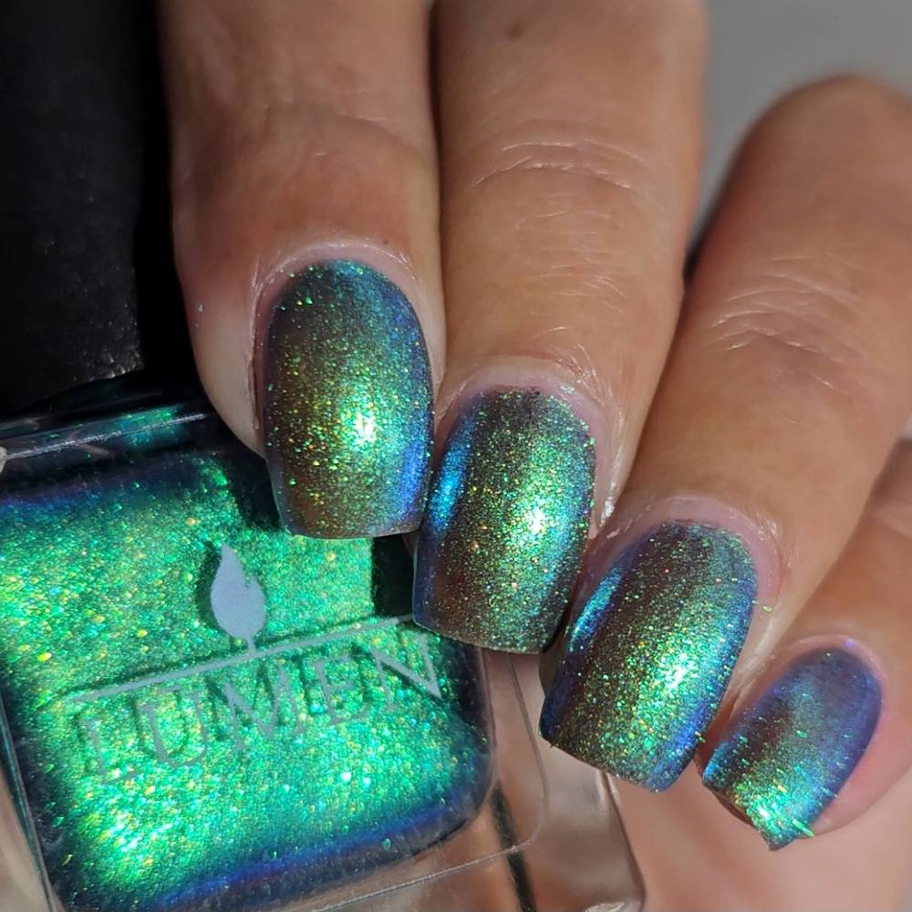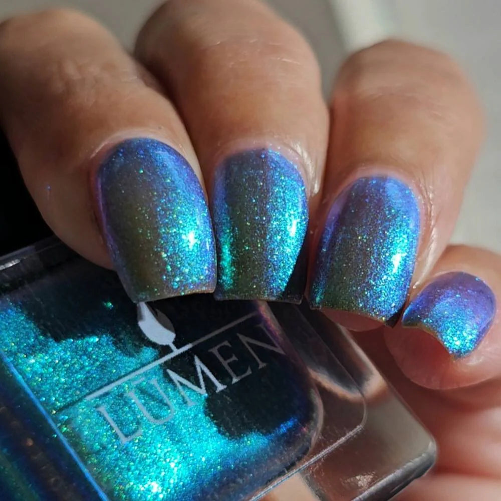 Crush is a luminous blue-to-green polish that shifts with the light.The base begins as a deep, romantic blue, blooming into rich green flashes as your nails move, creating a dimensional, modern finish that feels both mysterious and magnetic. It’s bold without being loud, nostalgic yet undeniably now—perfect for those who fall slowly but deeply.