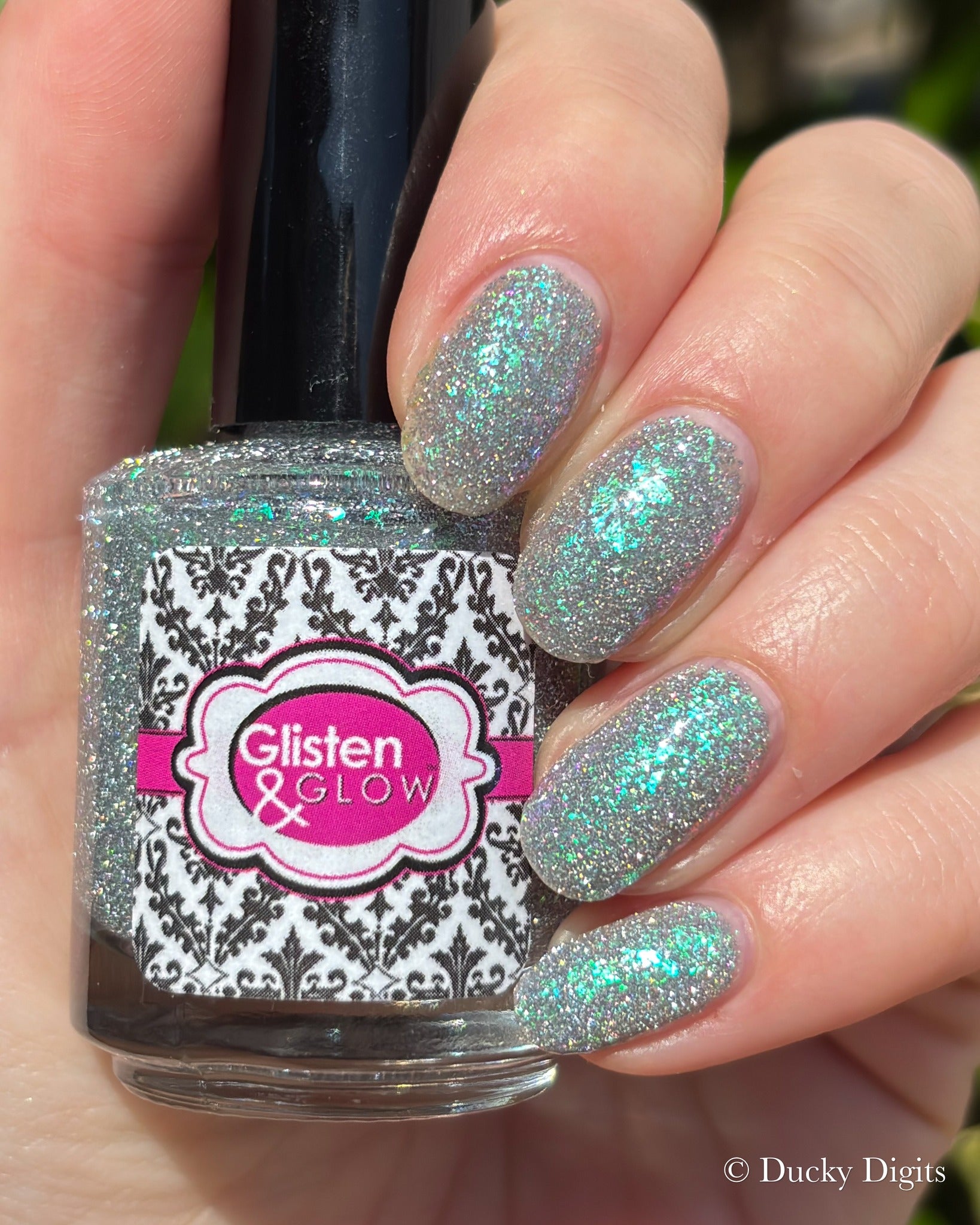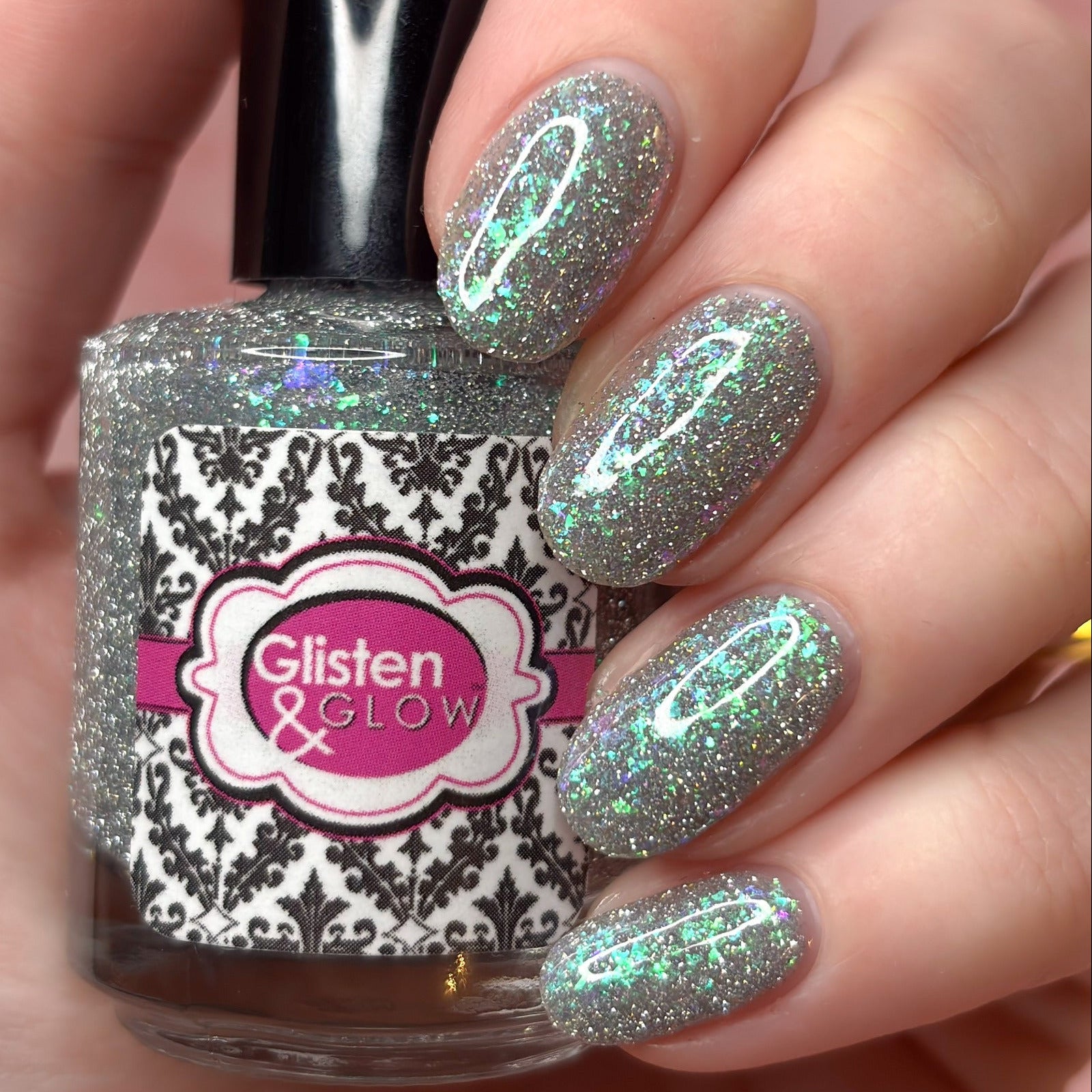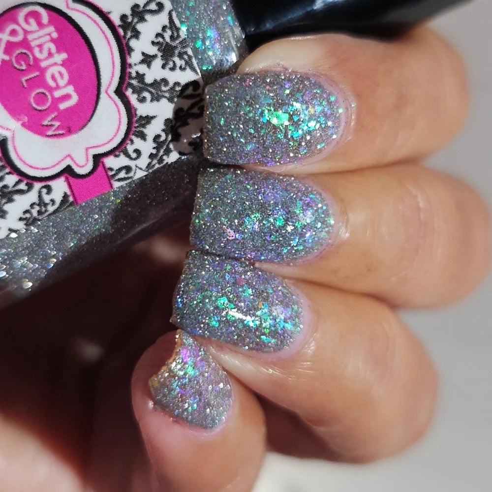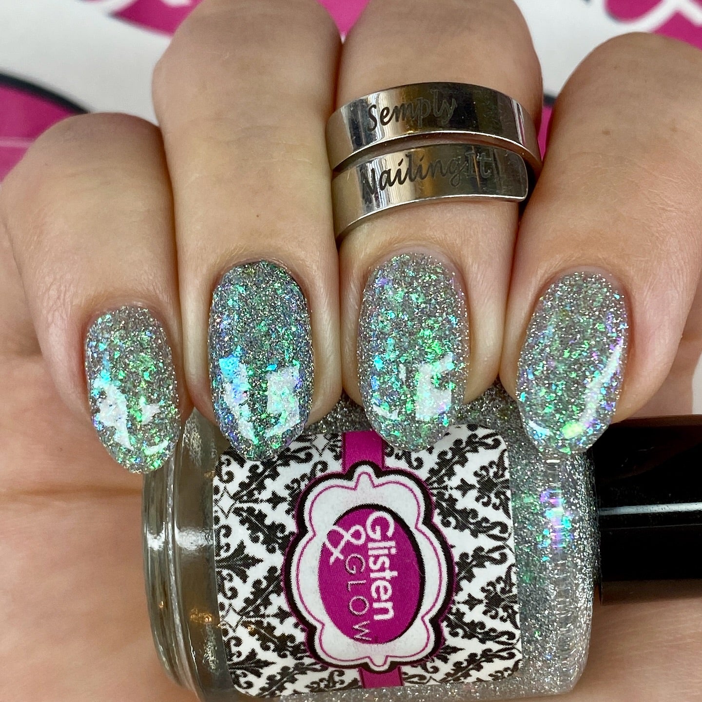 Add a layer of Glisten & Glow Glitter Grabber & Glisten & Glow Top Coat for a smooth, glass like finish!