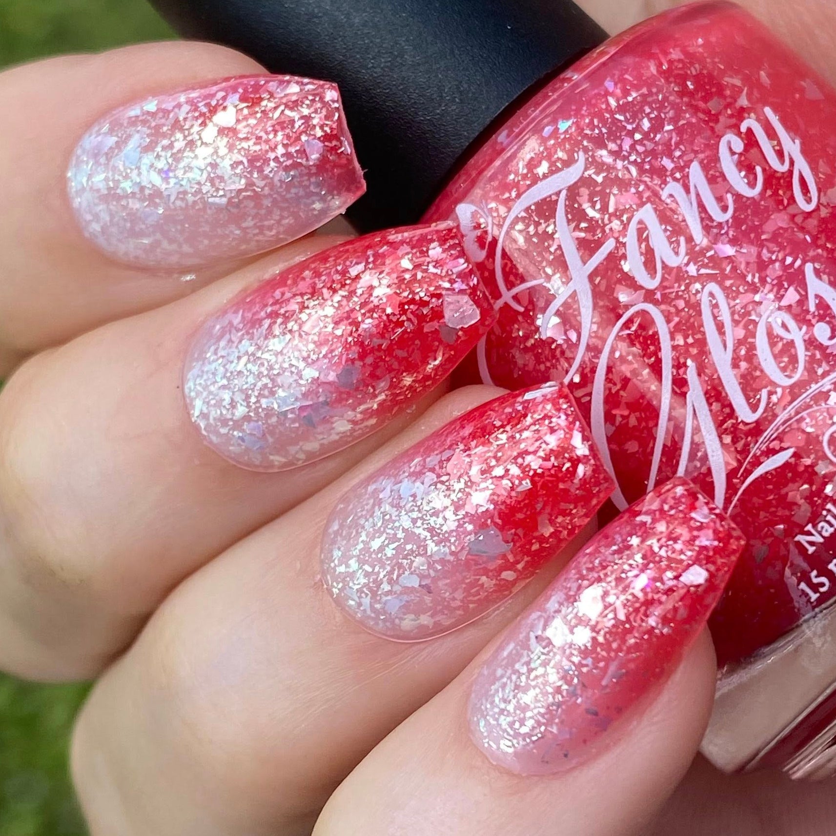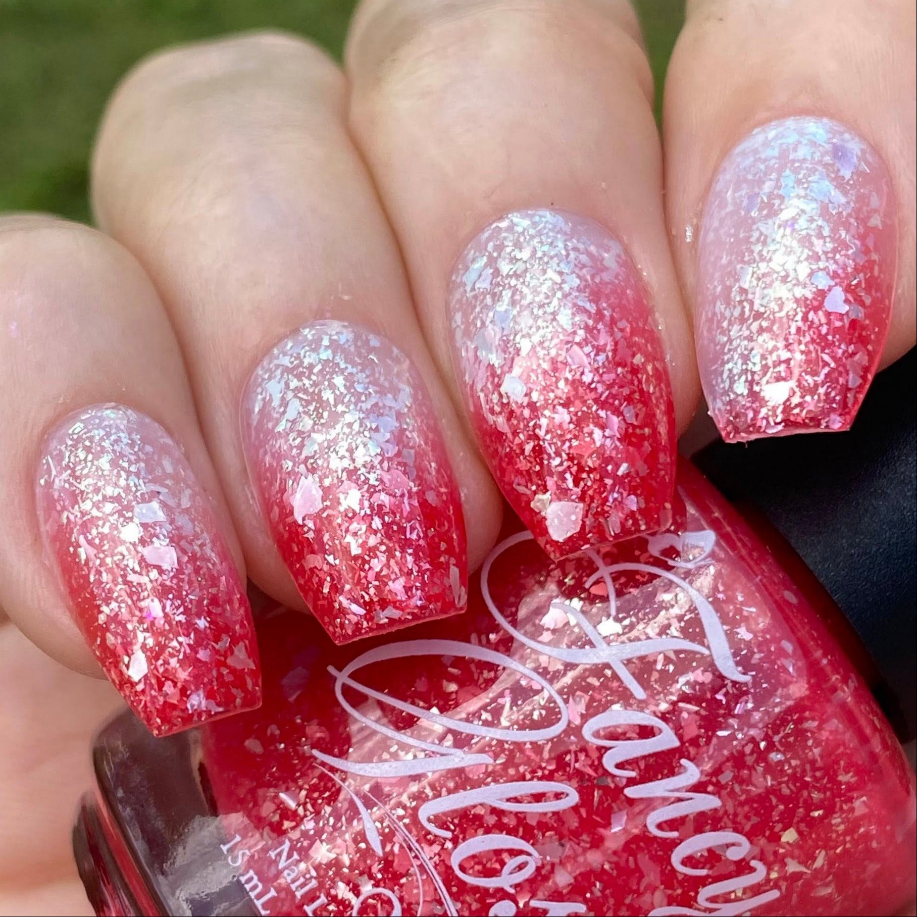pink (cold) to white (warm) packed with silver/light blue/teal/light purple semi clear flakes