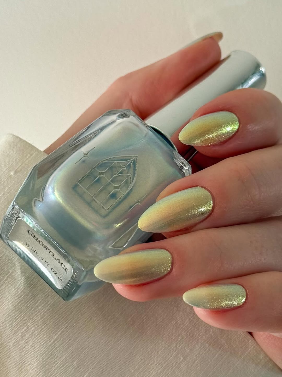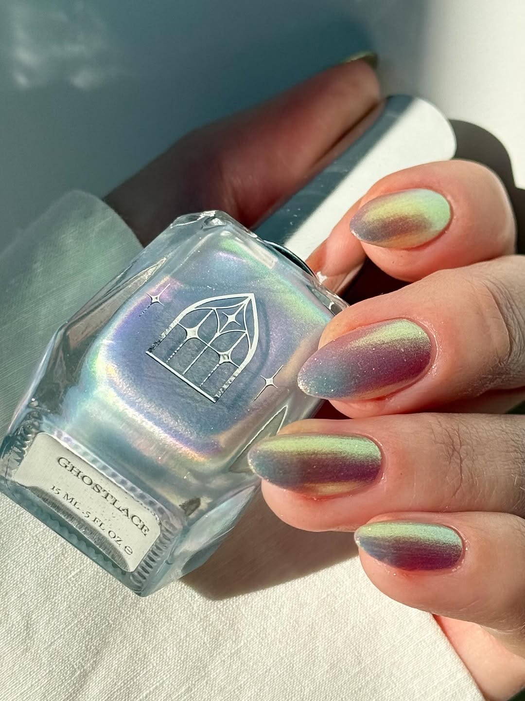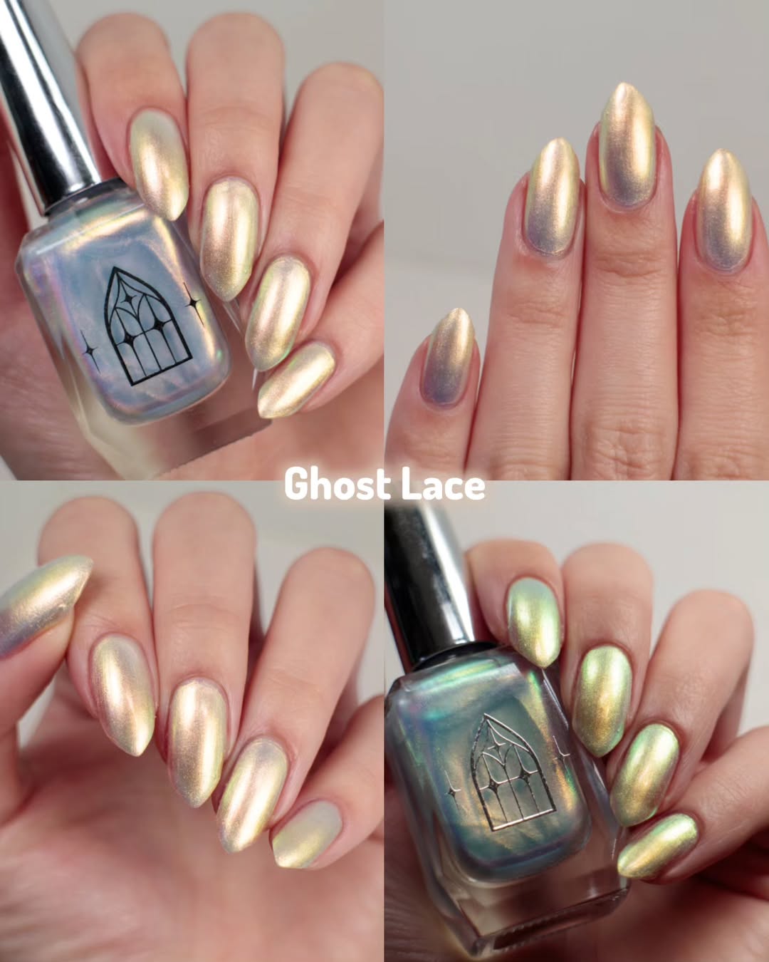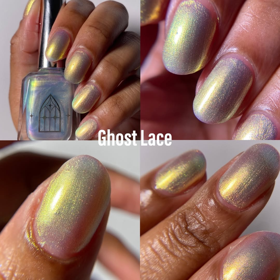 Ghost Lace- a rainbow shimmer that shifts copper, gold, green to aqua.
