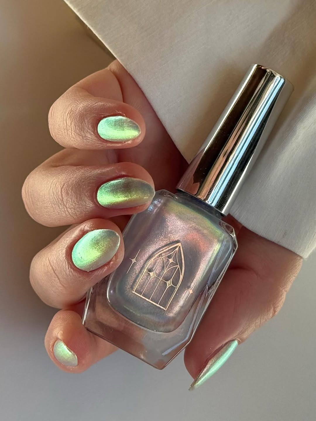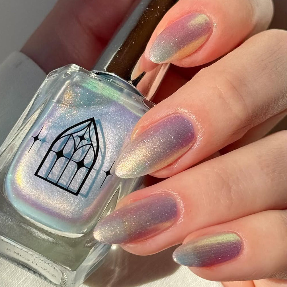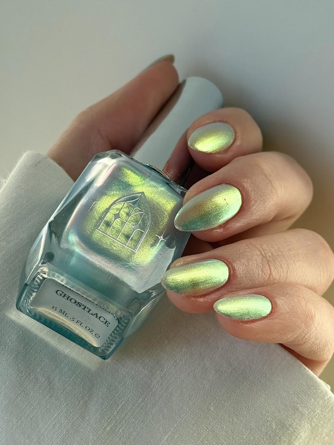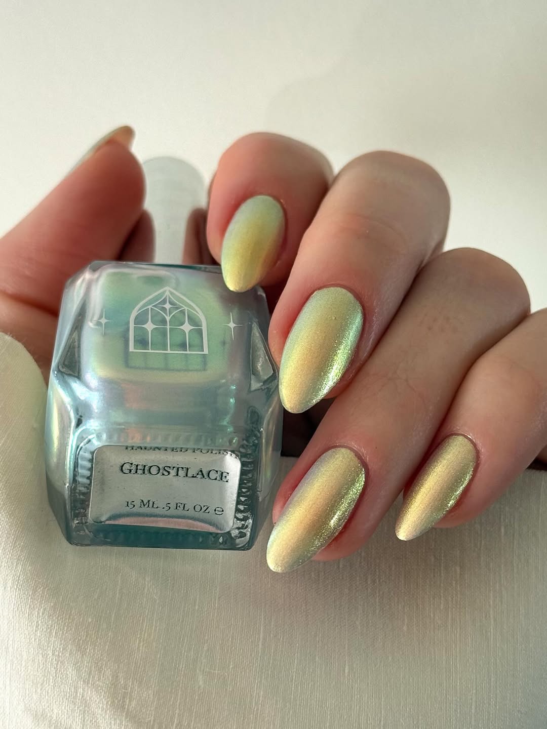 Ghost Lace- a rainbow shimmer that shifts copper, gold, green to aqua.