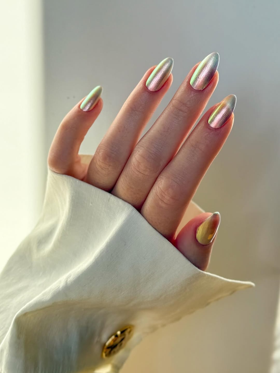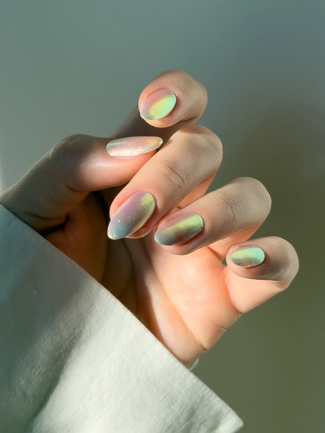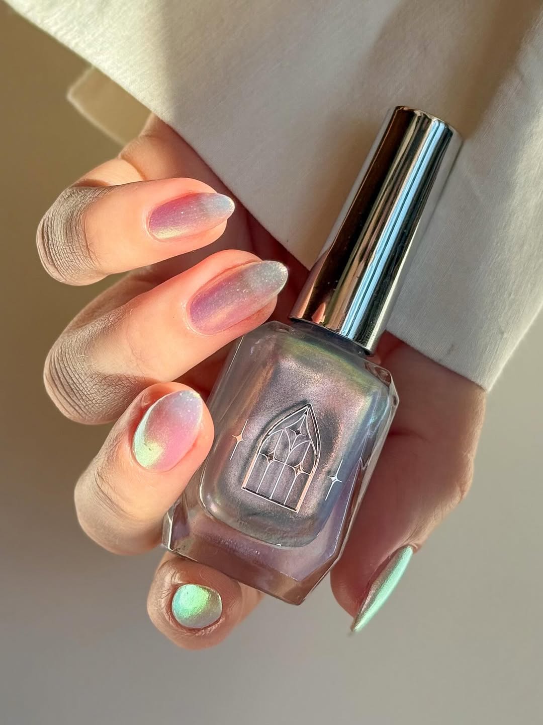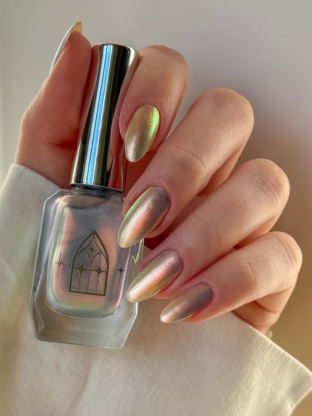 Ghost Lace- a rainbow shimmer that shifts copper, gold, green to aqua.