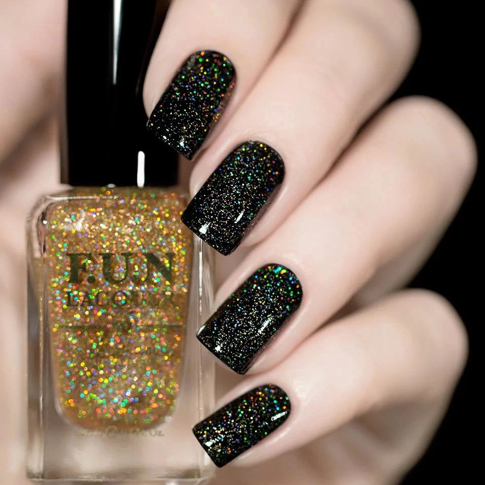 Contain only 100% real holographic micro fine glitter in clear base, rainbow sparkle at every angle! Your manicure will definitely be holo overload with F.U.N Lacquer Gold Diamond Dust!