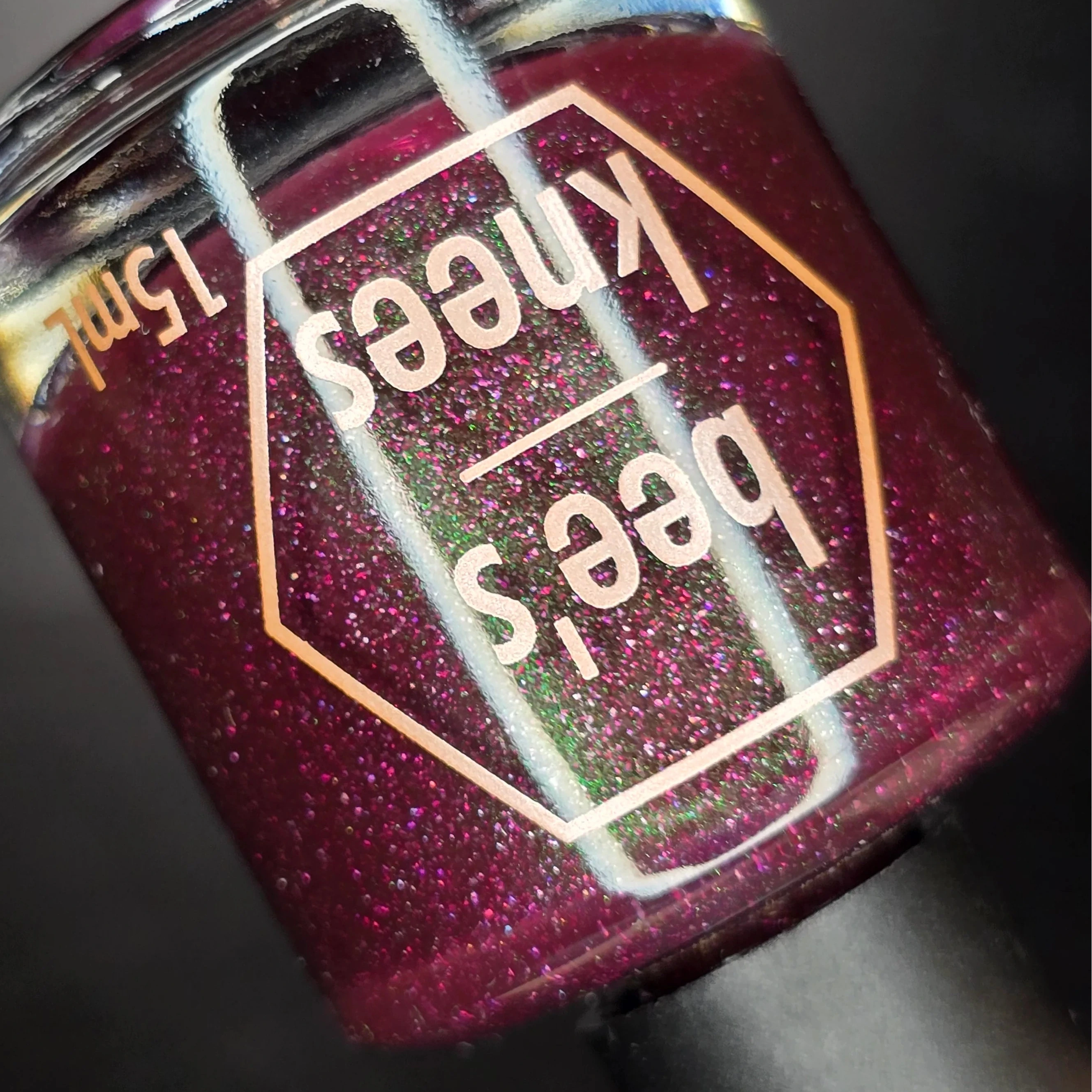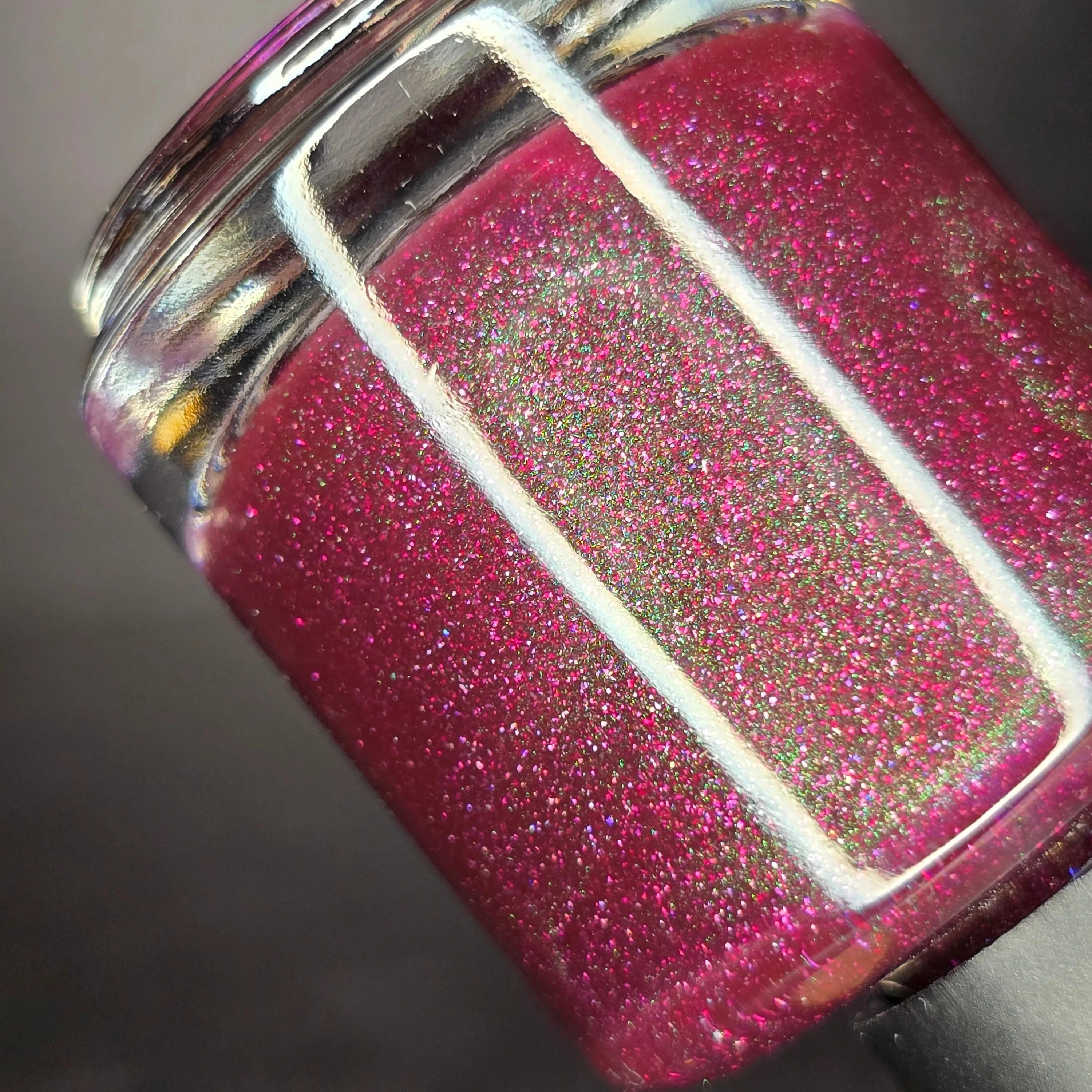 a bruised berry with green to blue sibling UP and holo flakes
