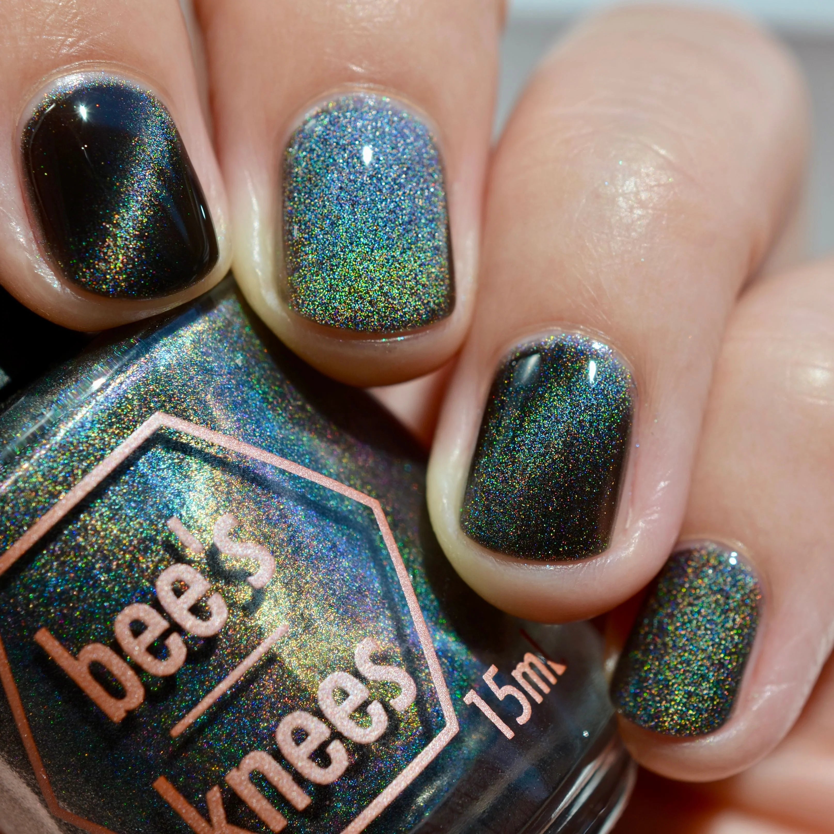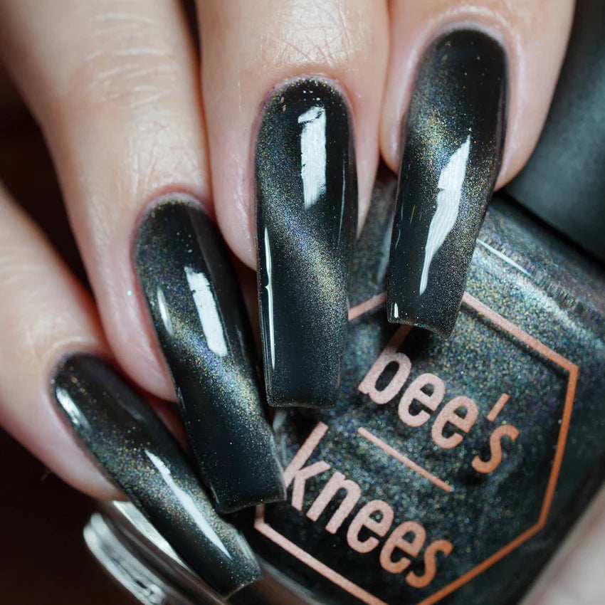 this is a black polish with fine particle magnetic holo shimmer