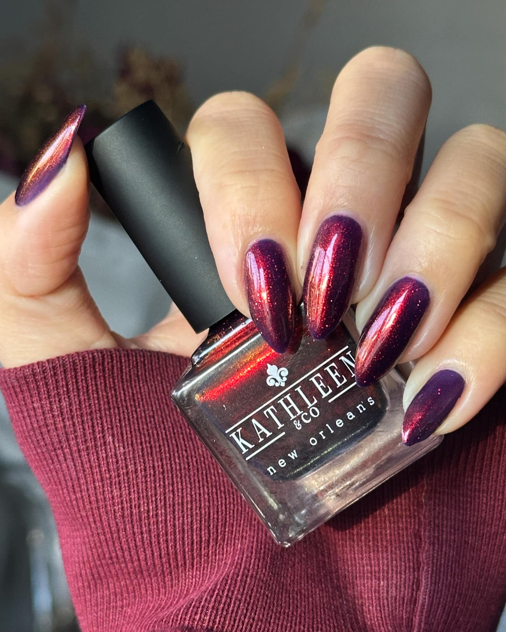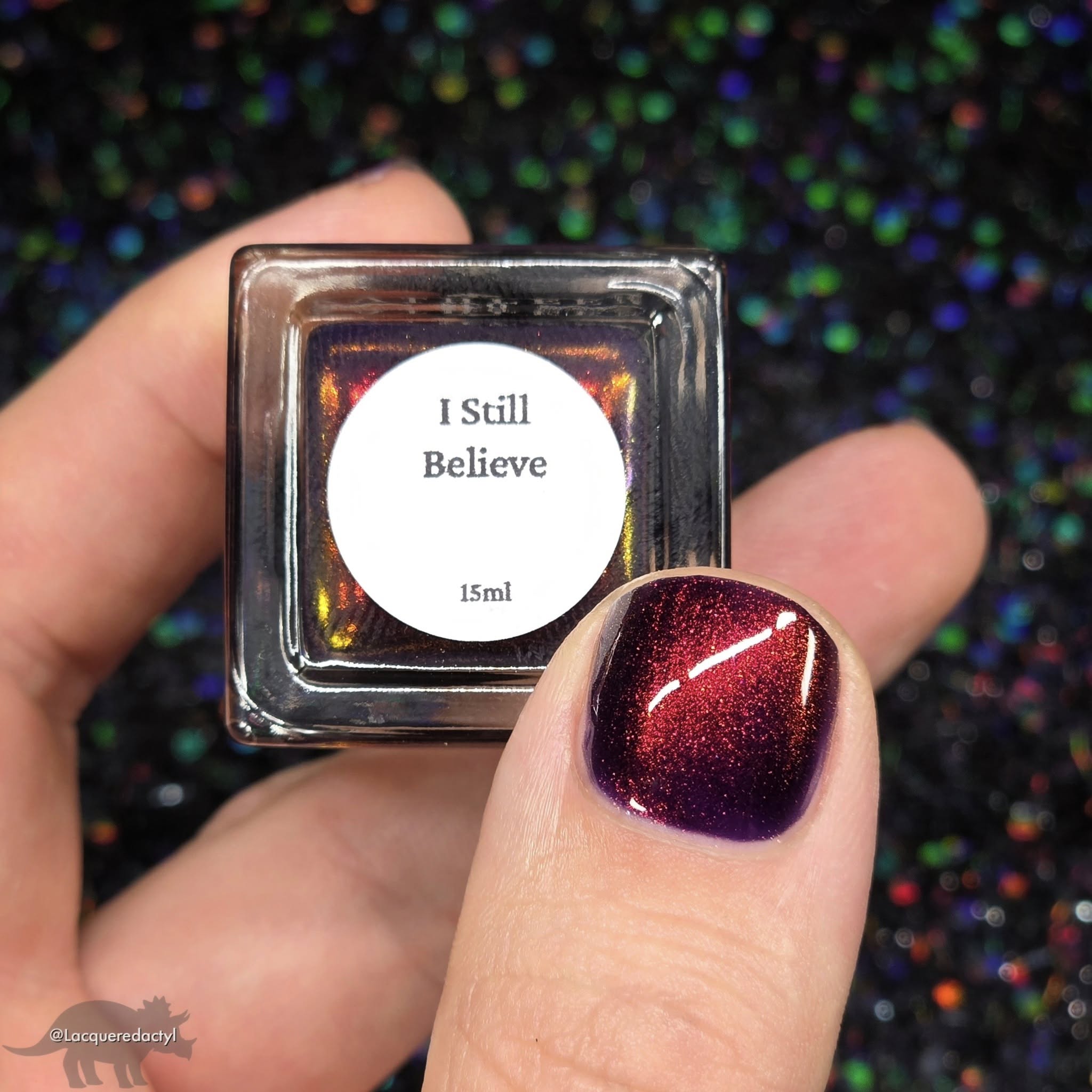 I Still Believe - a blackened violet base with fiery red shimmer.