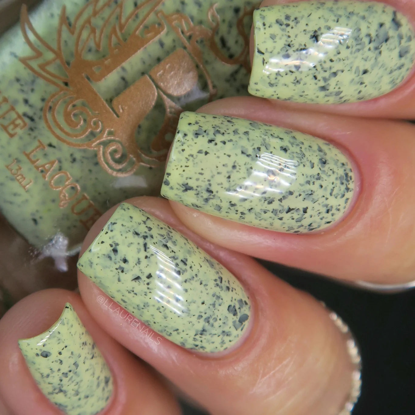 Lemon Drop – This is a pale yellow crelly with black metallic flakes. Inspired by the delicious lemon drops