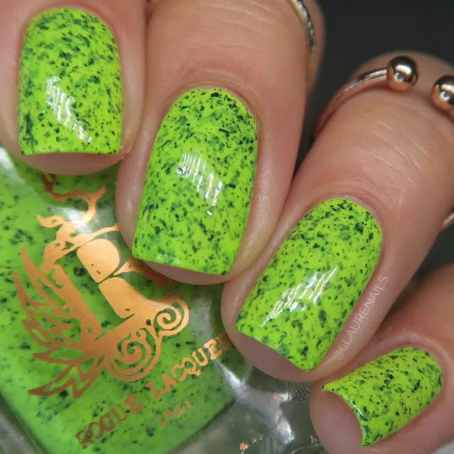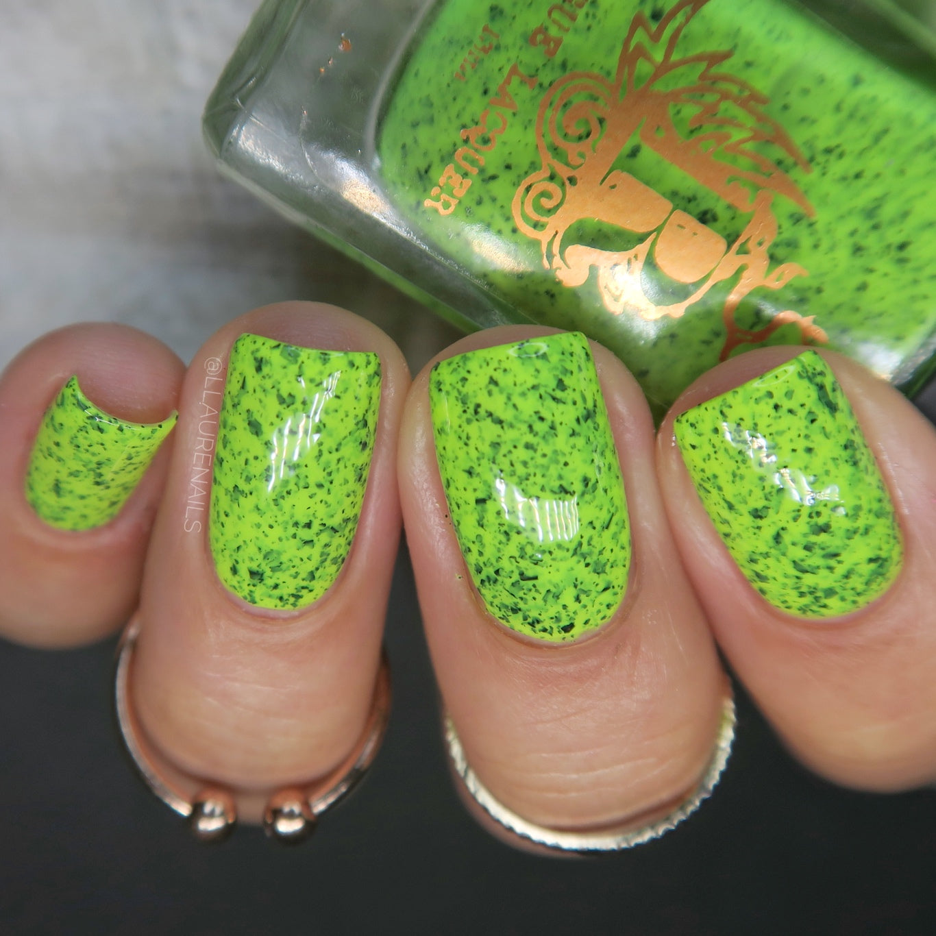 Neon Lights is described as a vibrant neon yellow with black flakes.