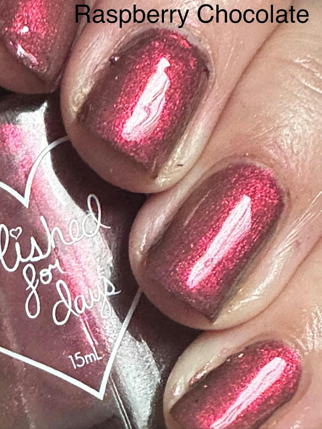 It does what it says on the label it’s a stunning mix of Raspberry and Chocolate. It has so much depth of colour and shimmer. I’m so glad I picked this one up. When I see restocked I know it’s a popular polish,I’m not the only one loving it 😉👀💅👀💅