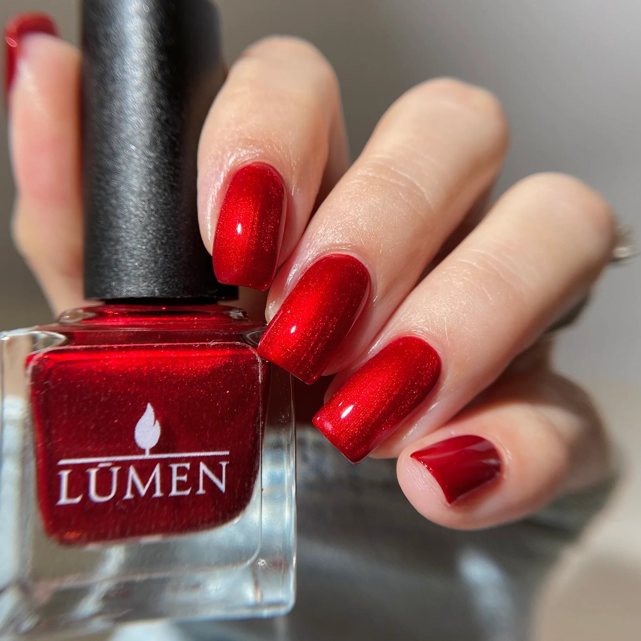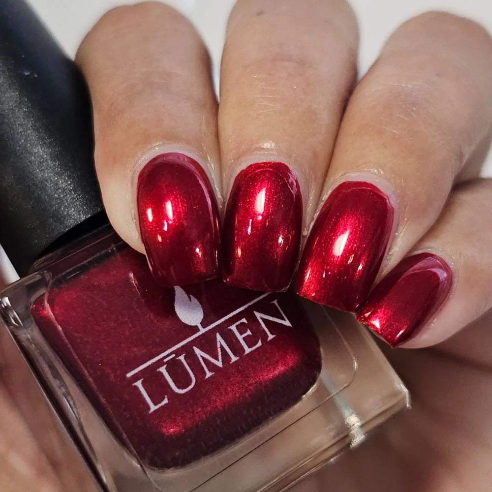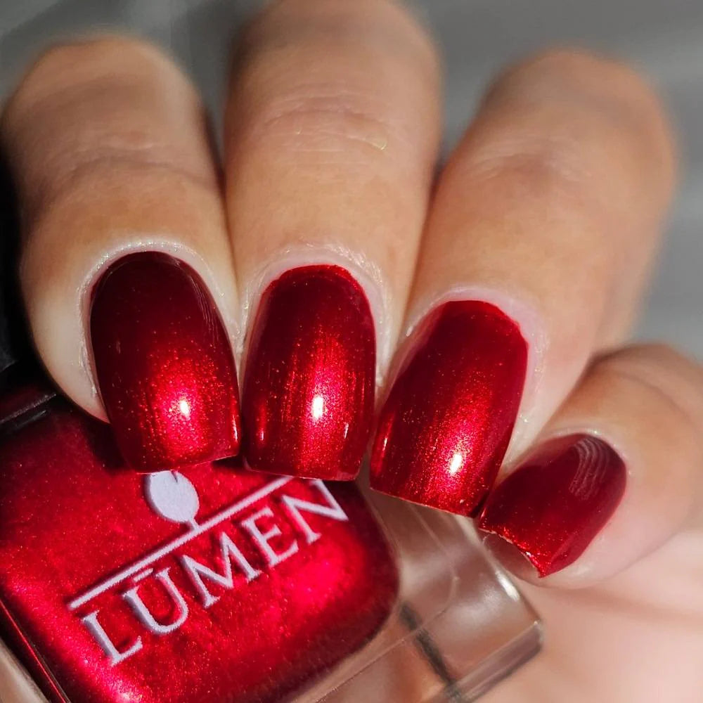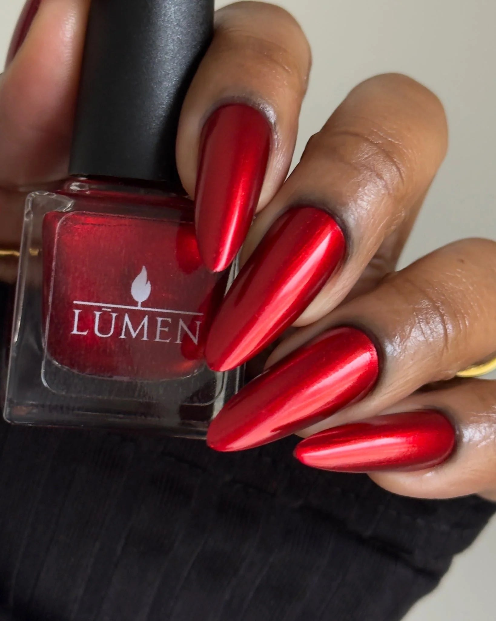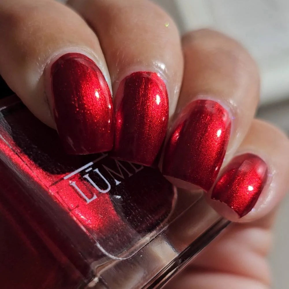 This deep, intoxicating red is rich, moody, and unapologetically bold. Smooth and sultry, it delivers a classic lacquer look with modern intensity, wrapping nails in a bold crimson that feels equal parts confidence and temptation. Best worn with a base coat to prevent staining