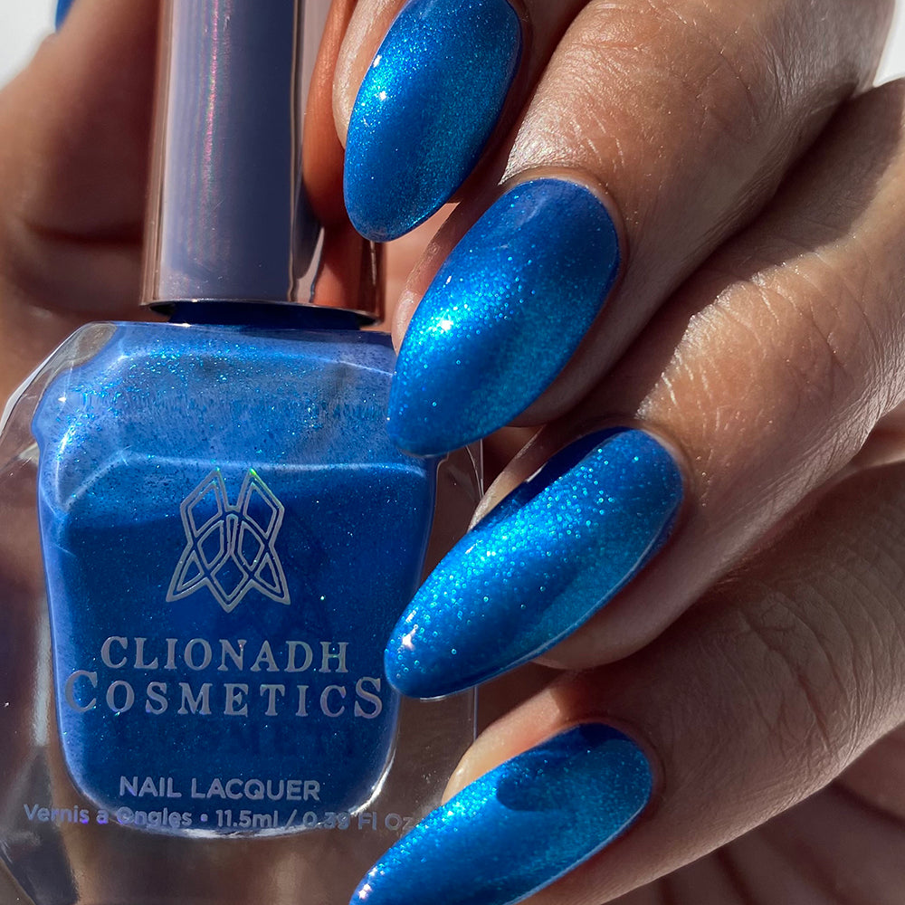 Azurite: A shimmering cerulean magnetic that pulls to reveal an oceanic blue base. Inspired by the mineral, azurite, which can be found in various shades of blue. Historically, the mineral was ground up and used as a pigment in painting for centuries.