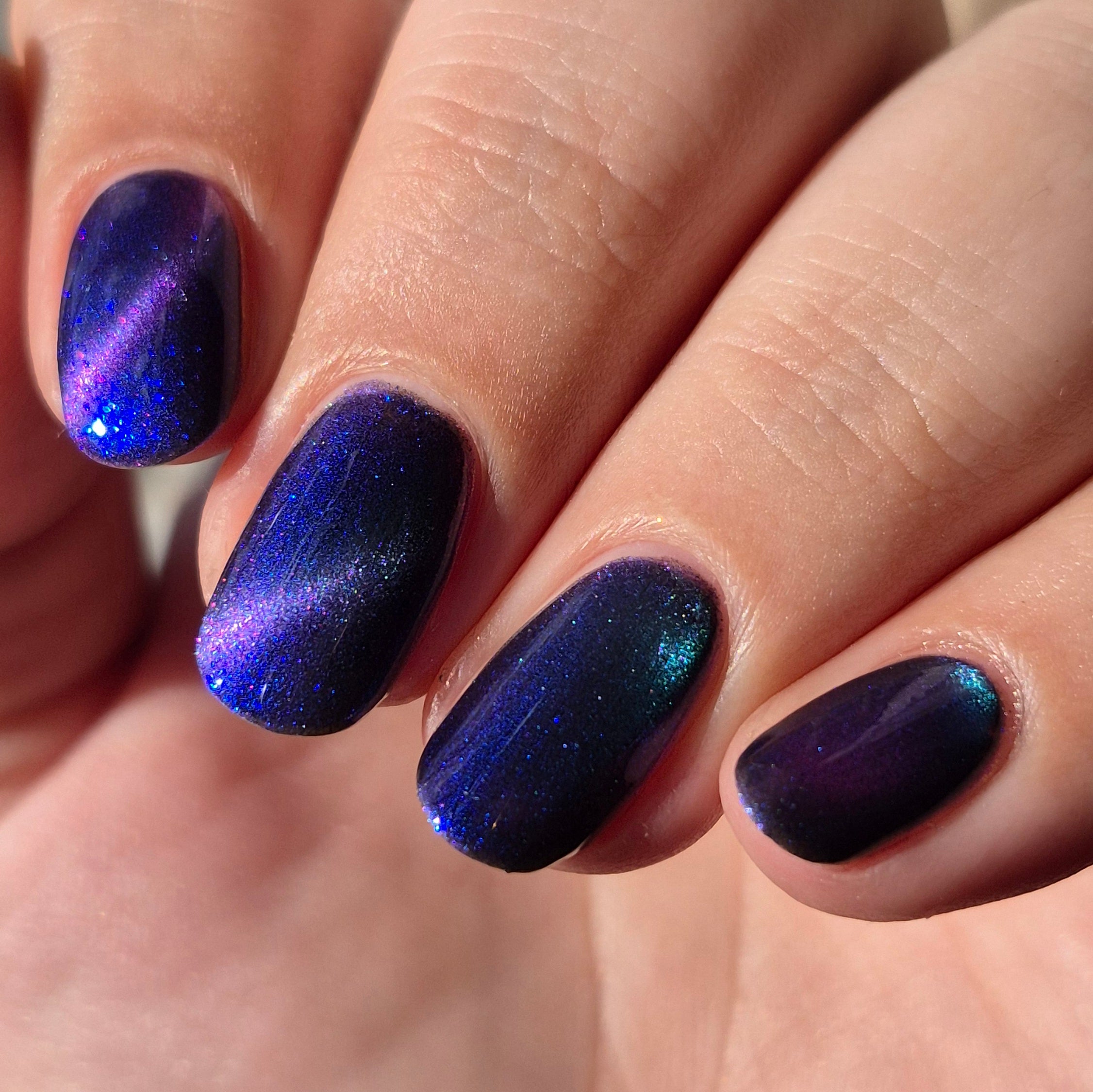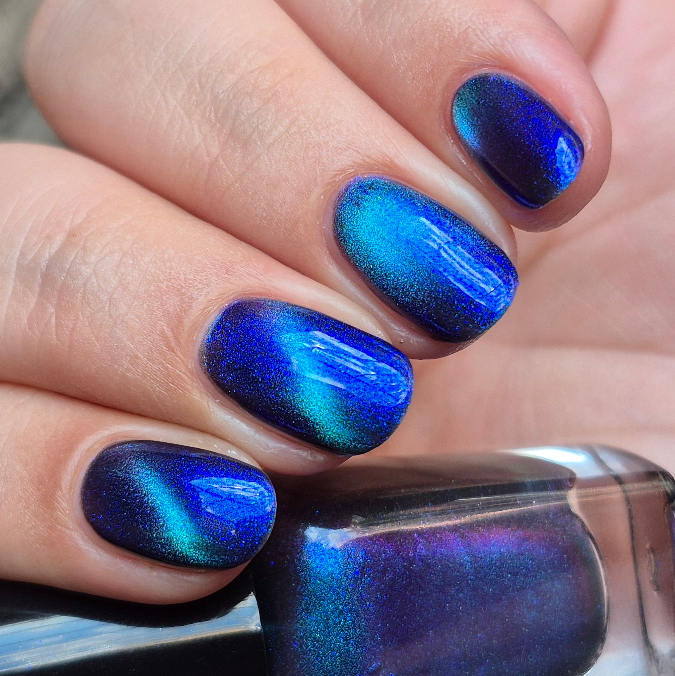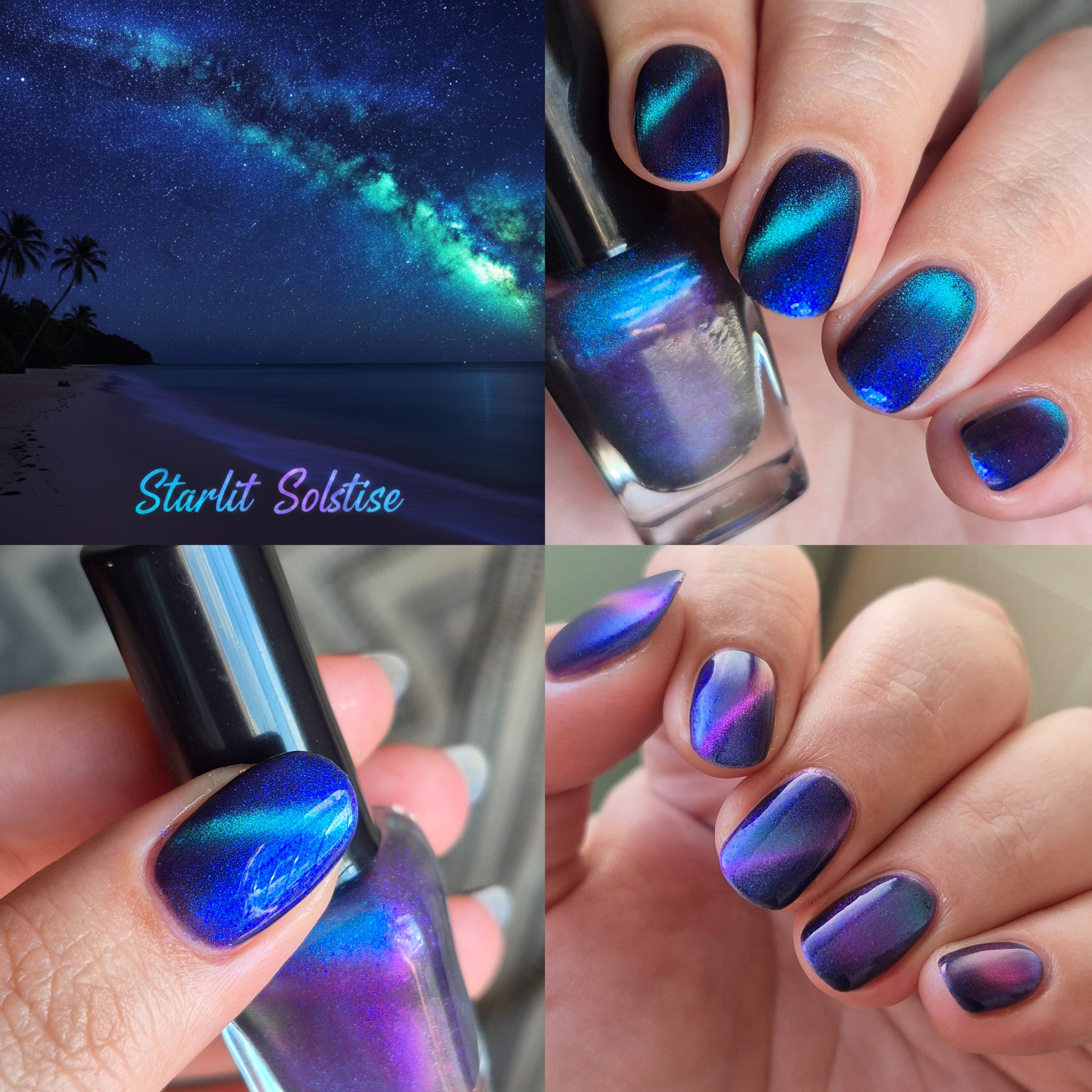 A Sky full of stars: magnetic pigment, galaxy sapphire glitter and holographic flakes. Magnetic tools sold separately – Magnetic Tools
