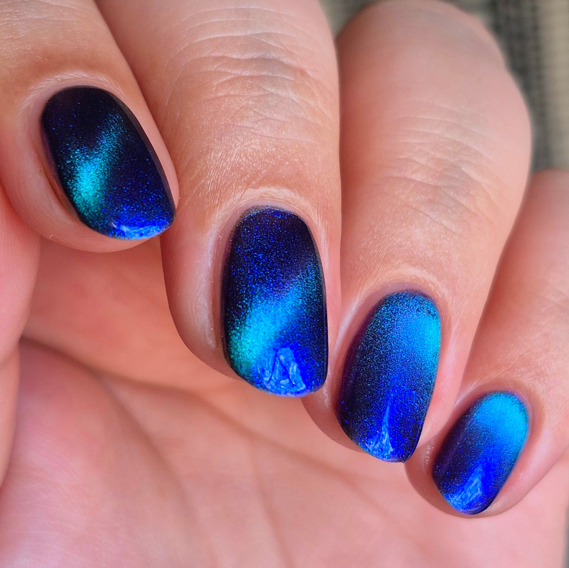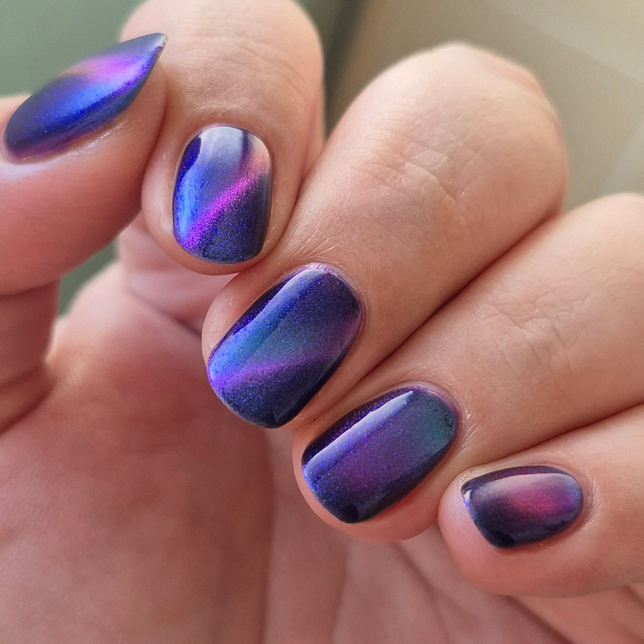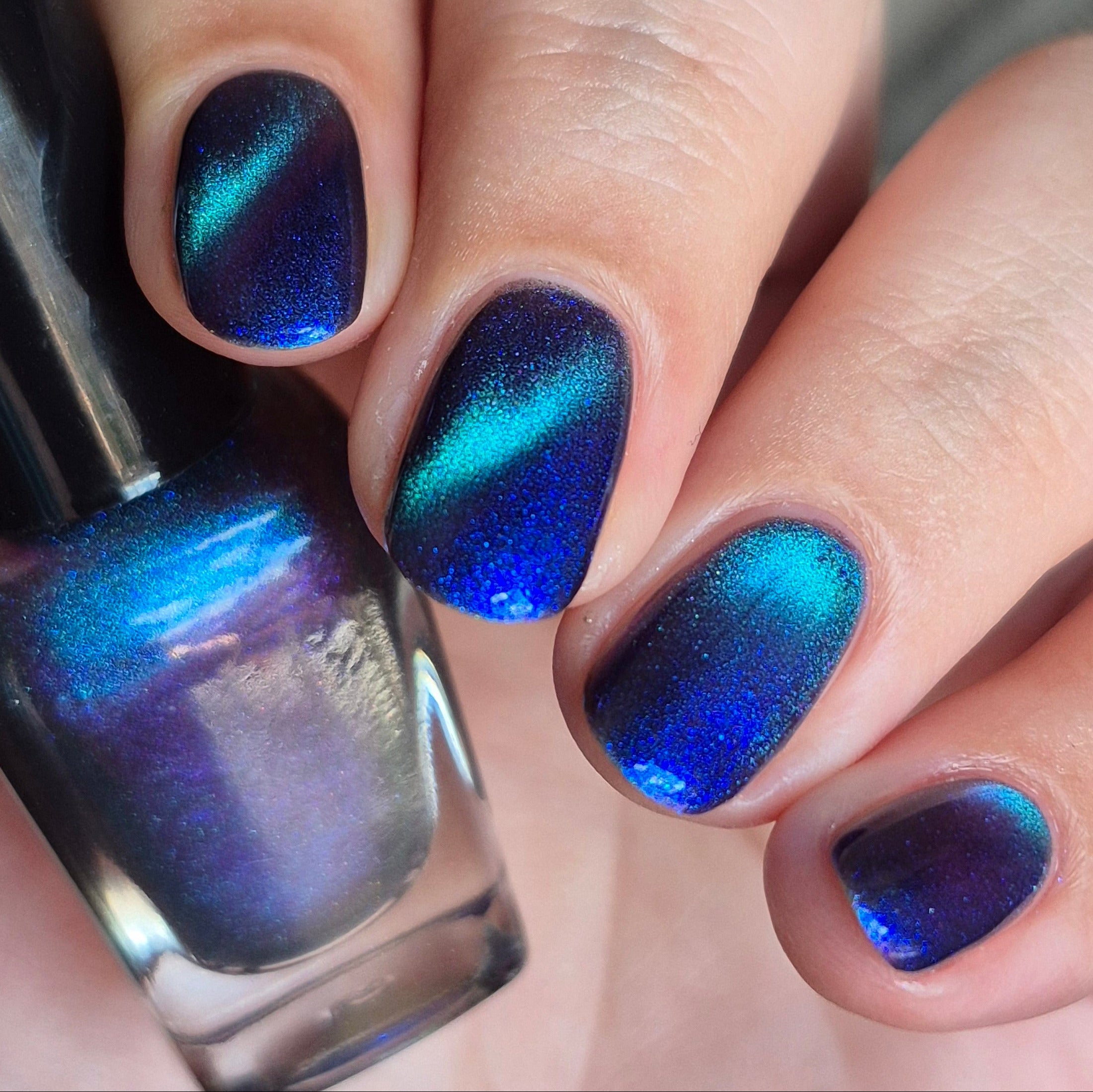 A Sky full of stars: magnetic pigment, galaxy sapphire glitter and holographic flakes. Magnetic tools sold separately – Magnetic Tools