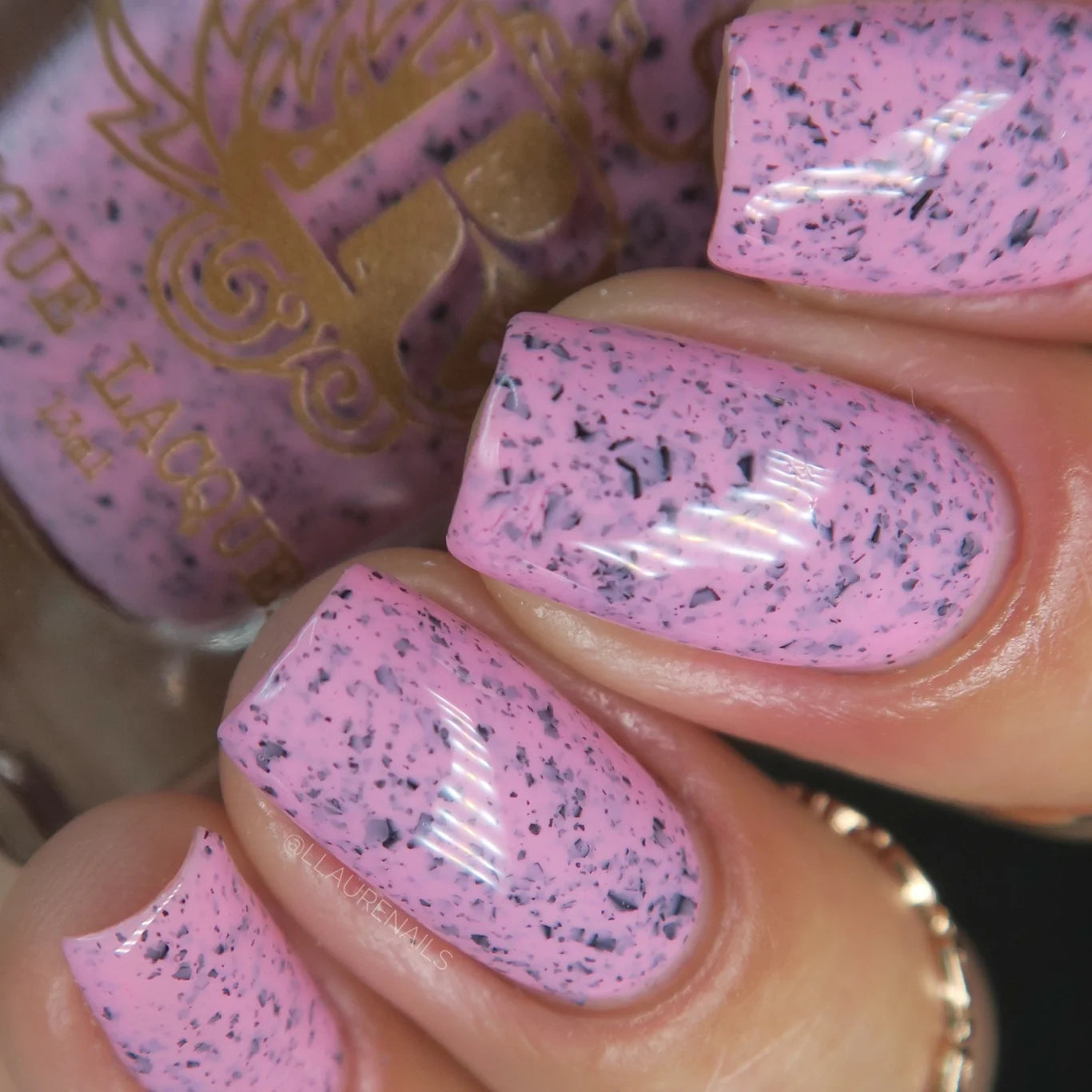 Strawberry Shackin – a pastel pink crelly with black flakes, who doesn’t love a strawberry milkshake?