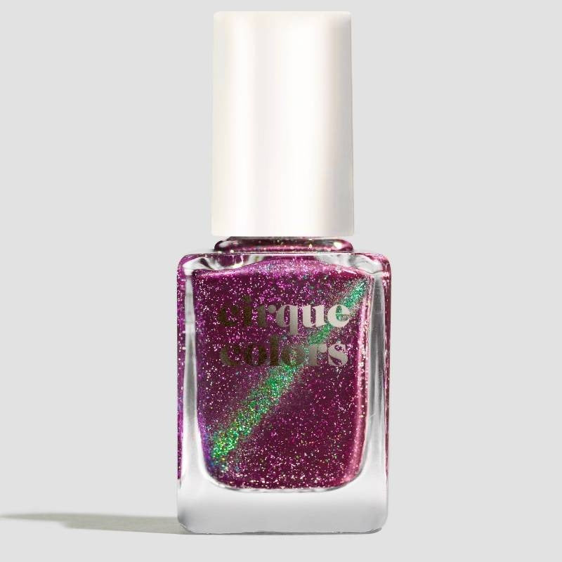 A pinky purple base with a strong teal to violet shifting shimmer and holo flakies.