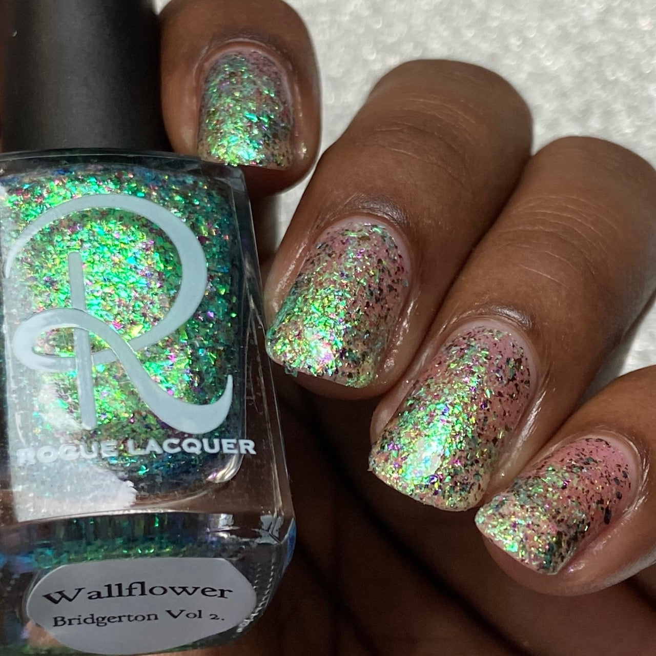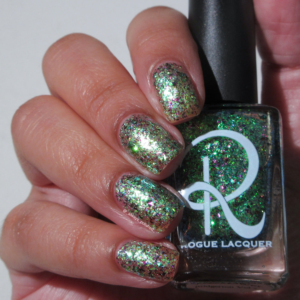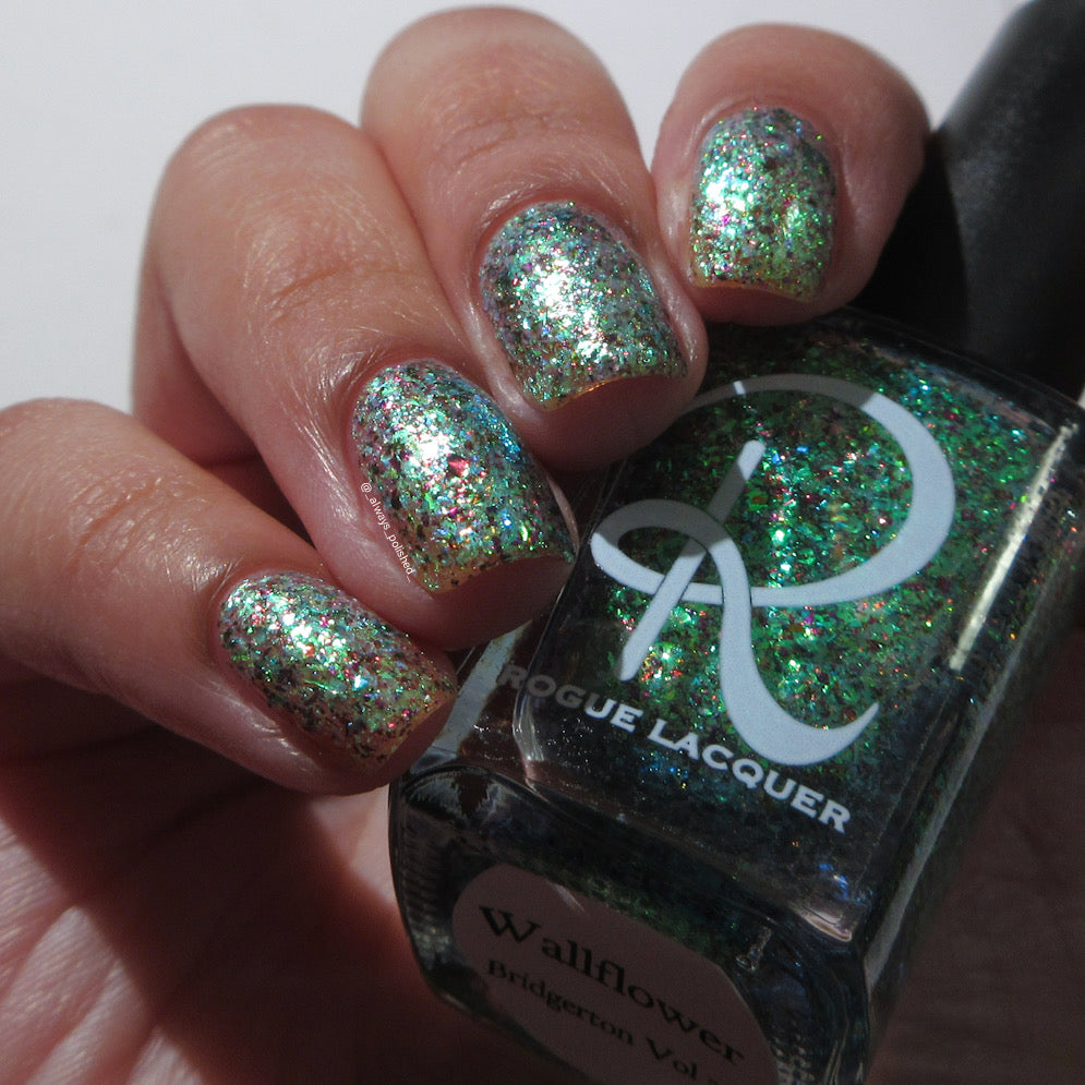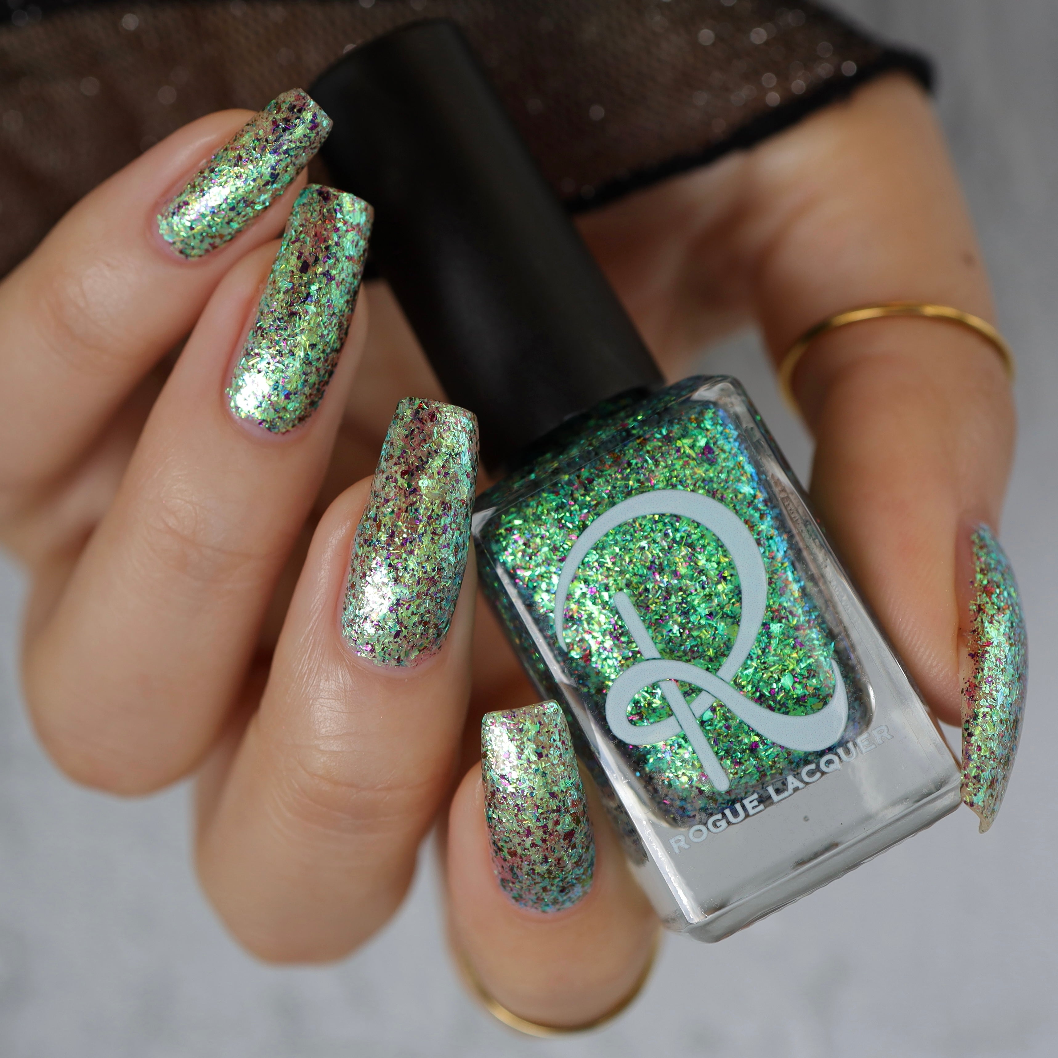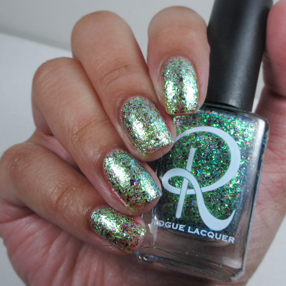 Diamond of the season – a muted turquoise base with large particle pink to orange shimmer
