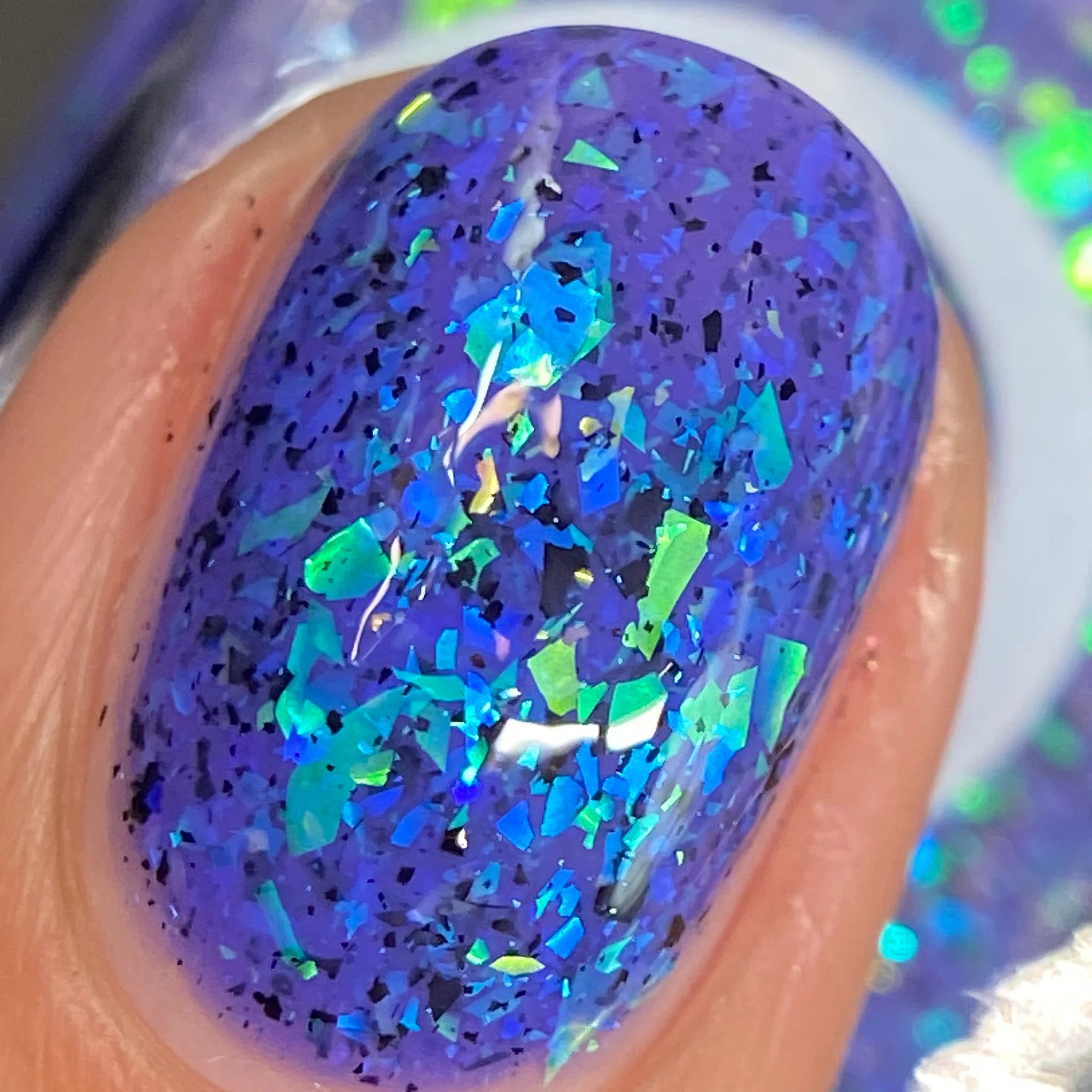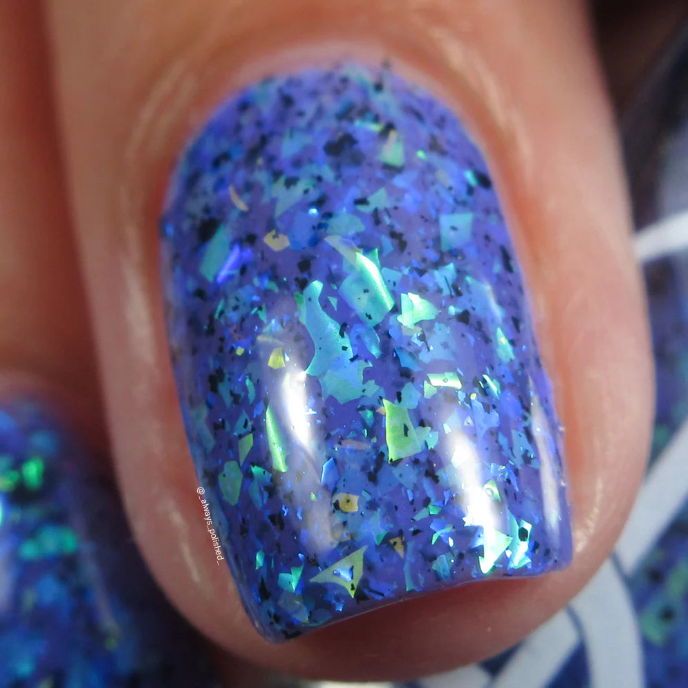 Plausible impossible is a plum base with lavender green gold color, shifting flakes and black metallic flakes No restock will be available whilst stocks last.